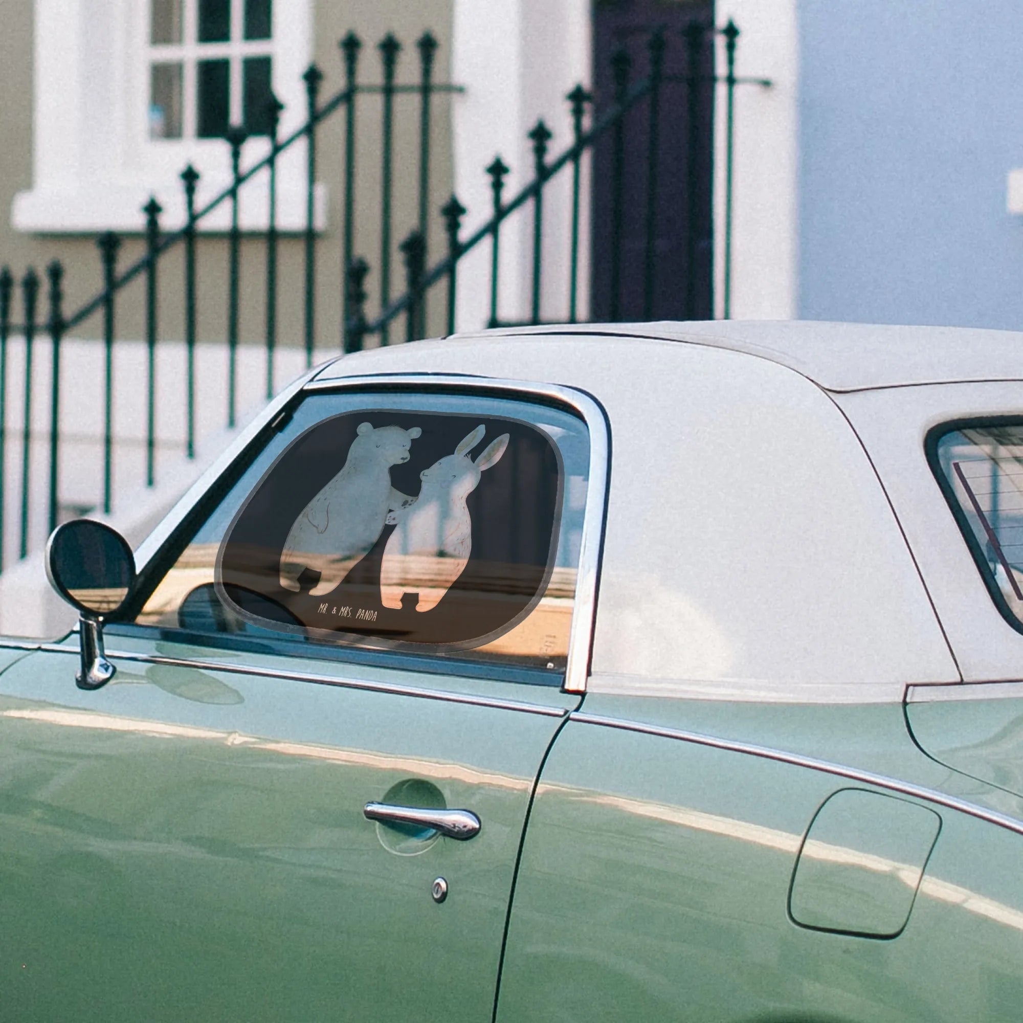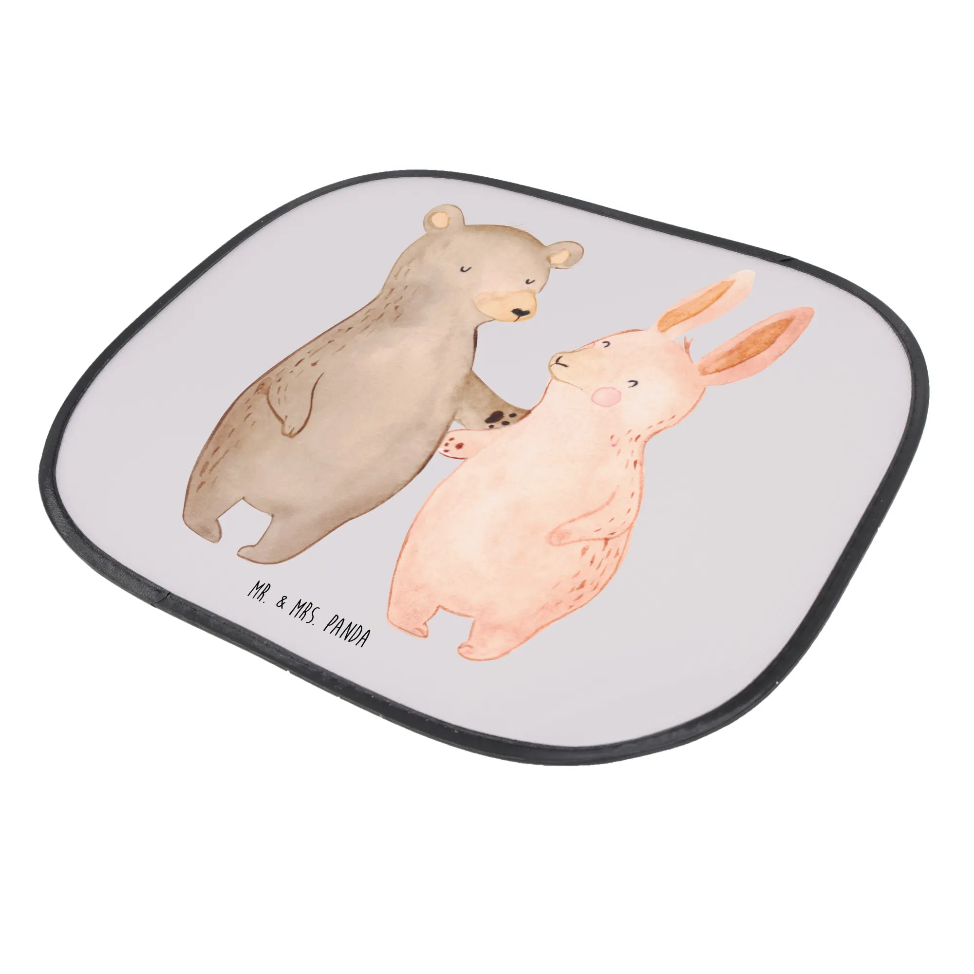 Looking for the perfect gift for the family on the go? Introducing the delightful Mr. & Mrs. Panda Car Sun Shade featuring our enchanting Bear and Bunny hug design from the Love collection! This adorable sun shade is not just a stylish accessory for your car, but it also provides essential sun protection for your loved ones in the back seat. The vibrant, hand-painted design showcases a lovable scene where a bear and a bunny share a warm embrace, radiating love and friendship. This makes it the ideal gift for families, friends, or couples celebrating special moments like anniversaries, engagements, or birthdays.