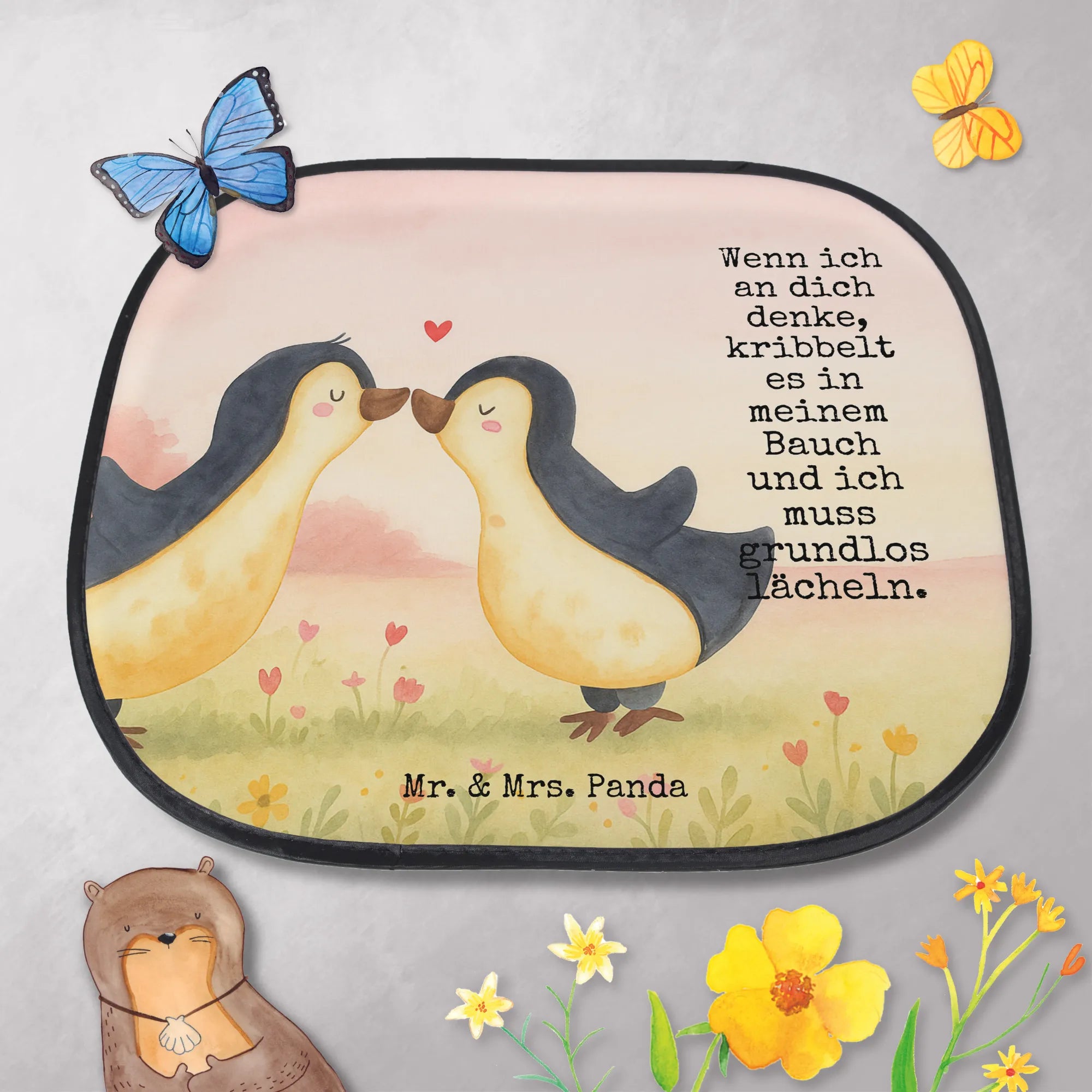 Car sun shade penguins kiss Design - with a saying