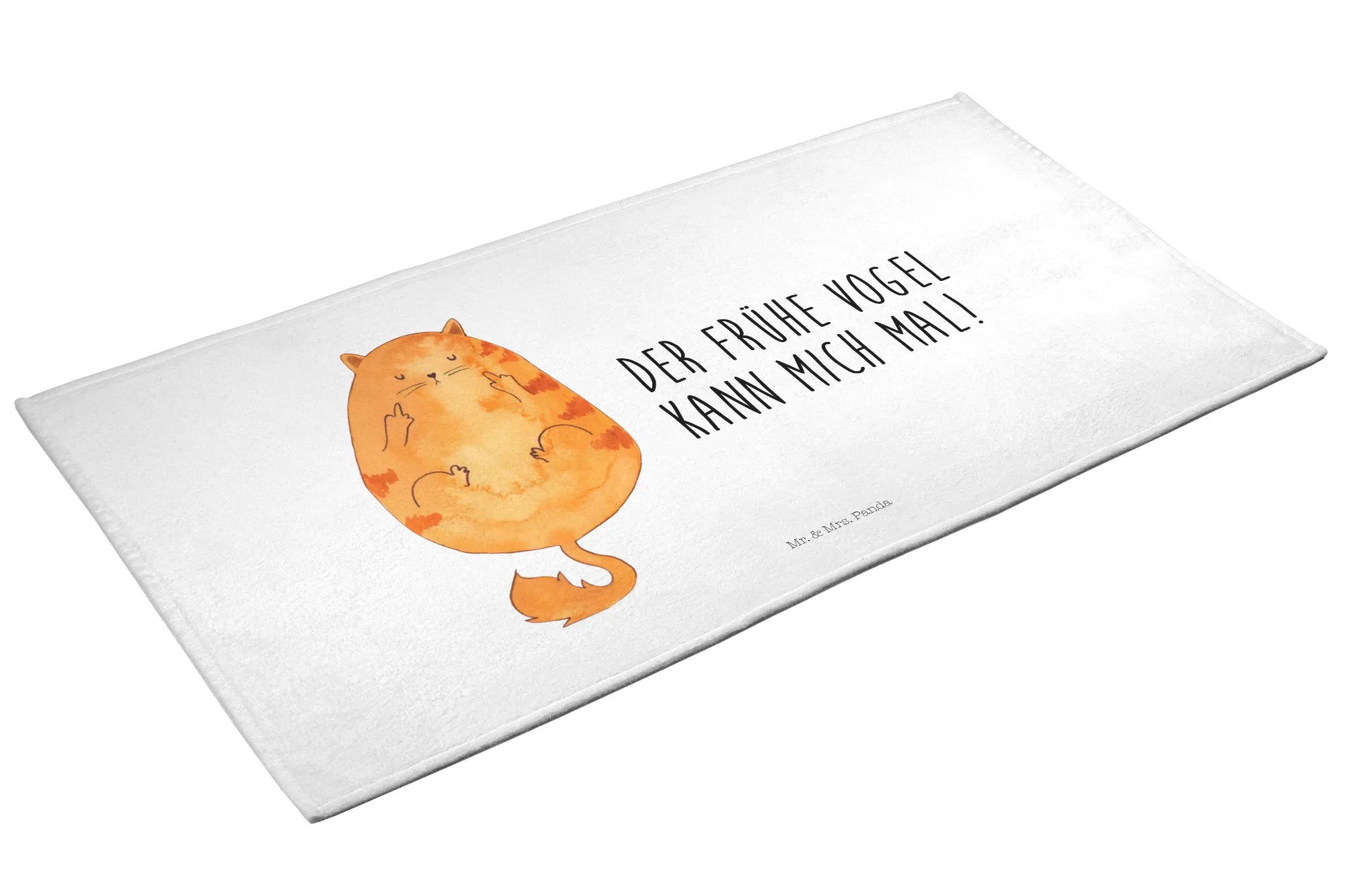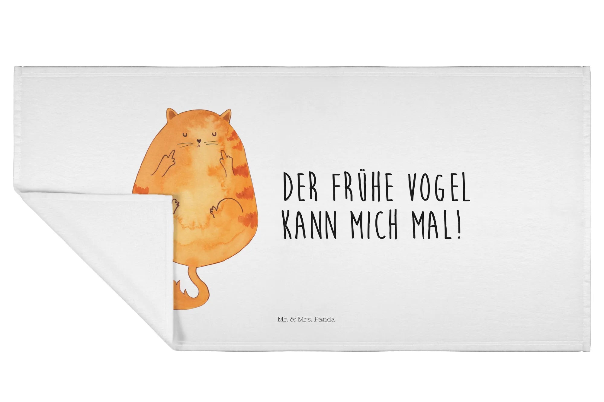 Hand towel Cat Early riser - 50 x 100 Towel - with a saying - White
