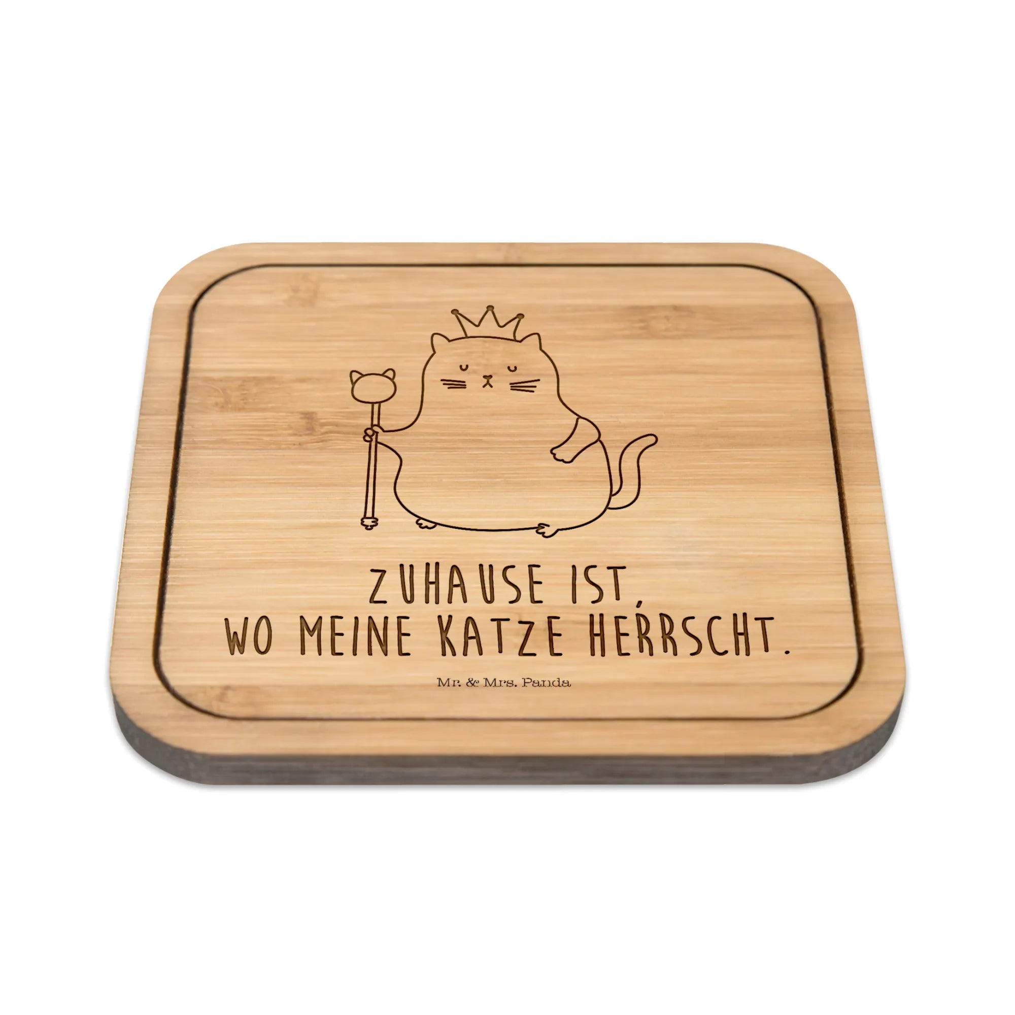 Imagine setting your drinks on these adorable coasters featuring the words 'Home is where my cat rules.' It perfectly captures the essence of being a cat parent while providing a warm and inviting atmosphere in your home.