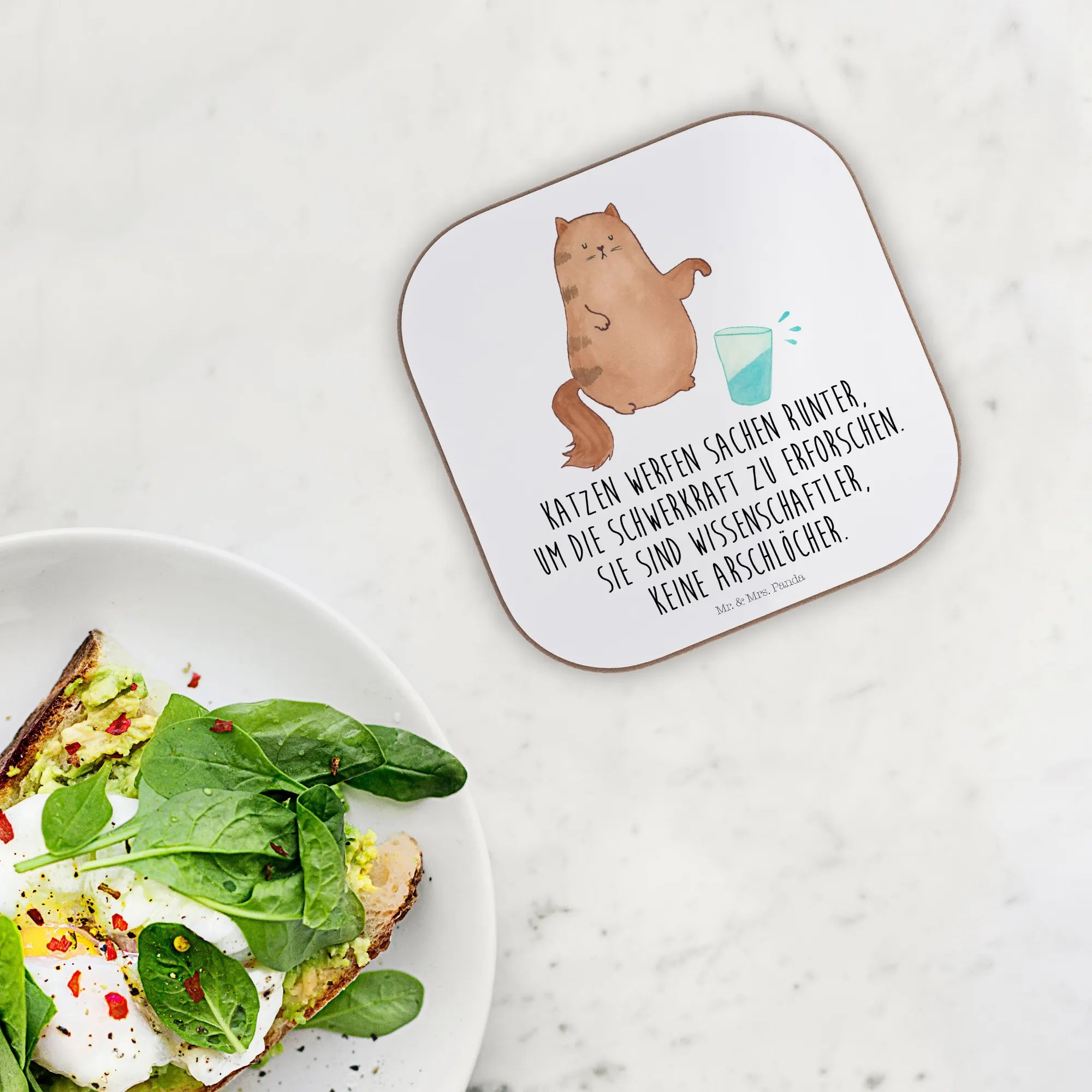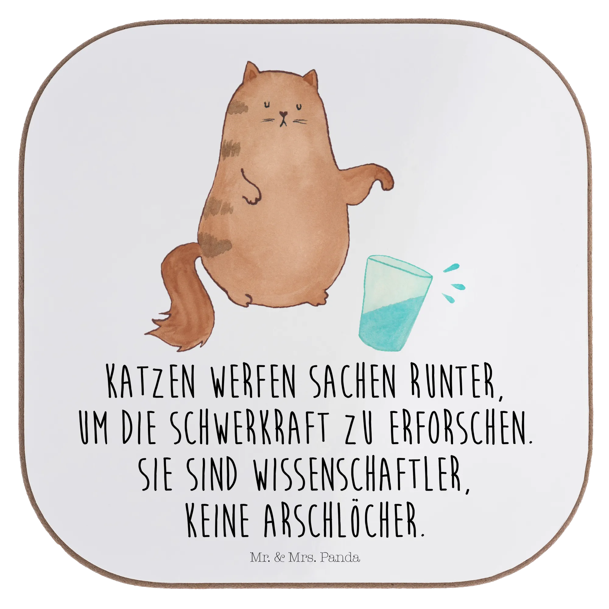 Square coaster Cat water glass - with a saying - Gelb Pastell