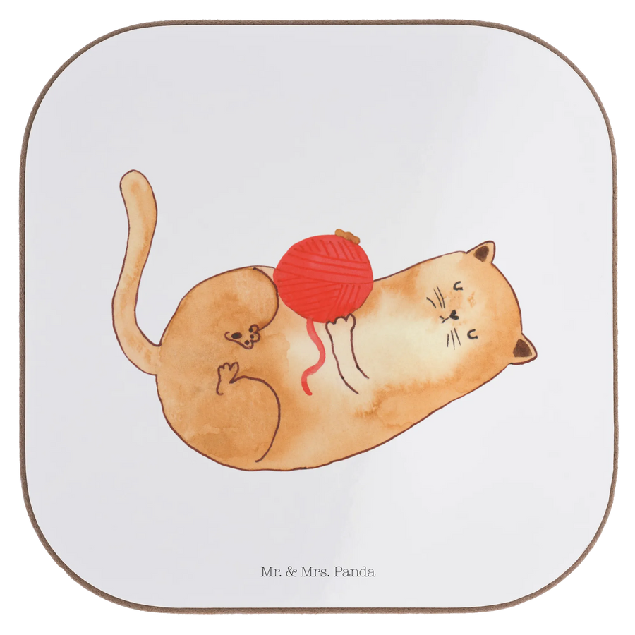 Square coaster Cat Wool - ohne Spruch - Weiß