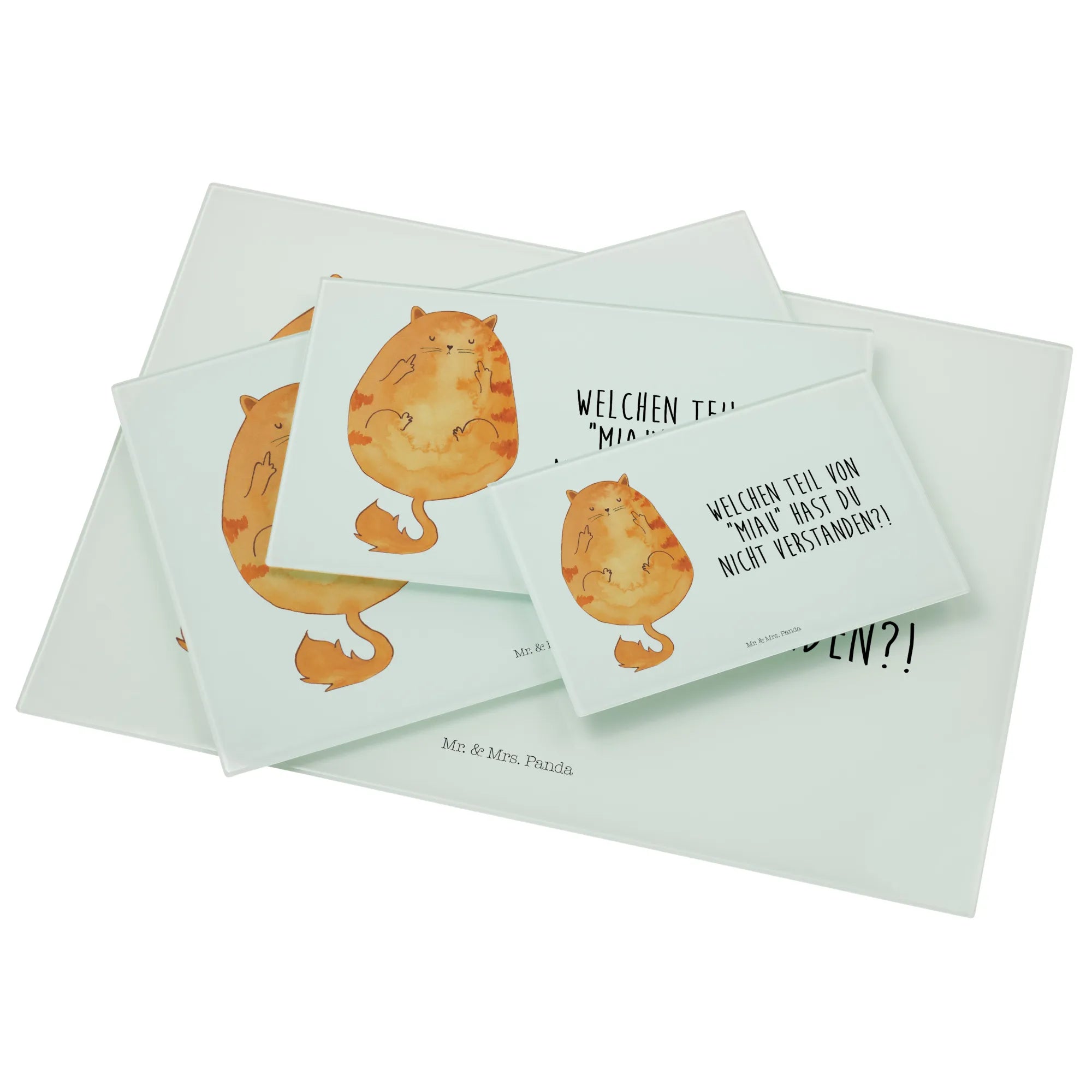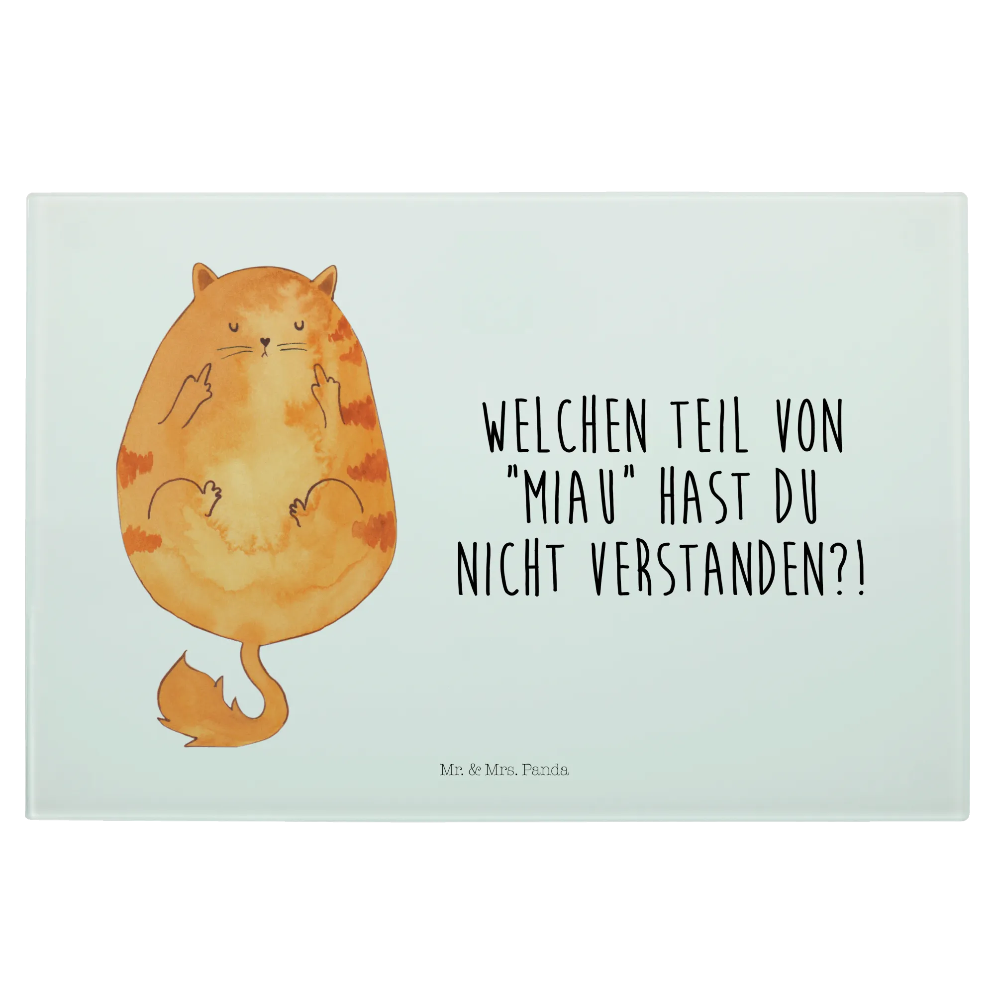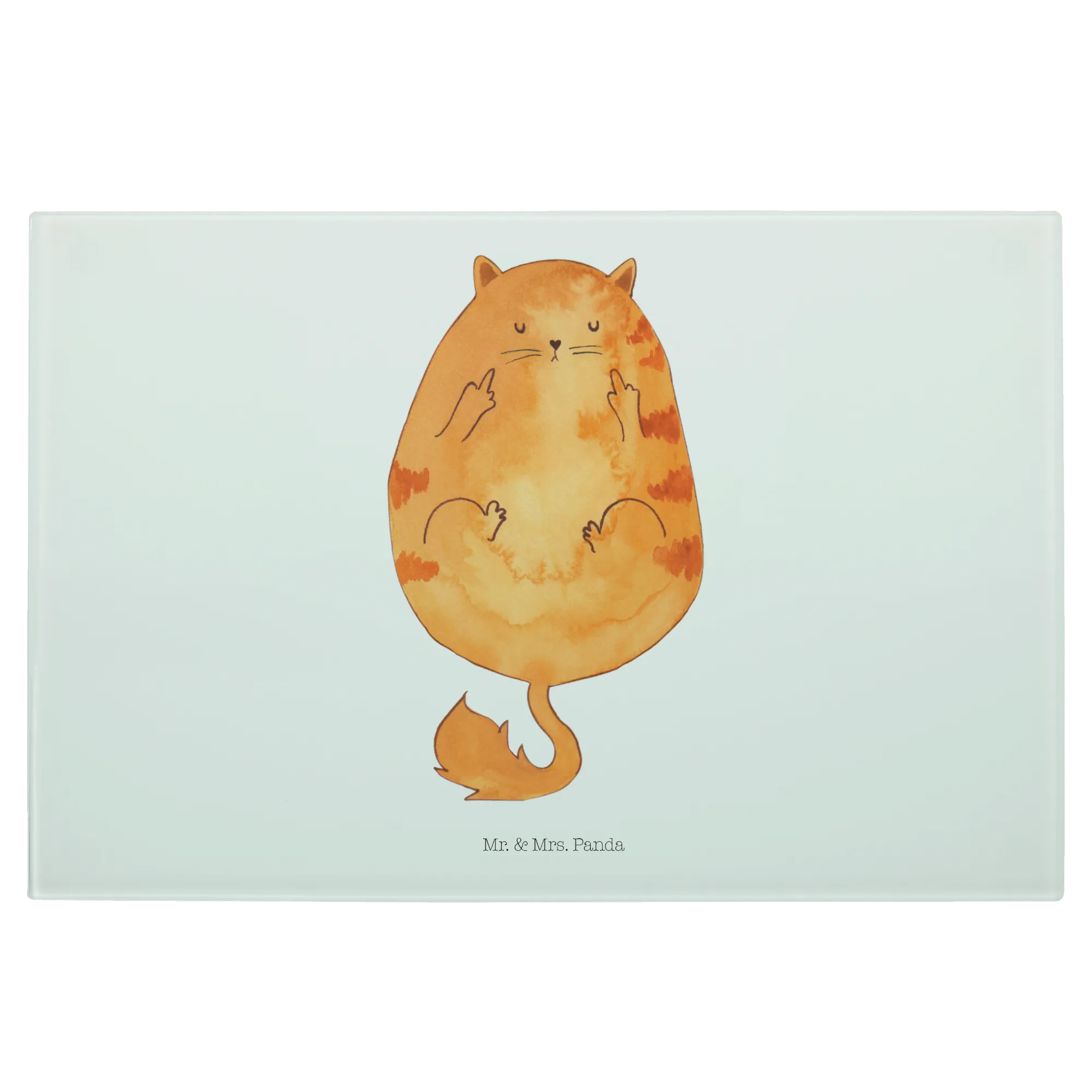 XL glass chopping board Cat middle finger - Medium Glass Cutting Board - with saying - White