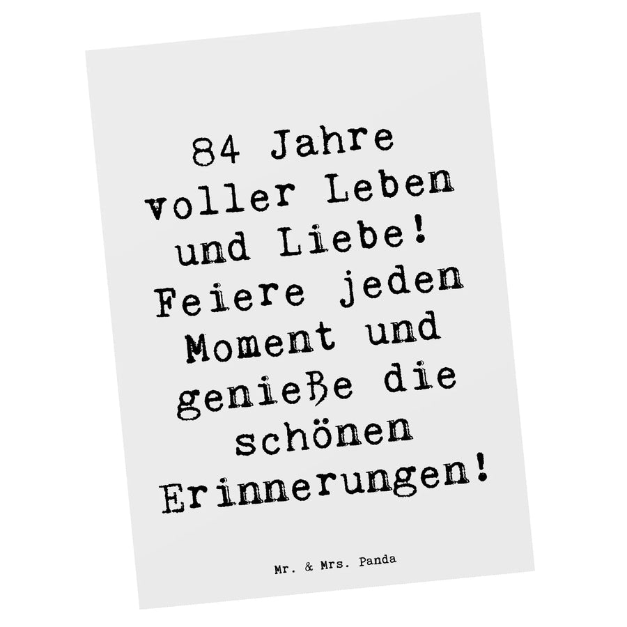 Postcard Saying 84 Jahre voller Leben und Liebe! Feiere jeden Moment und genieße die schönen Erinnerungen! - White
