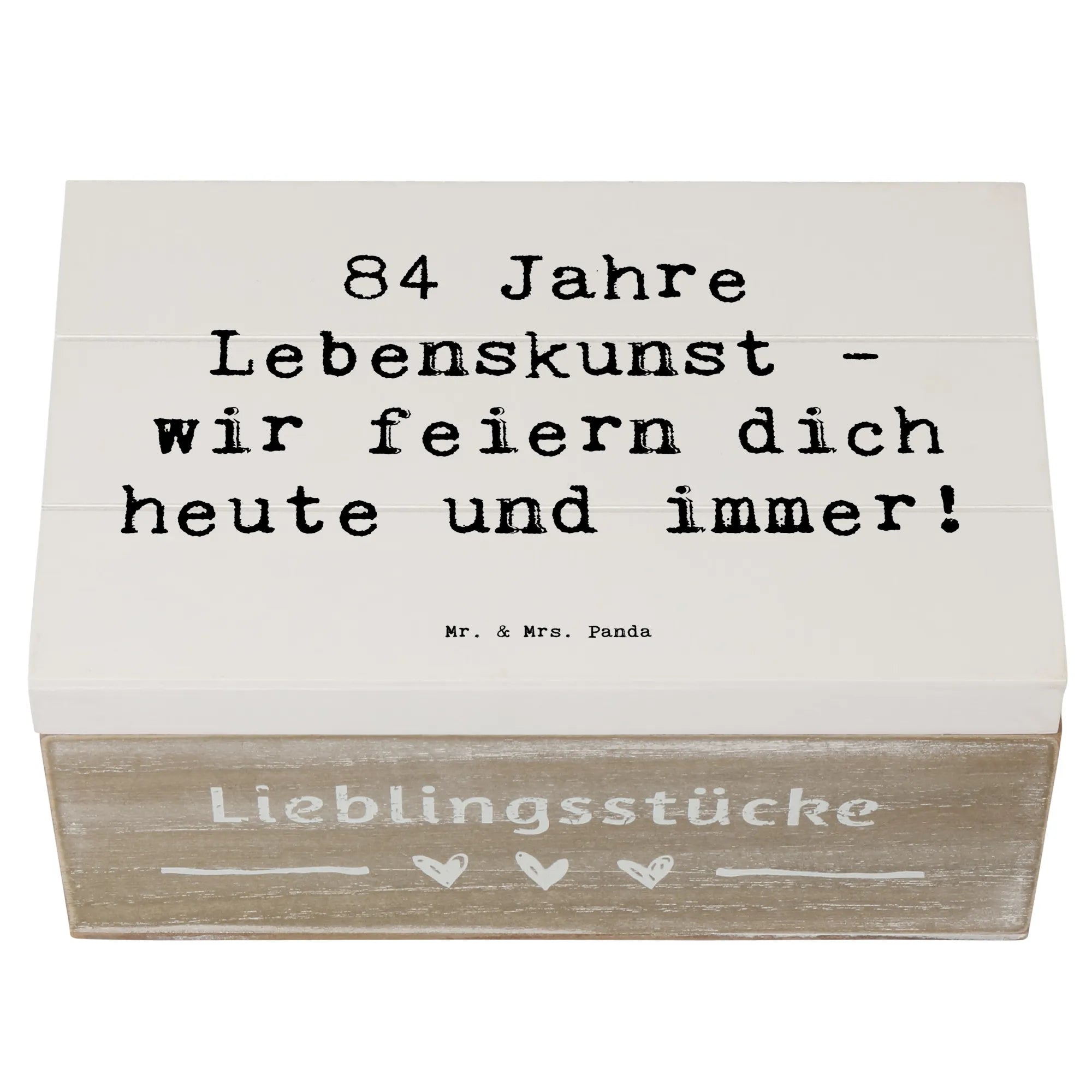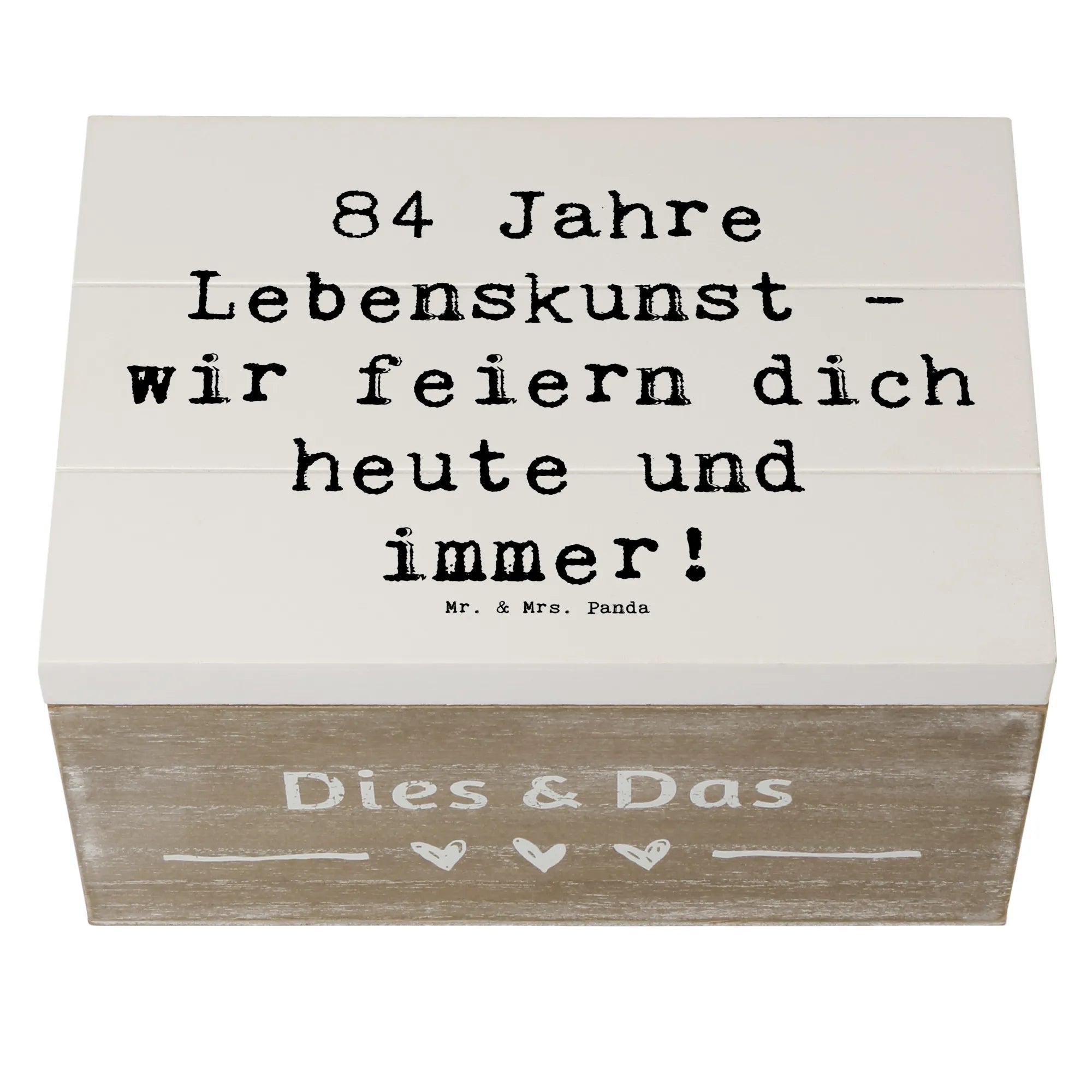 Wooden chest Saying 84 Jahre Lebenskunst - wir feiern dich heute und immer! - 25 x 18 cm - White