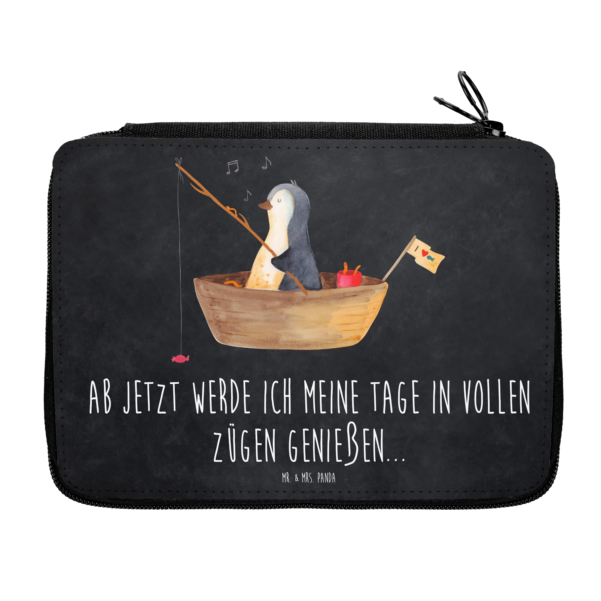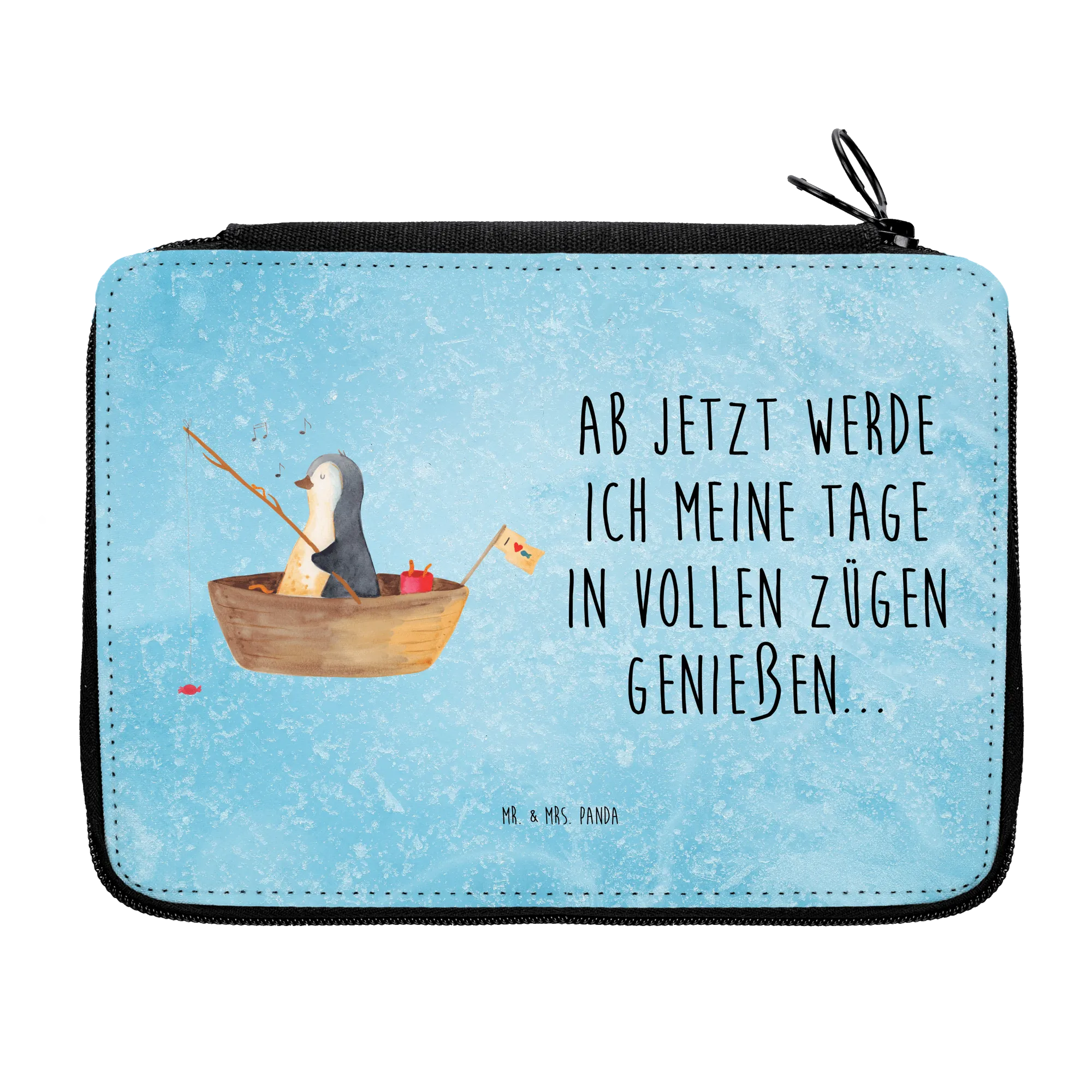 Leather folder Penguin fishing boat - with a saying - Eisblau