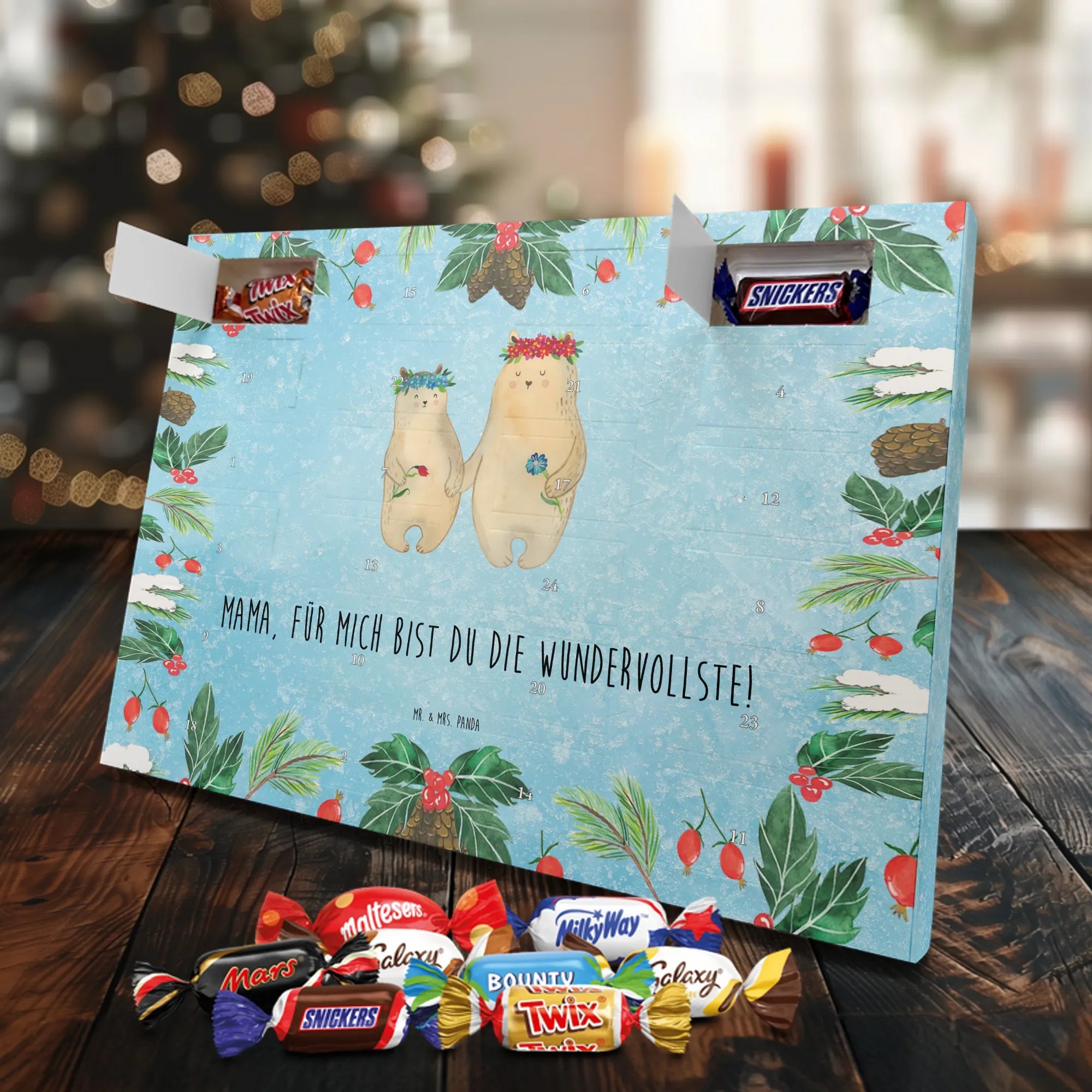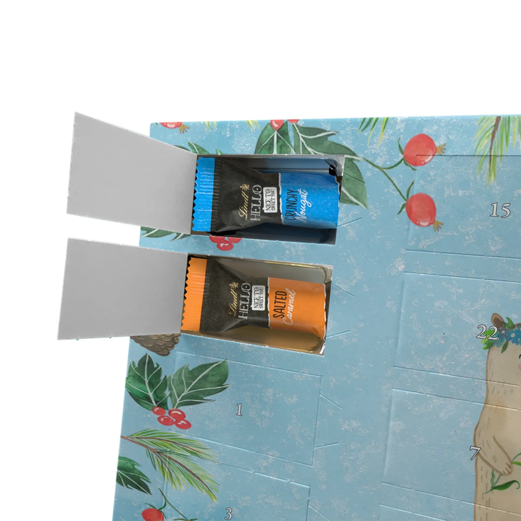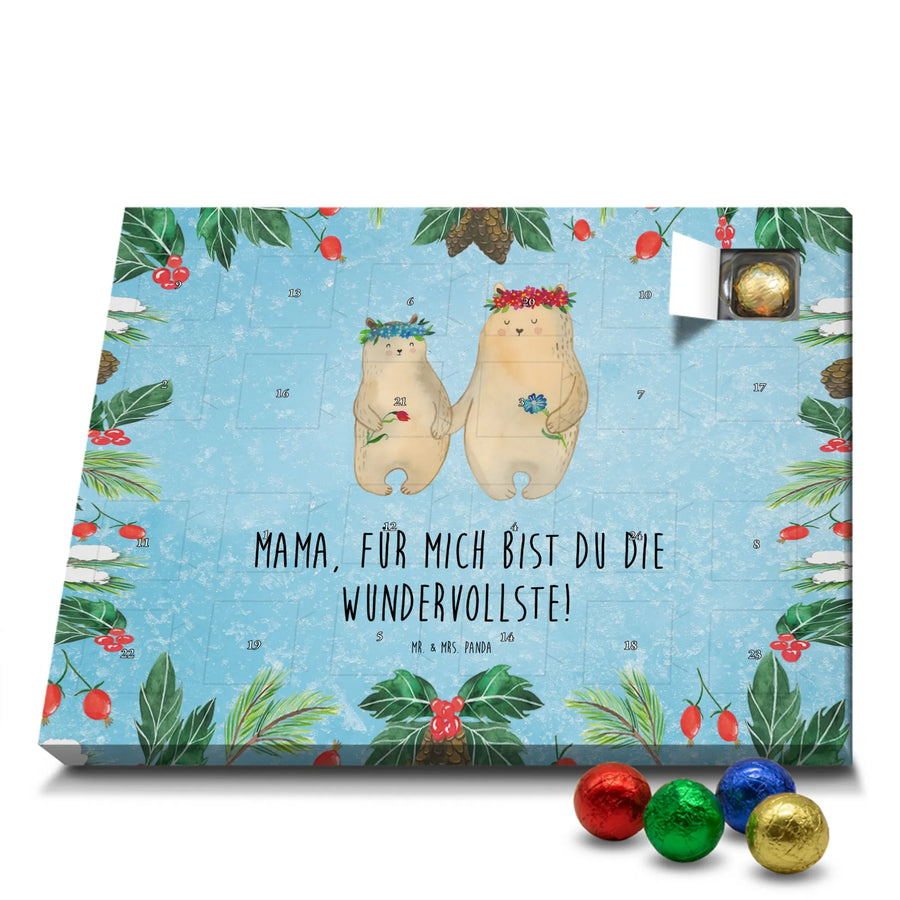 Chocolate advent calendar Bears with flower crown - Classic - with saying - Ice Blue