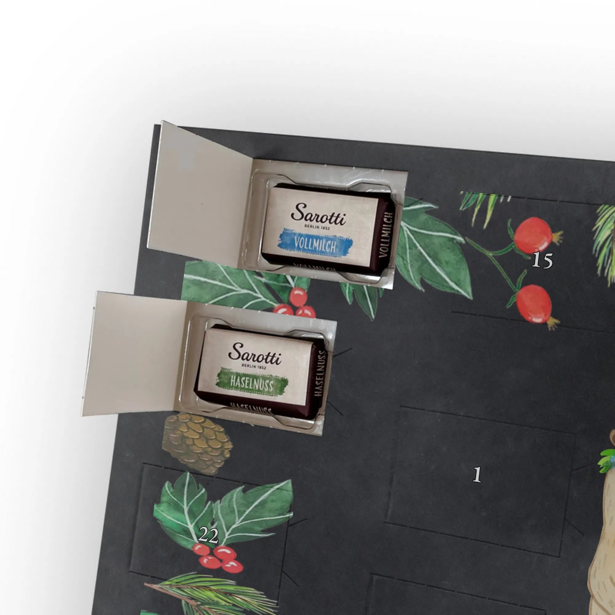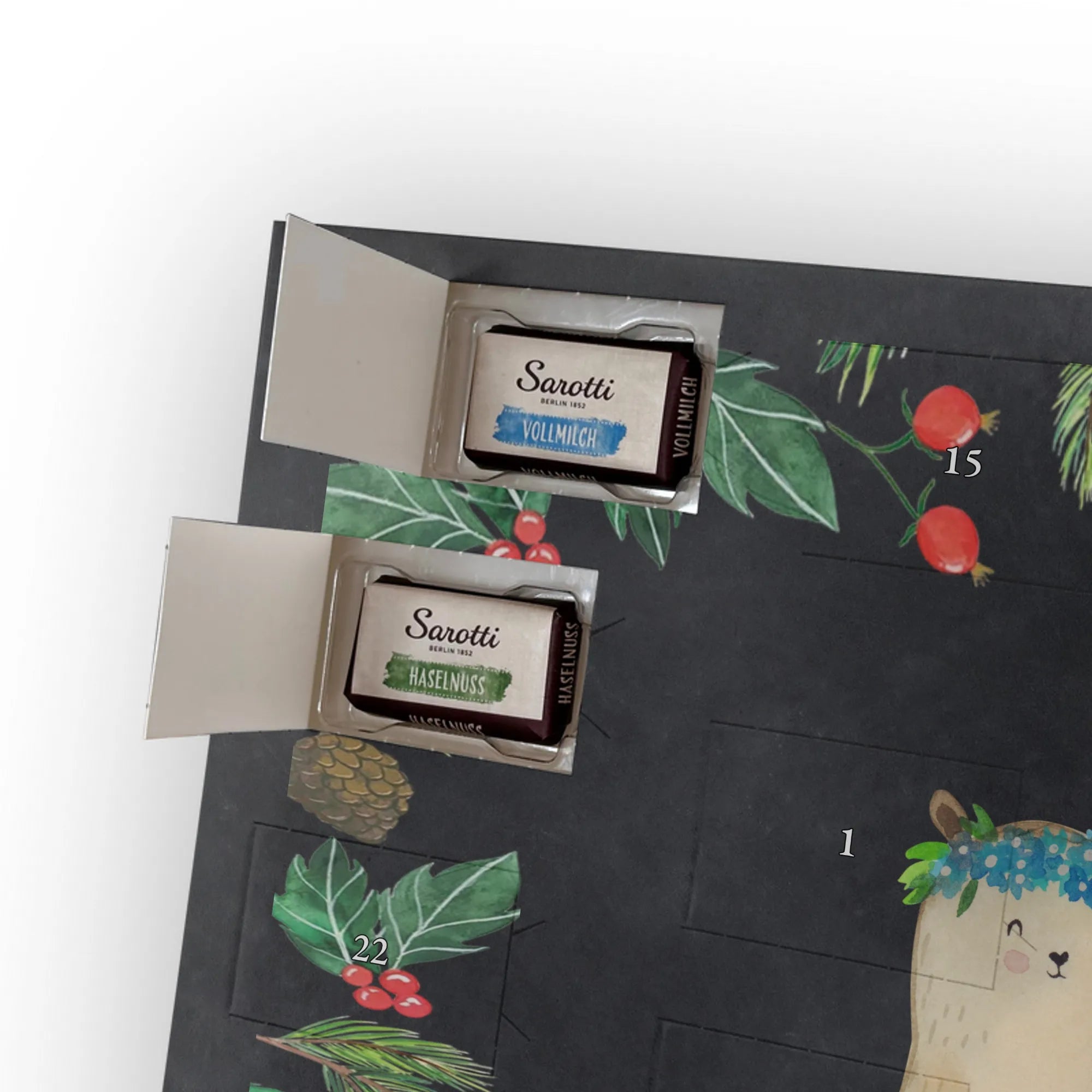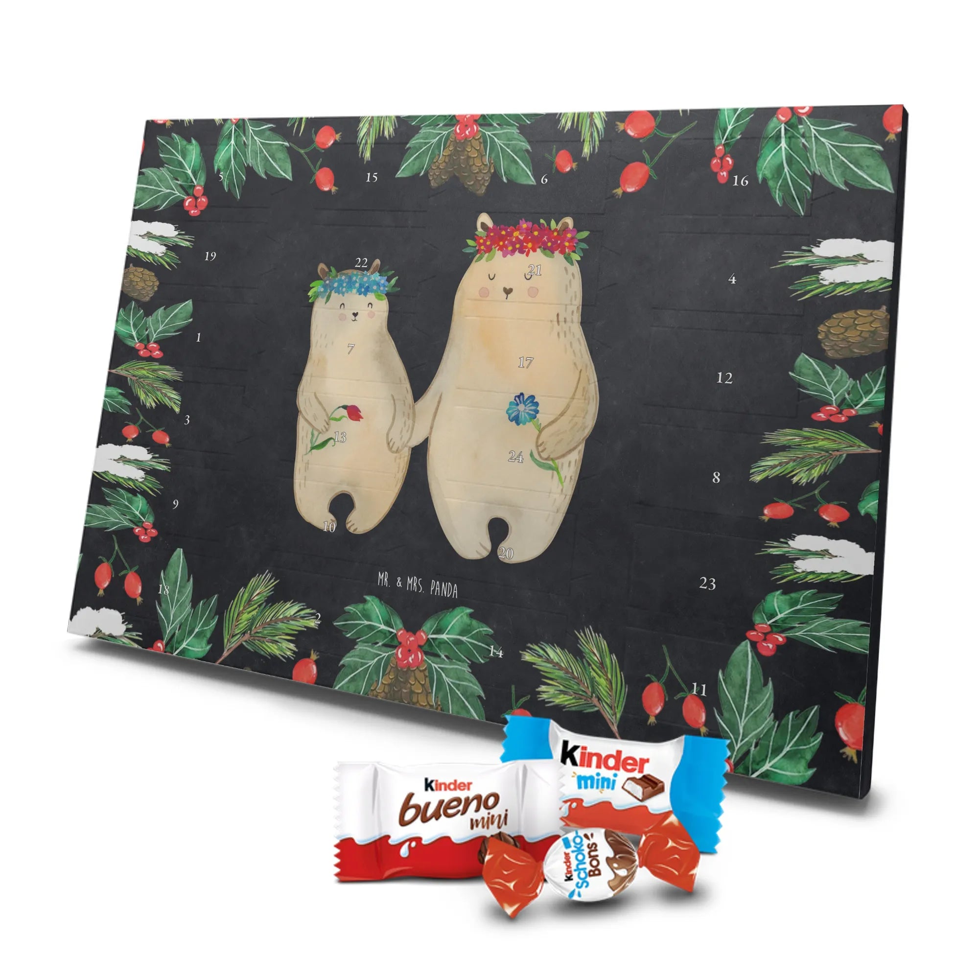 Chocolate advent calendar Bears with flower crown - Classic - with saying - Ice Blue