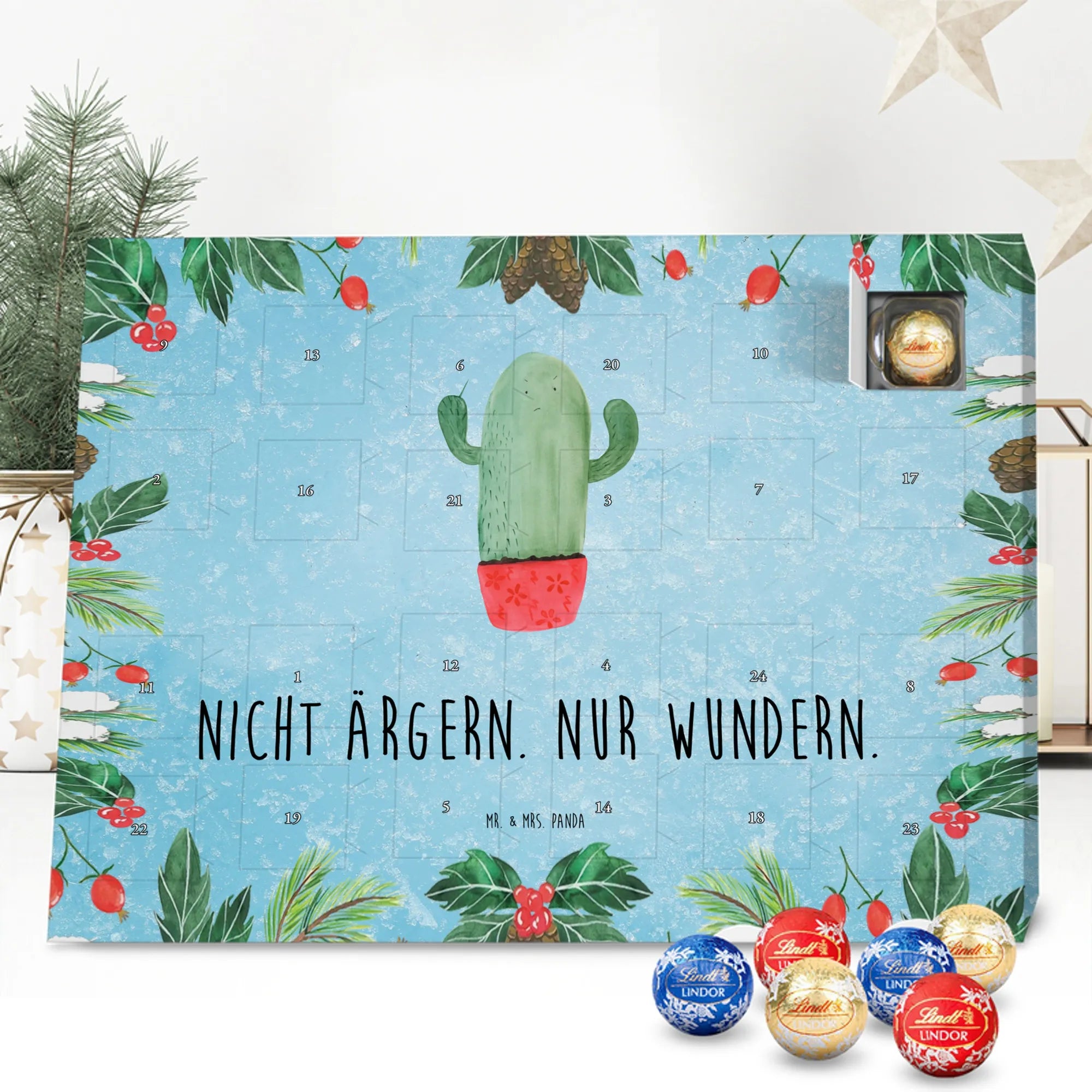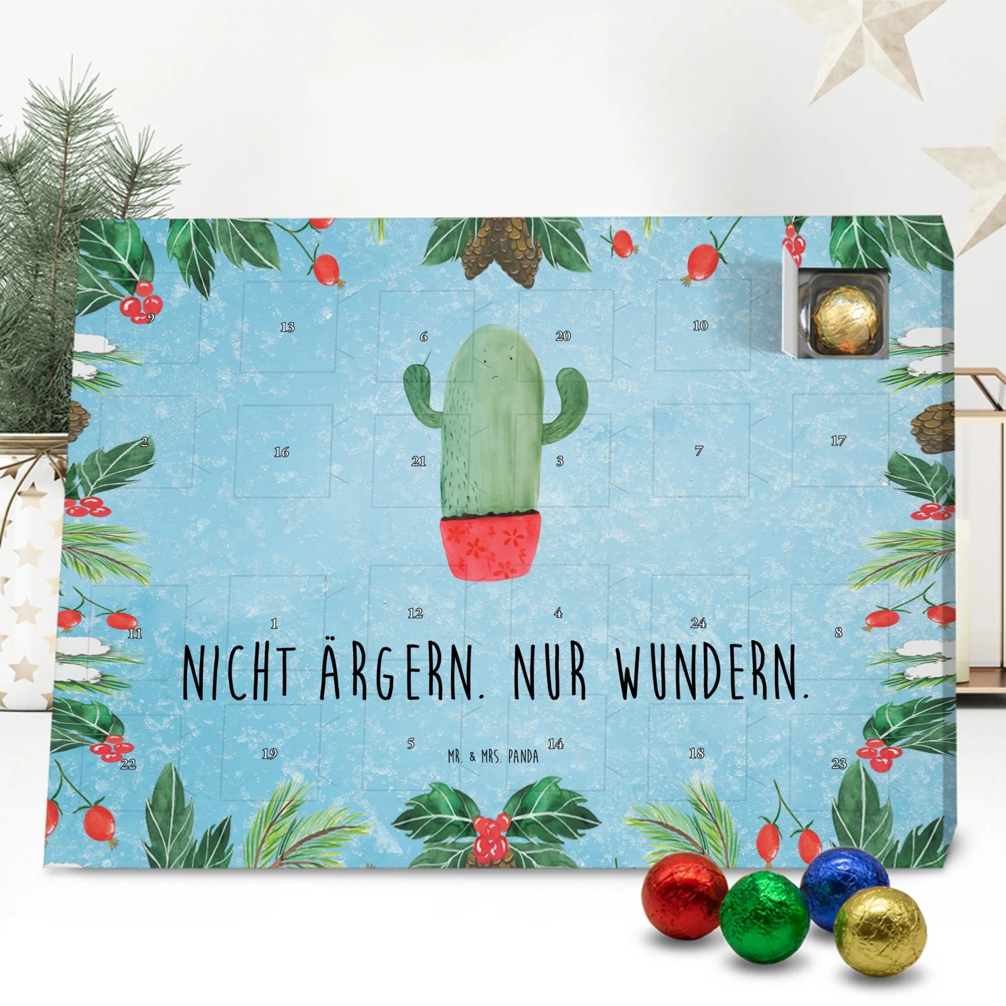Chocolate advent calendar cactus Fury - Classic - with saying - Ice Blue