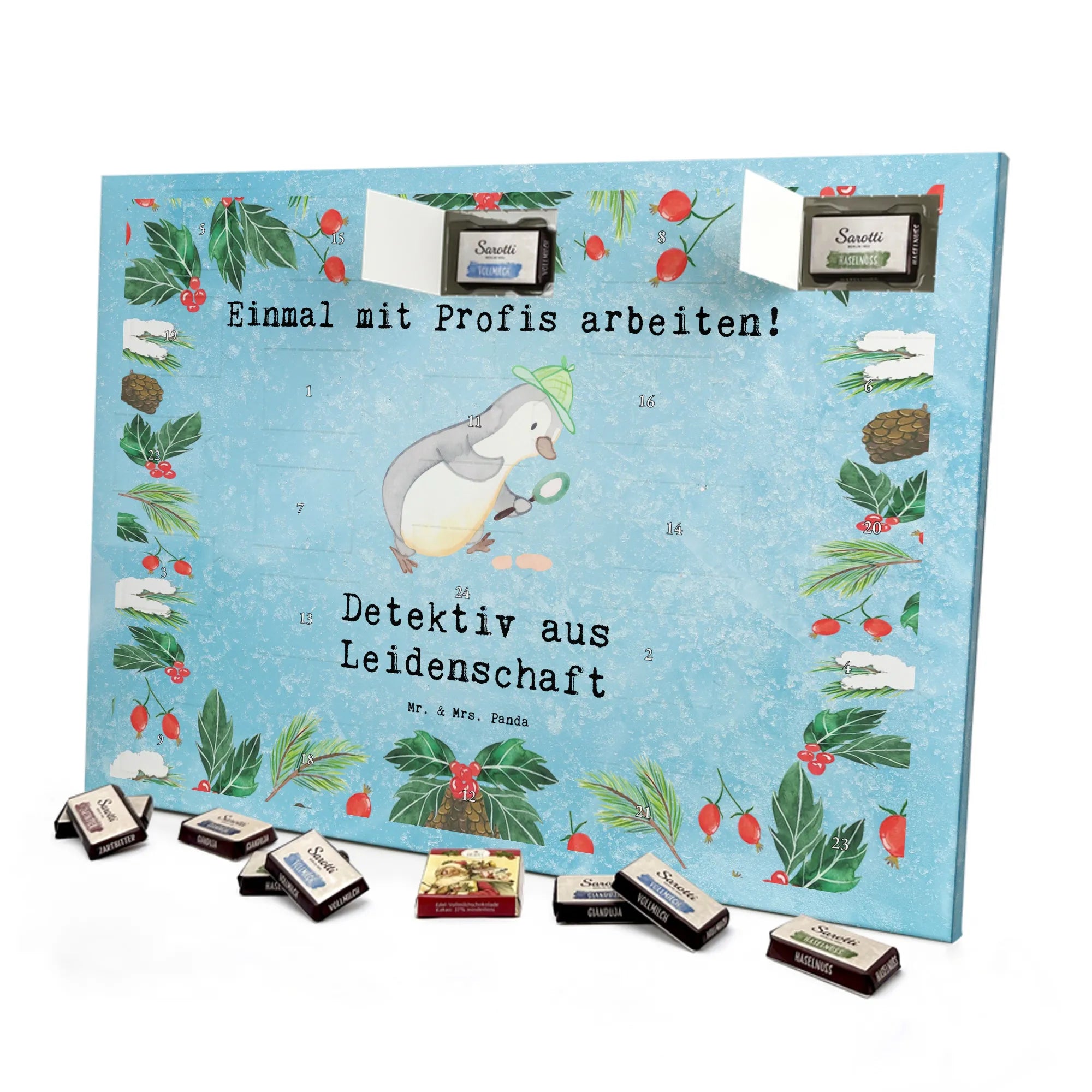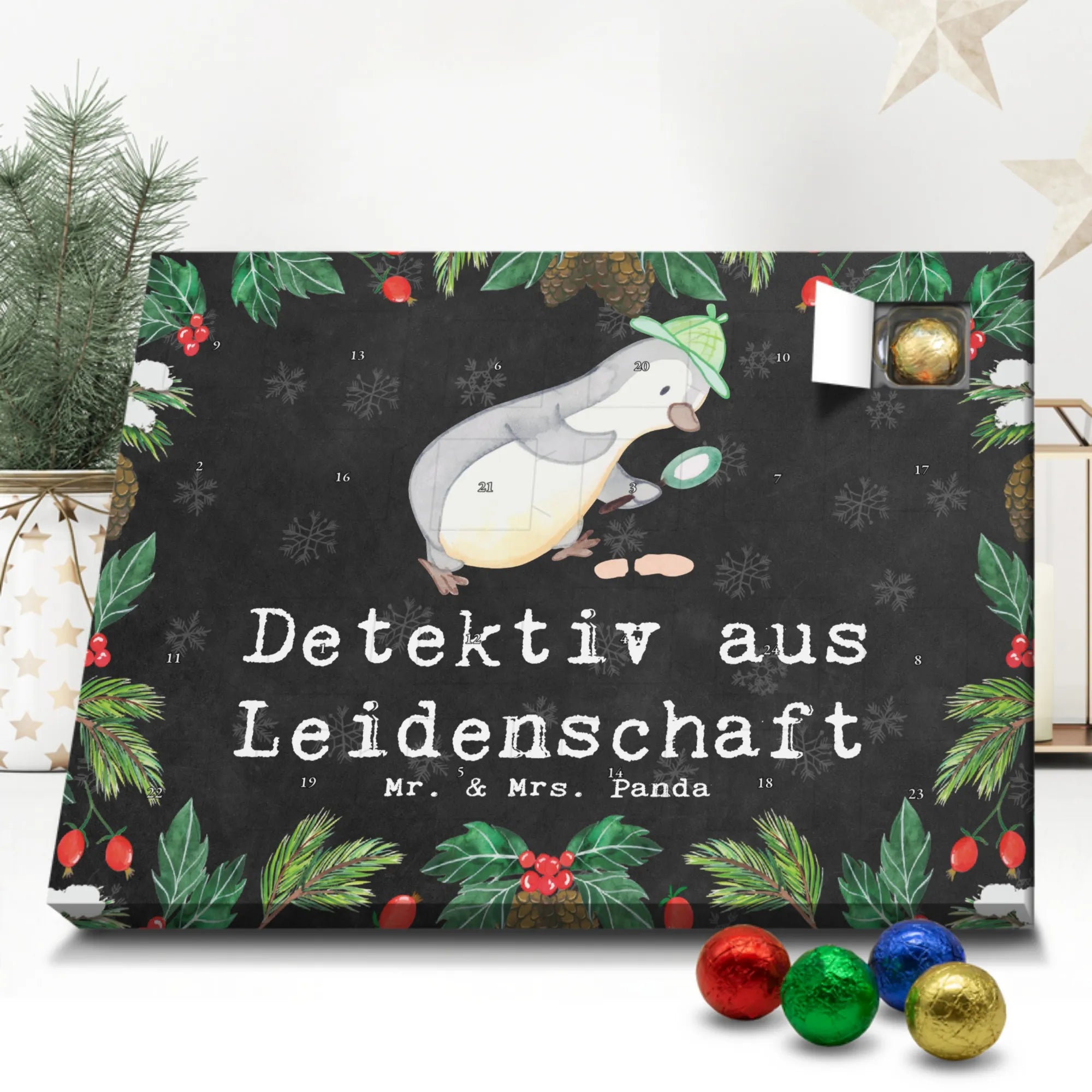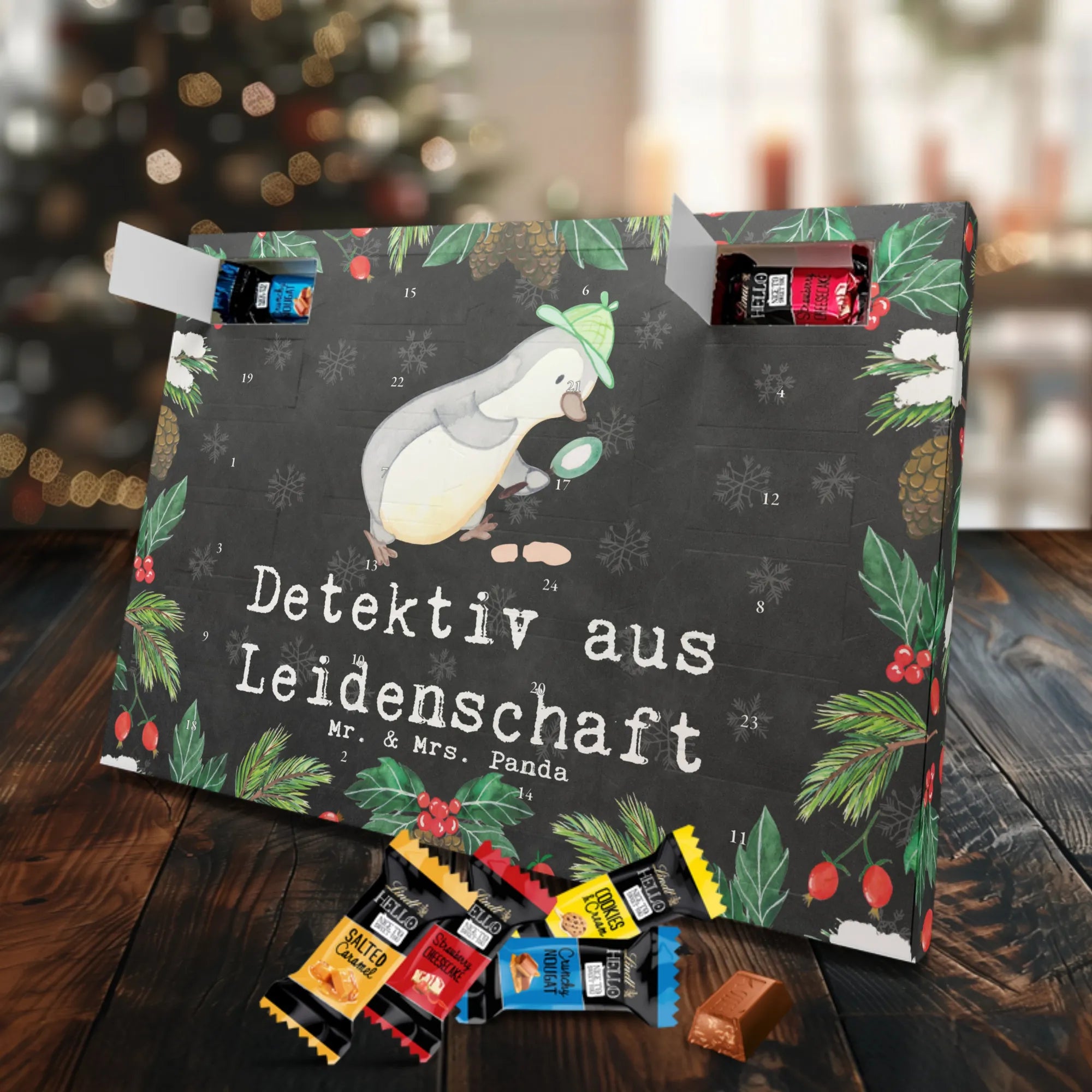 Mr. & Mrs. Panda Schoko Adventskalender „Detektiv aus Leidenschaft“ – ein liebevoll gestalteter Schokoladen Adventskalender aus der Berufe Kollektion. Auf der Vorderseite begleitet ein niedlicher Pinguin mit Lupe deine Vorweihnachtszeit und der Slogan „Detektiv aus Leidenschaft“ macht das Motiv zu einem echten Hingucker.
