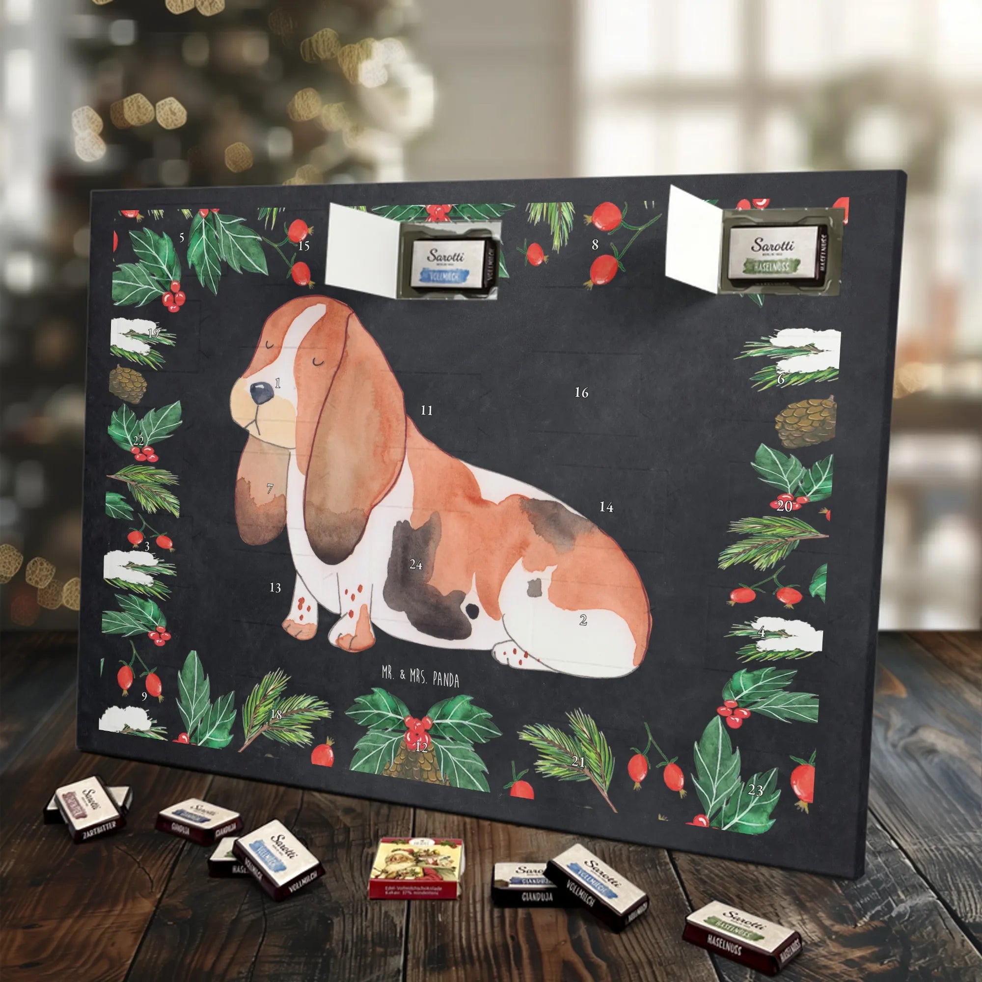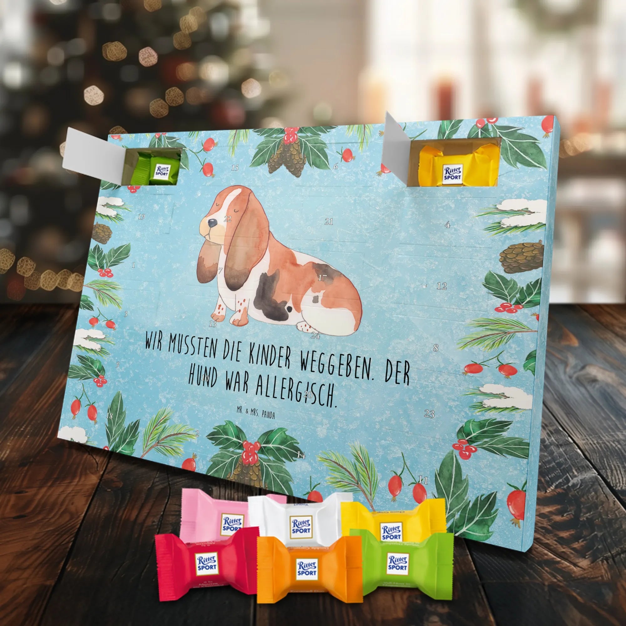 Chocolate advent calendar Dog Basset Hound - Classic - with saying - Ice Blue