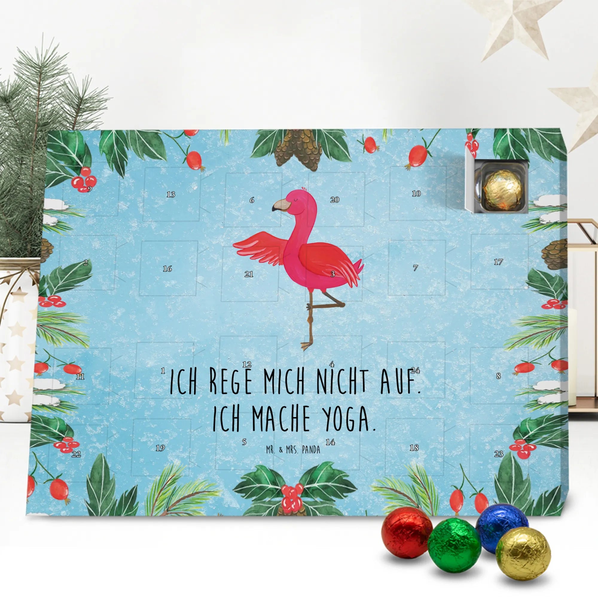 Chocolate advent calendar flamingo yoga - Classic - with saying - Ice Blue