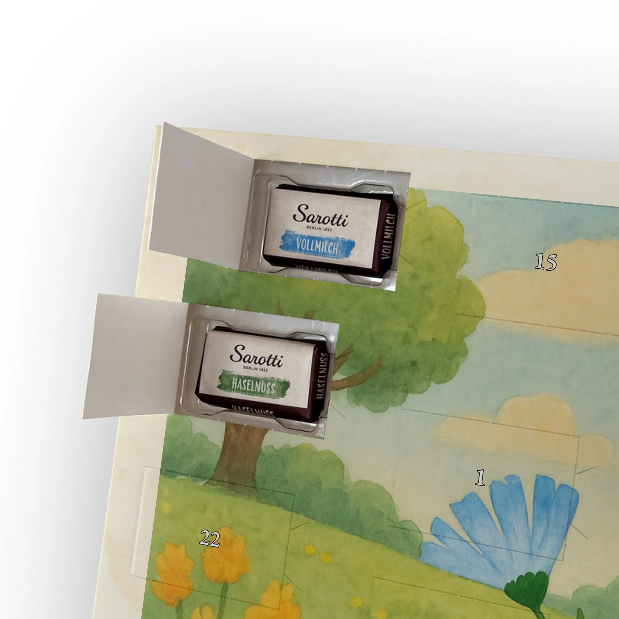 Chocolate advent calendar Hedgehog Flower Design - Lindt HELLO - with saying