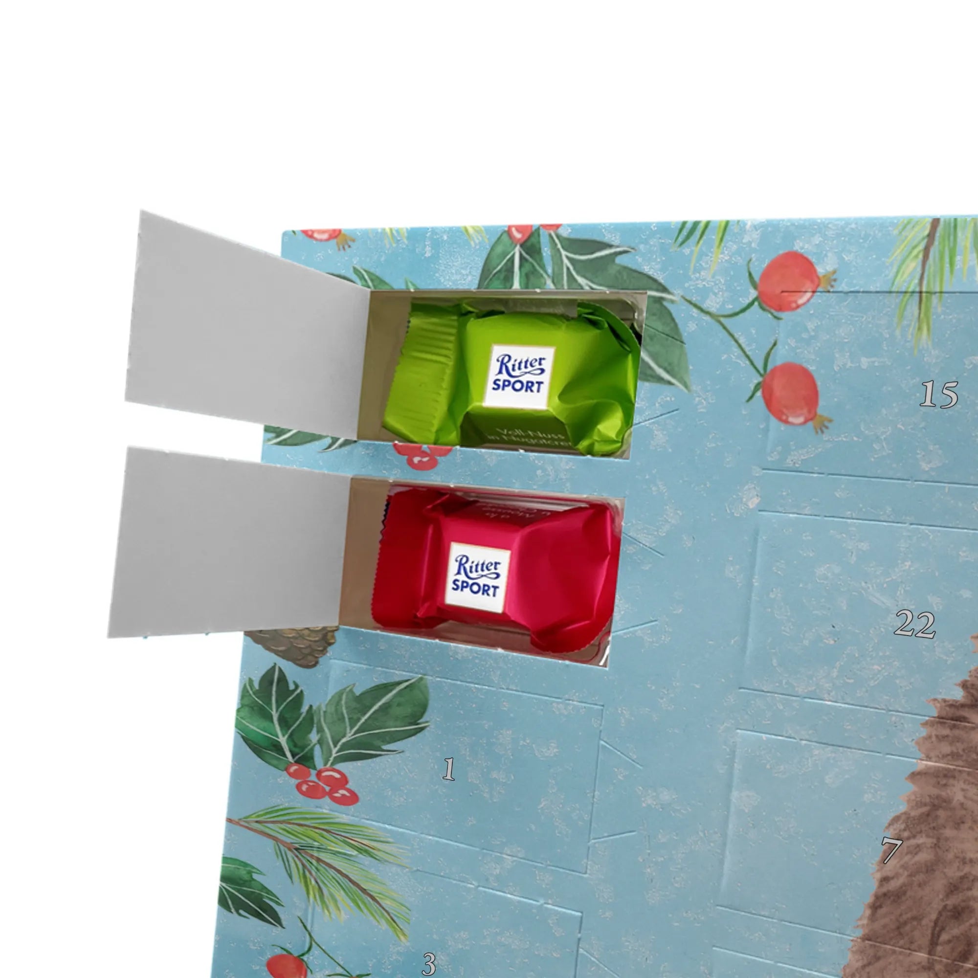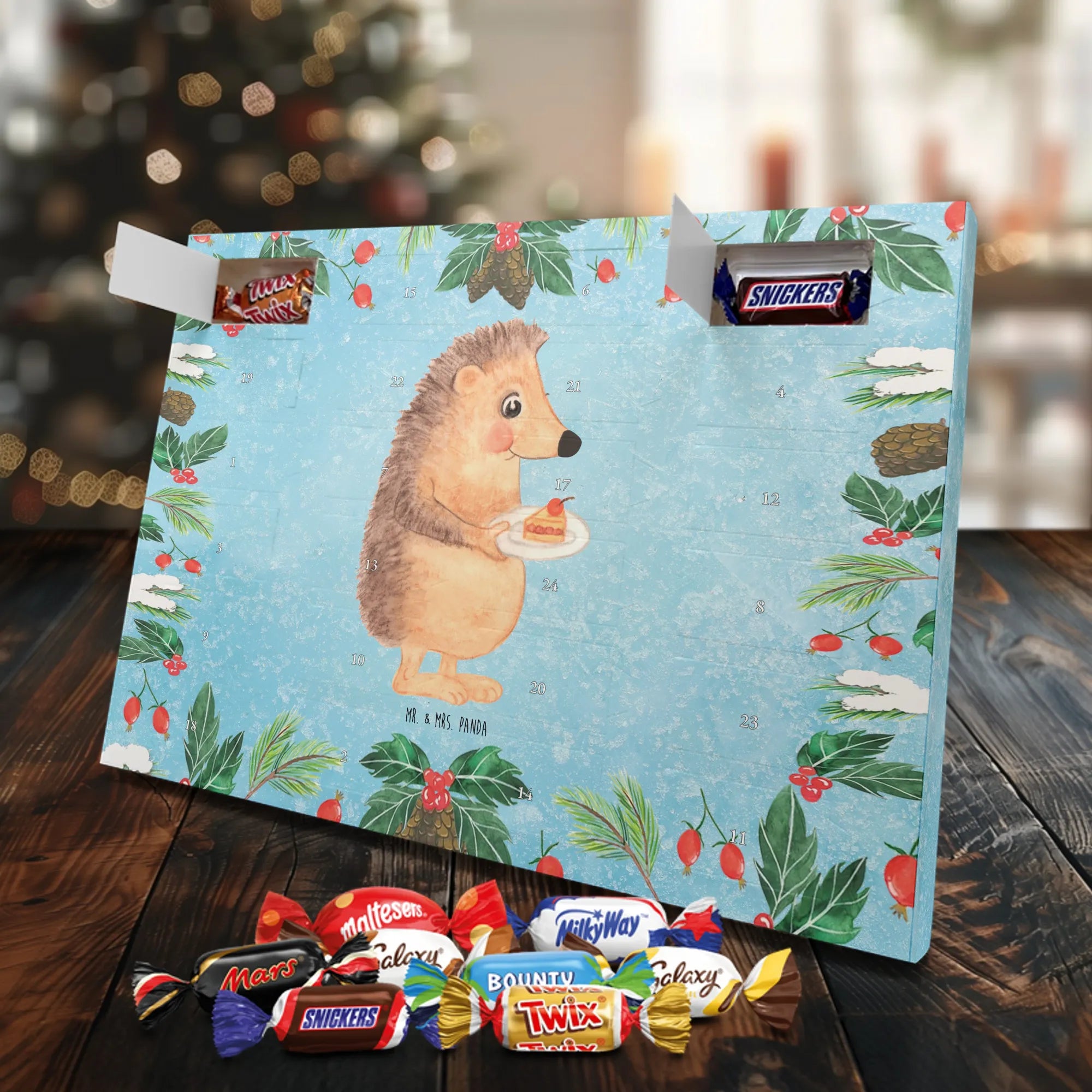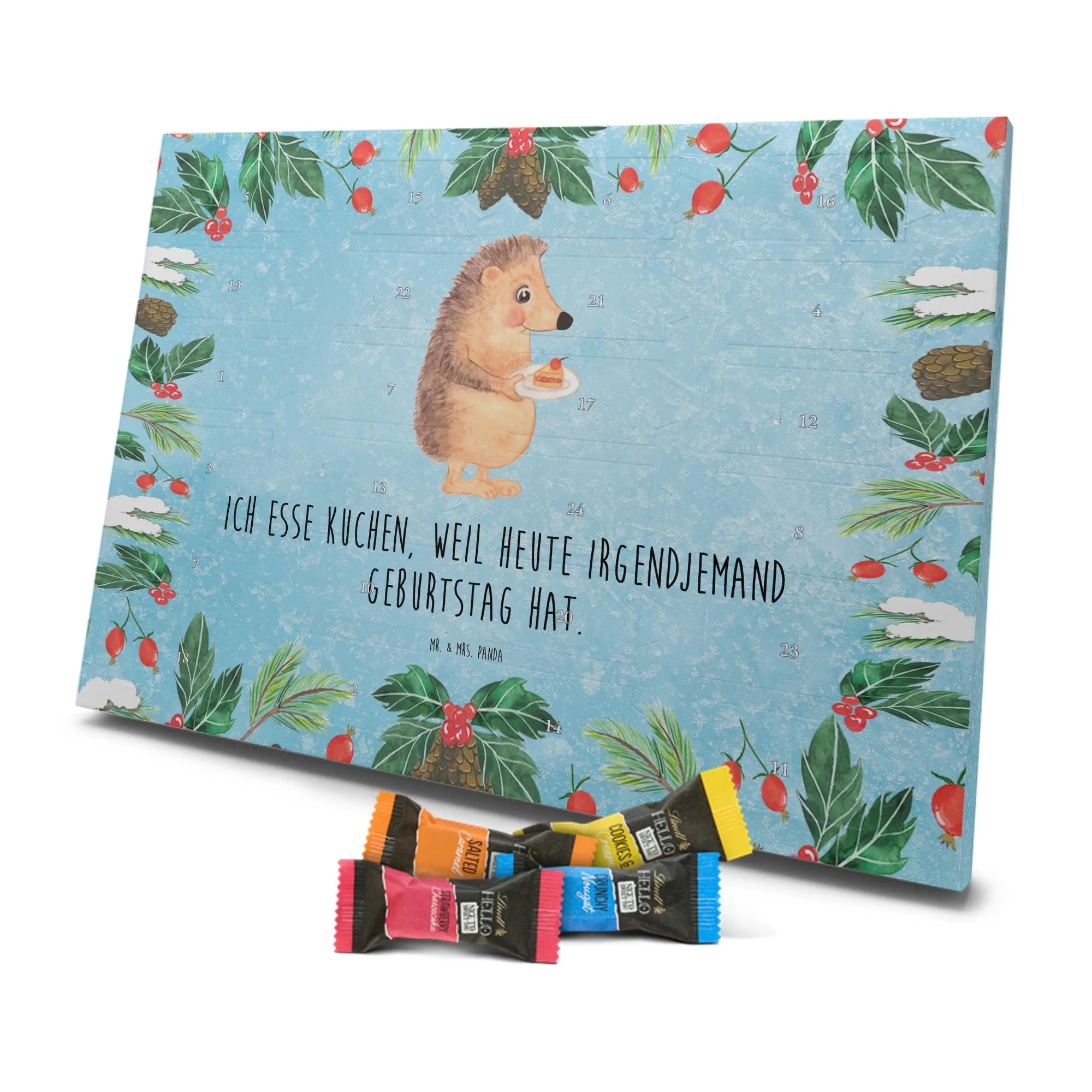 Chocolate advent calendar Hedgehog piece of cake - Classic - with saying - Ice Blue