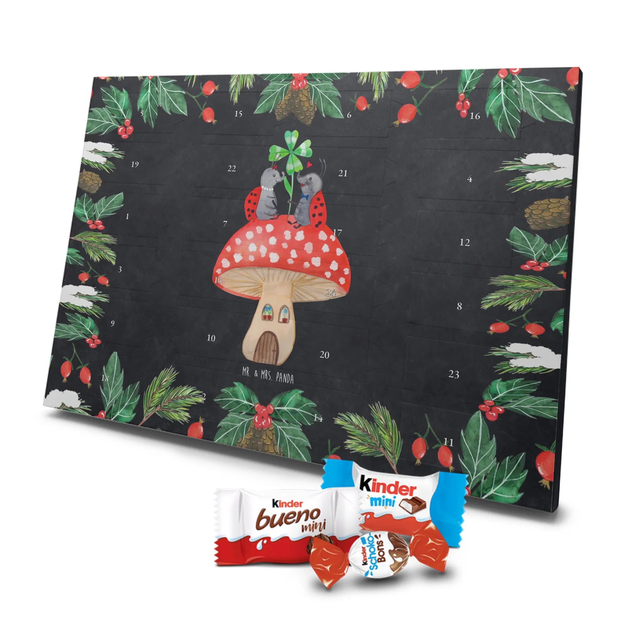 Chocolate advent calendar ladybug toadstool - Classic - with saying - Ice Blue