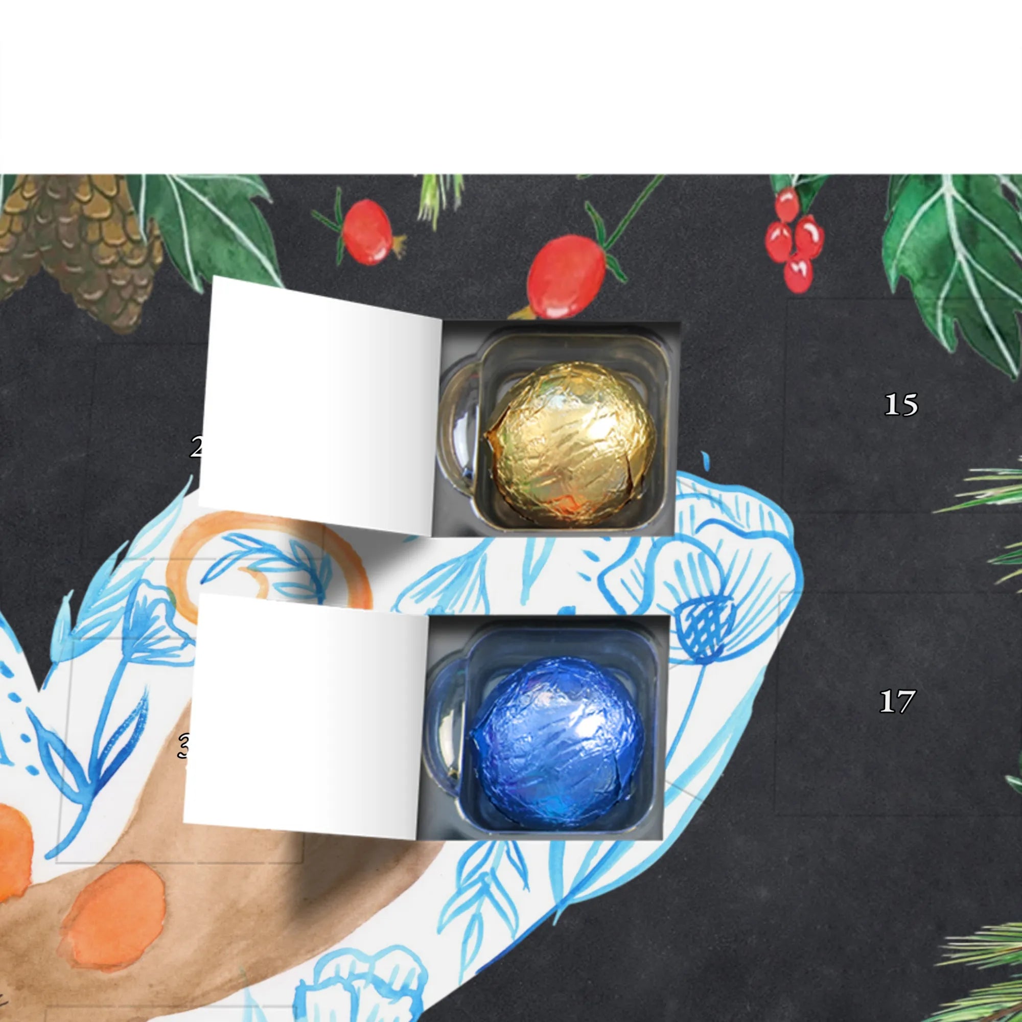 This handy advent calendar 2020 from Mr. & Mrs. Panda is really something very special - it is decorated with wonderful motifs and has the size 24m x 18cm x 2,5cm. It is filled with 24 chocolate balls and costs 14,90€ - the calendar can be hung up or set up using the set-up function on the back. Please note that we also have a larger calendar with delicious chocolate from Hello Lindt.