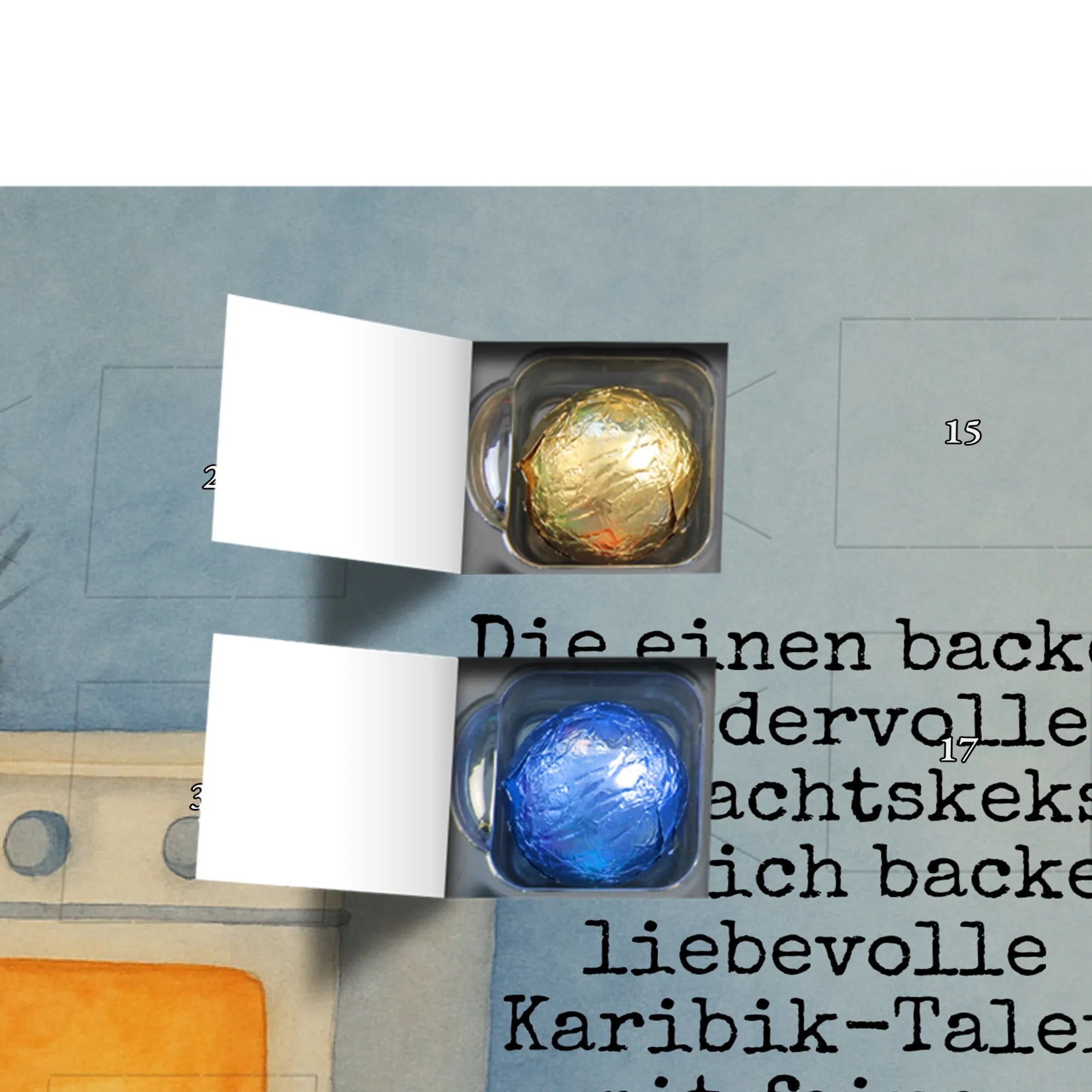 This handy advent calendar 2020 from Mr. & Mrs. Panda is really something very special - it is decorated with wonderful motifs and has the size 24m x 18cm x 2,5cm. It is filled with 24 chocolate balls and costs 14,90€ - the calendar can be hung up or set up using the set-up function on the back. Please note that we also have a larger calendar with delicious chocolate from Hello Lindt.