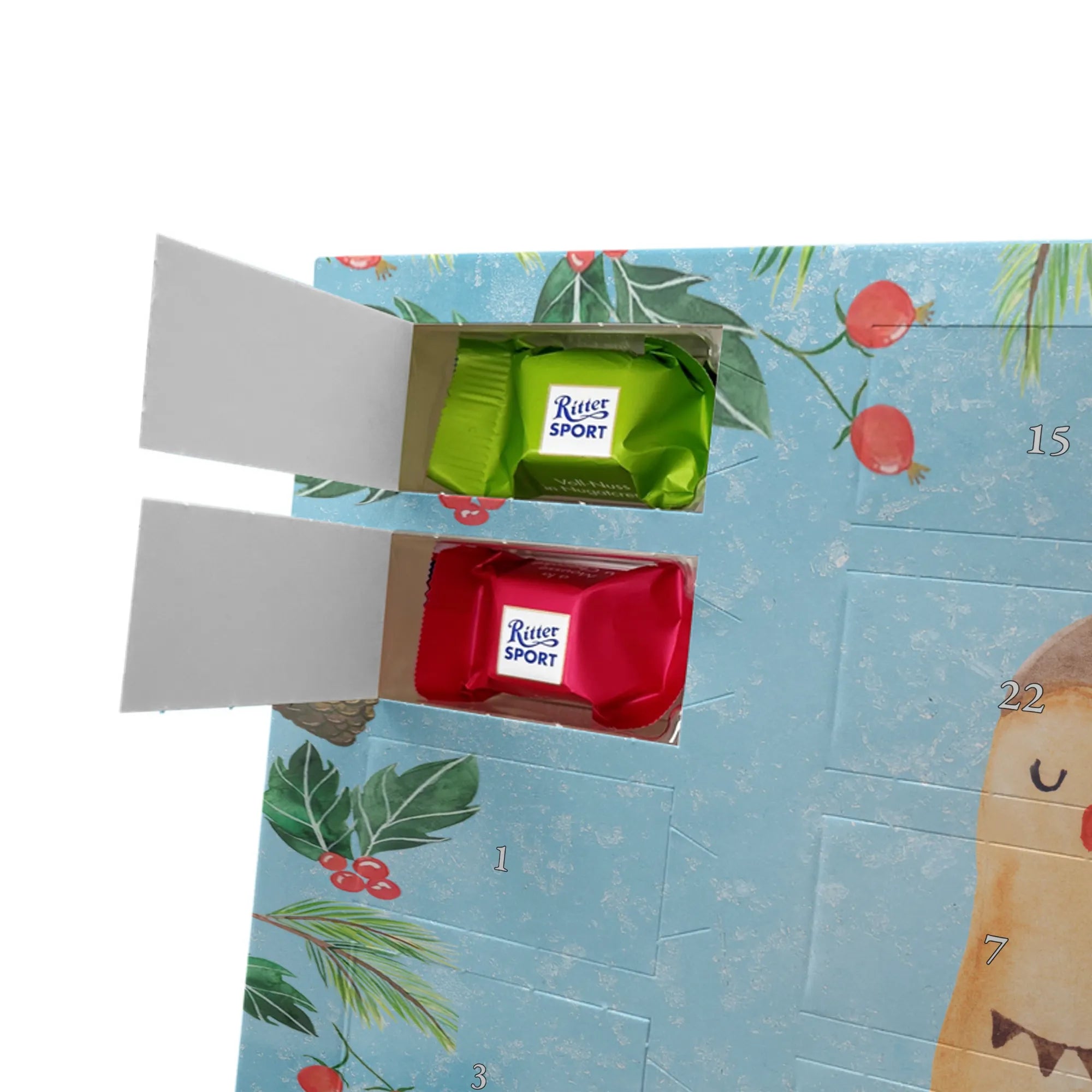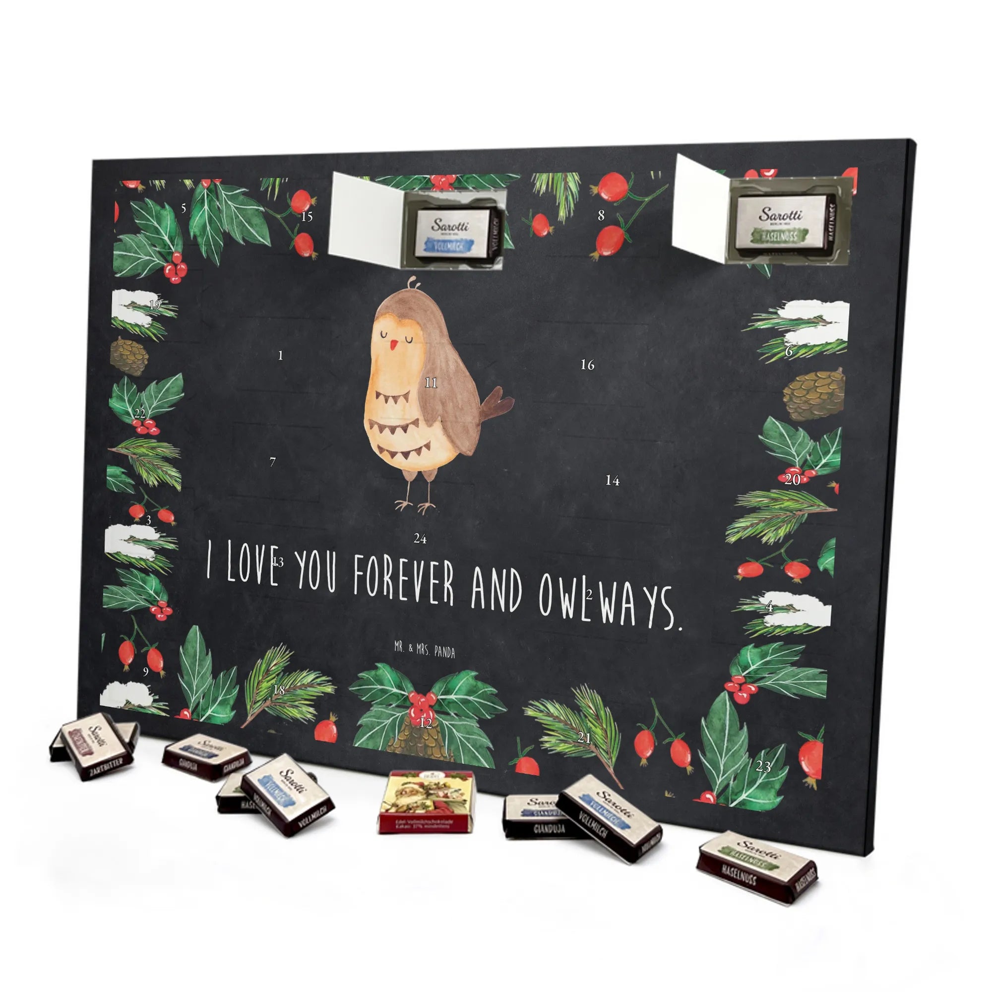 Chocolate advent calendar Owl Satisfied - Classic - with saying - Ice Blue