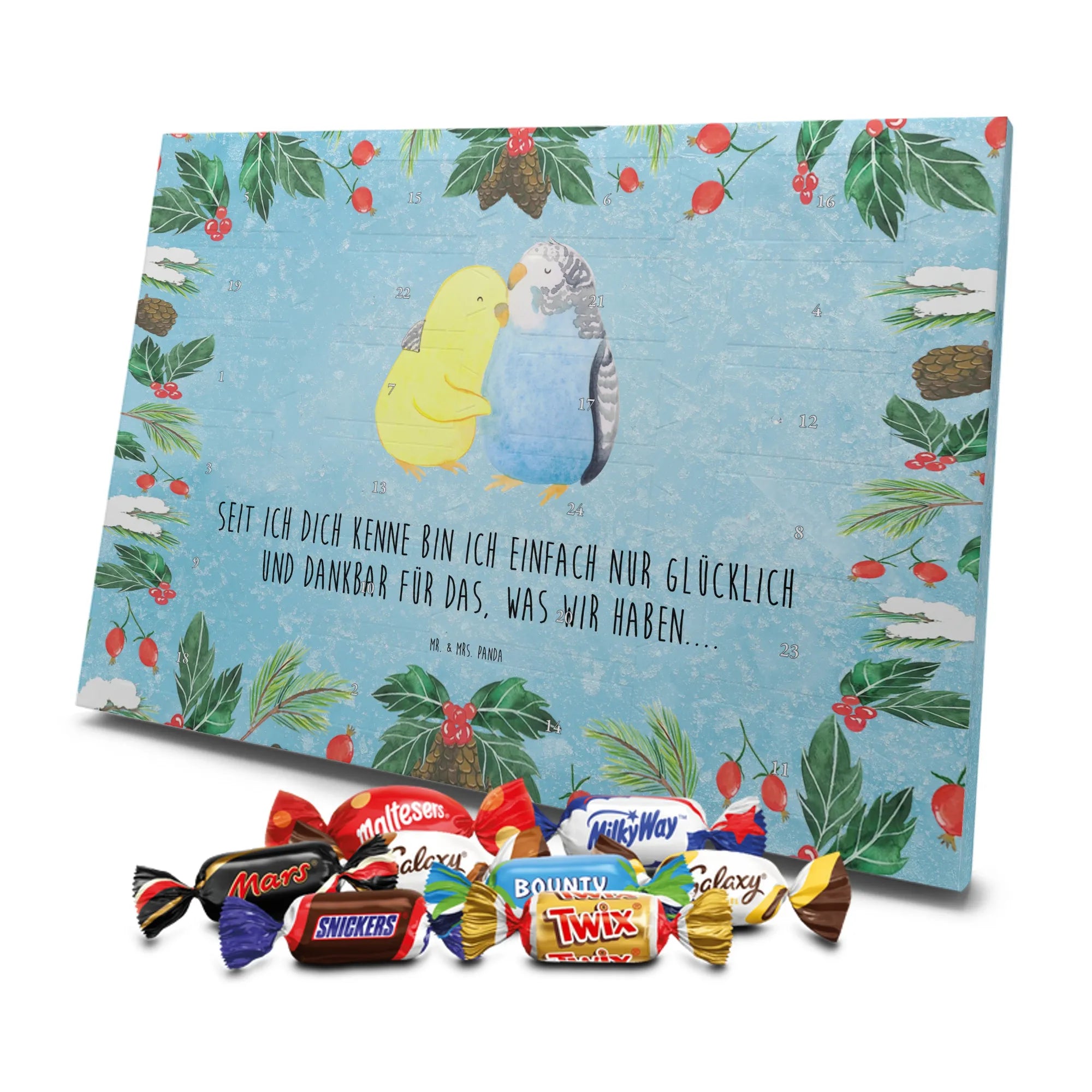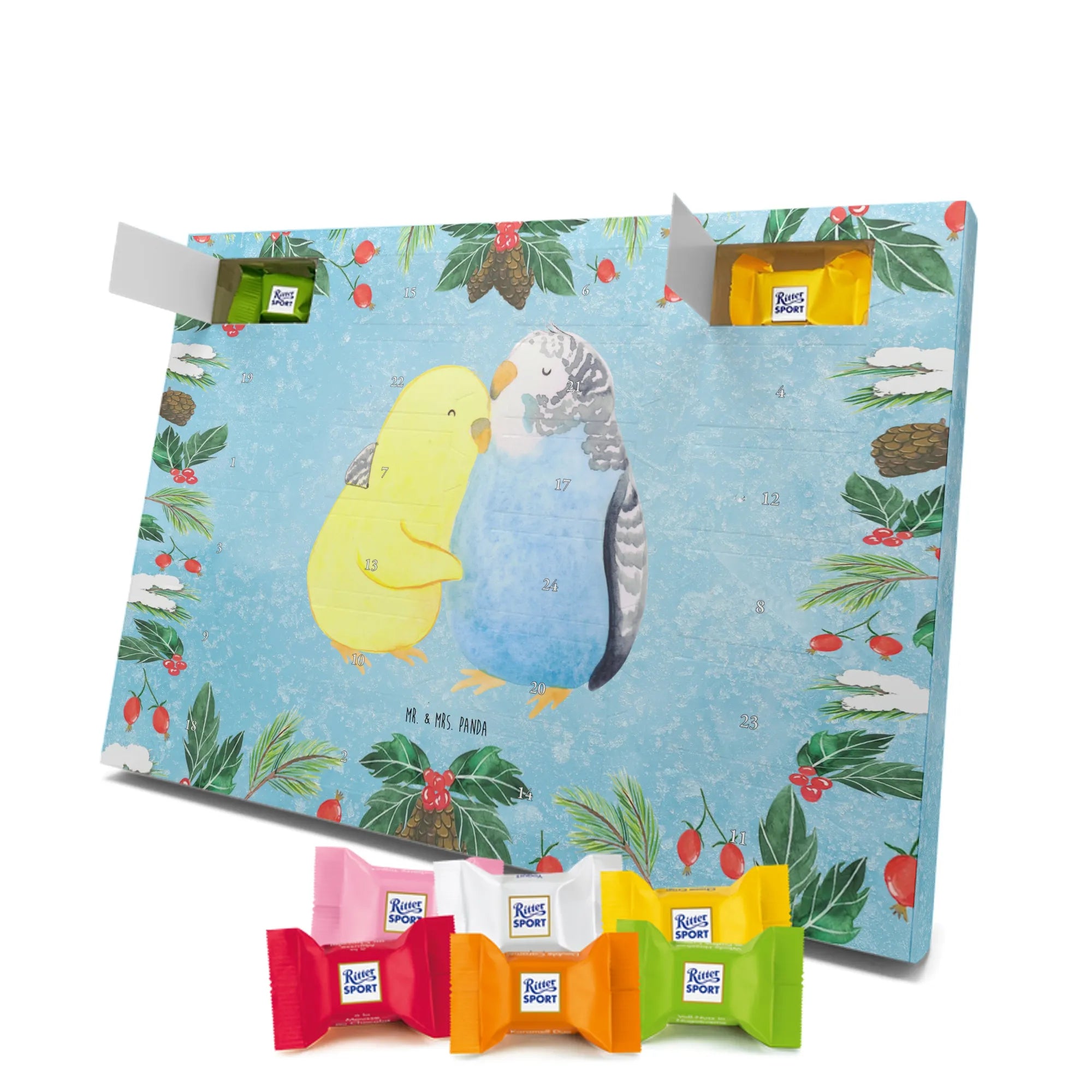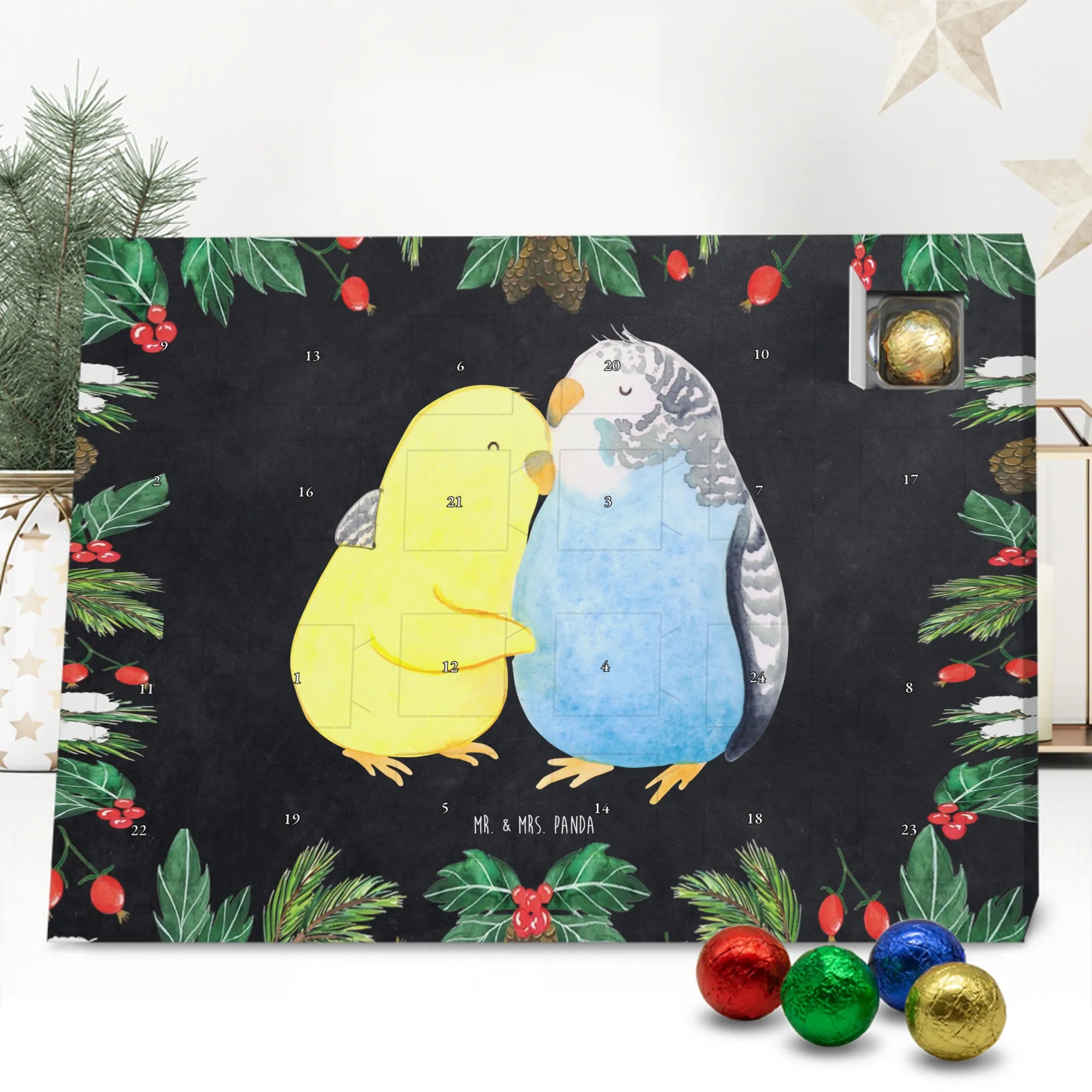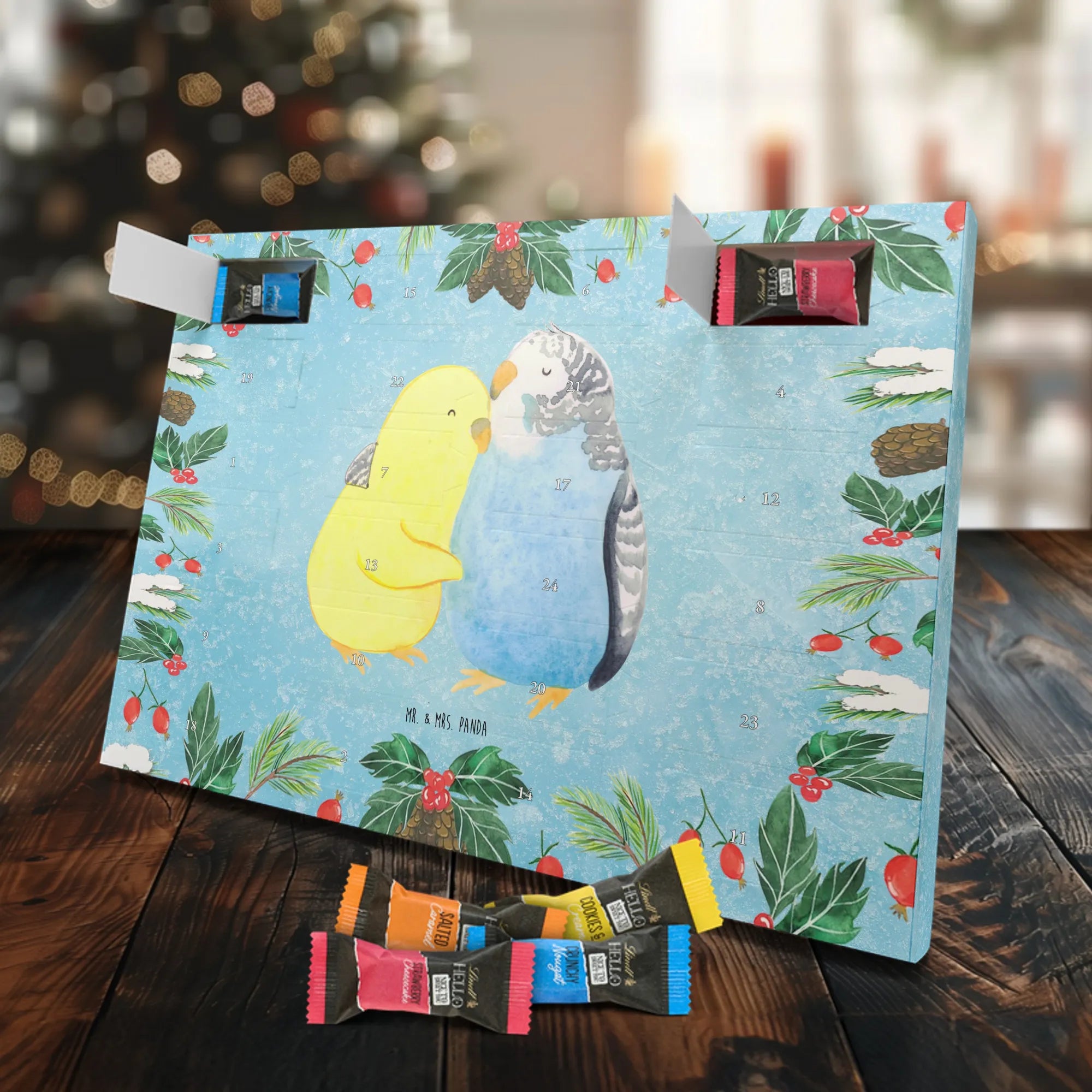 Chocolate advent calendar Parakeets in love - Classic - with saying - Ice Blue