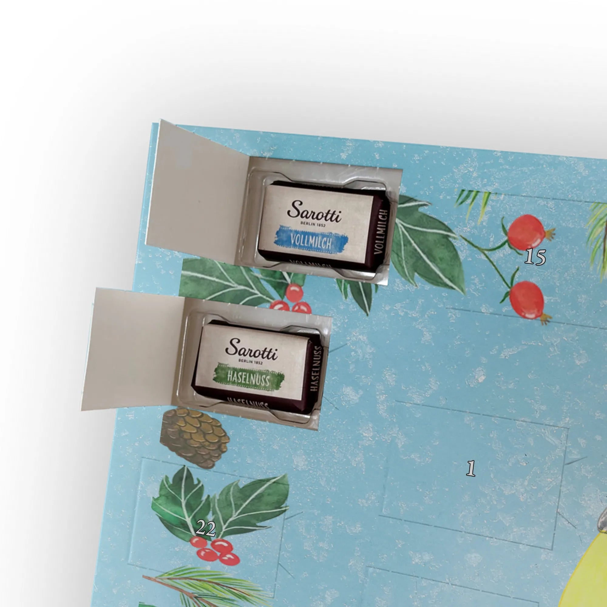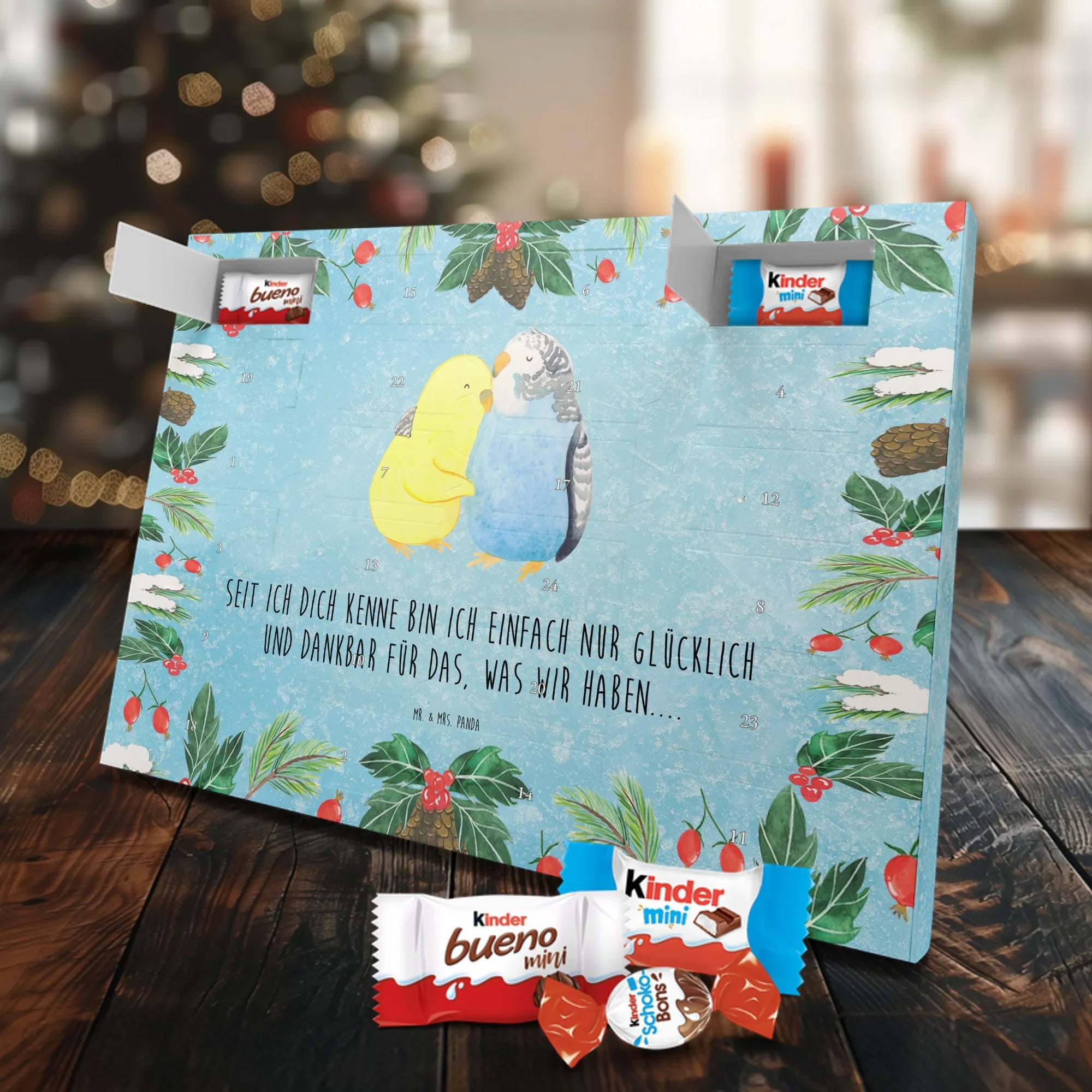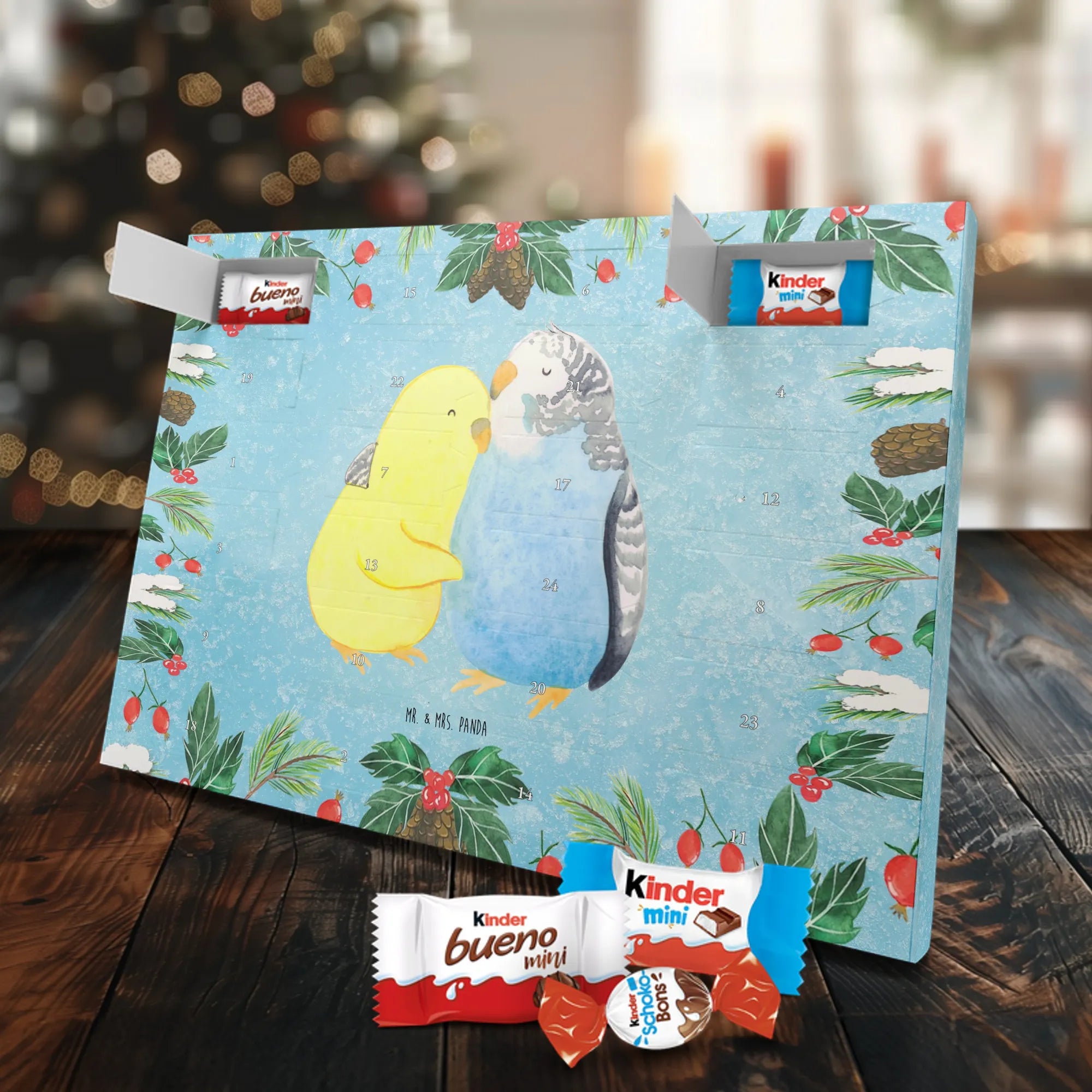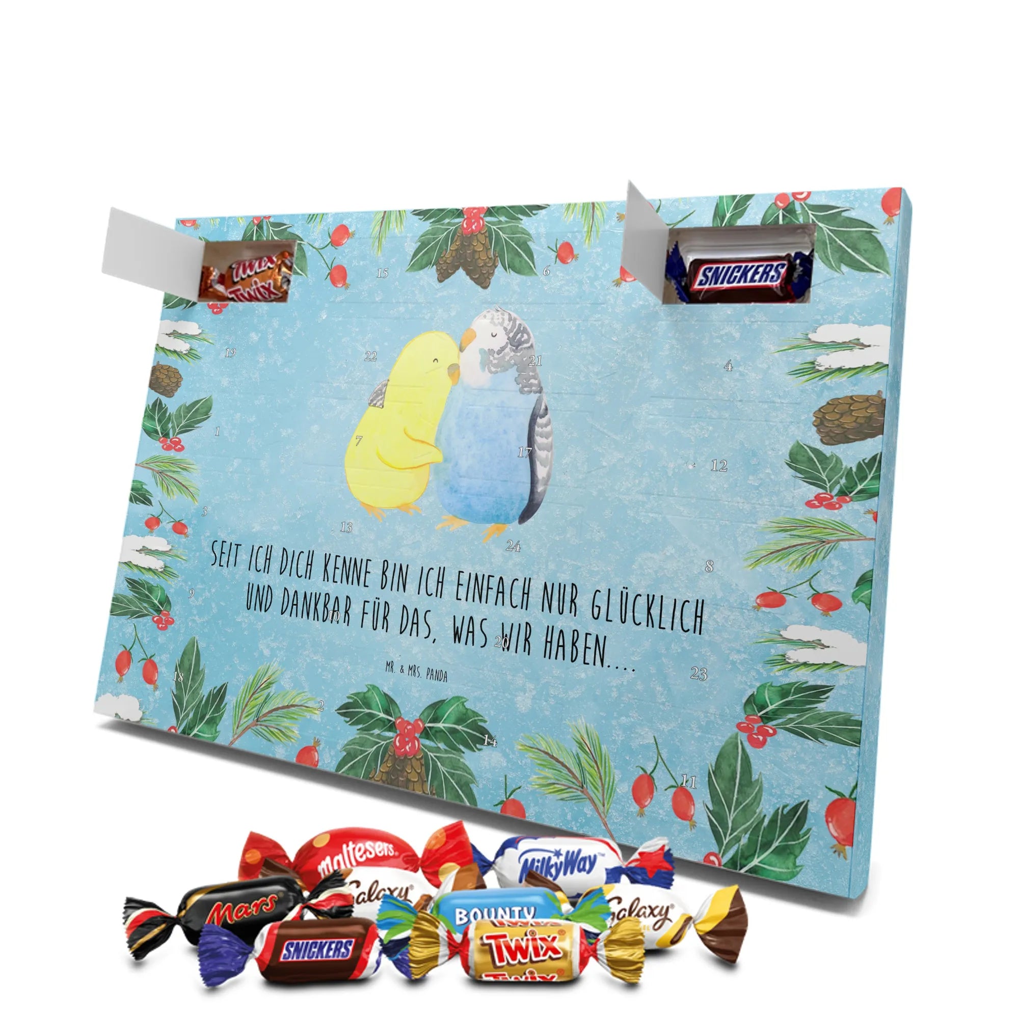 Chocolate advent calendar Parakeets in love - Classic - with saying - Ice Blue