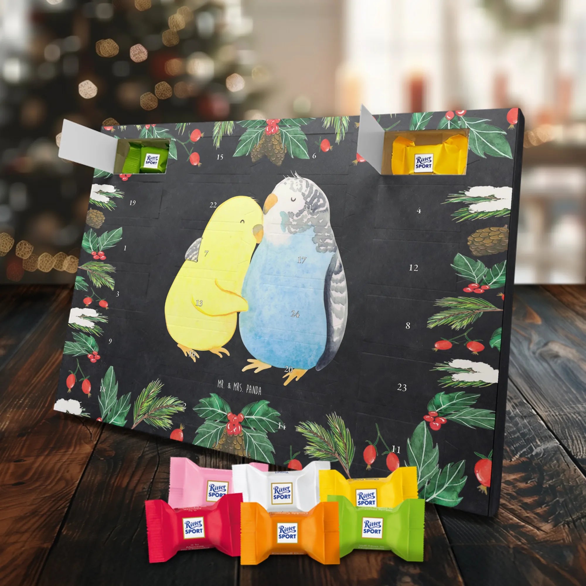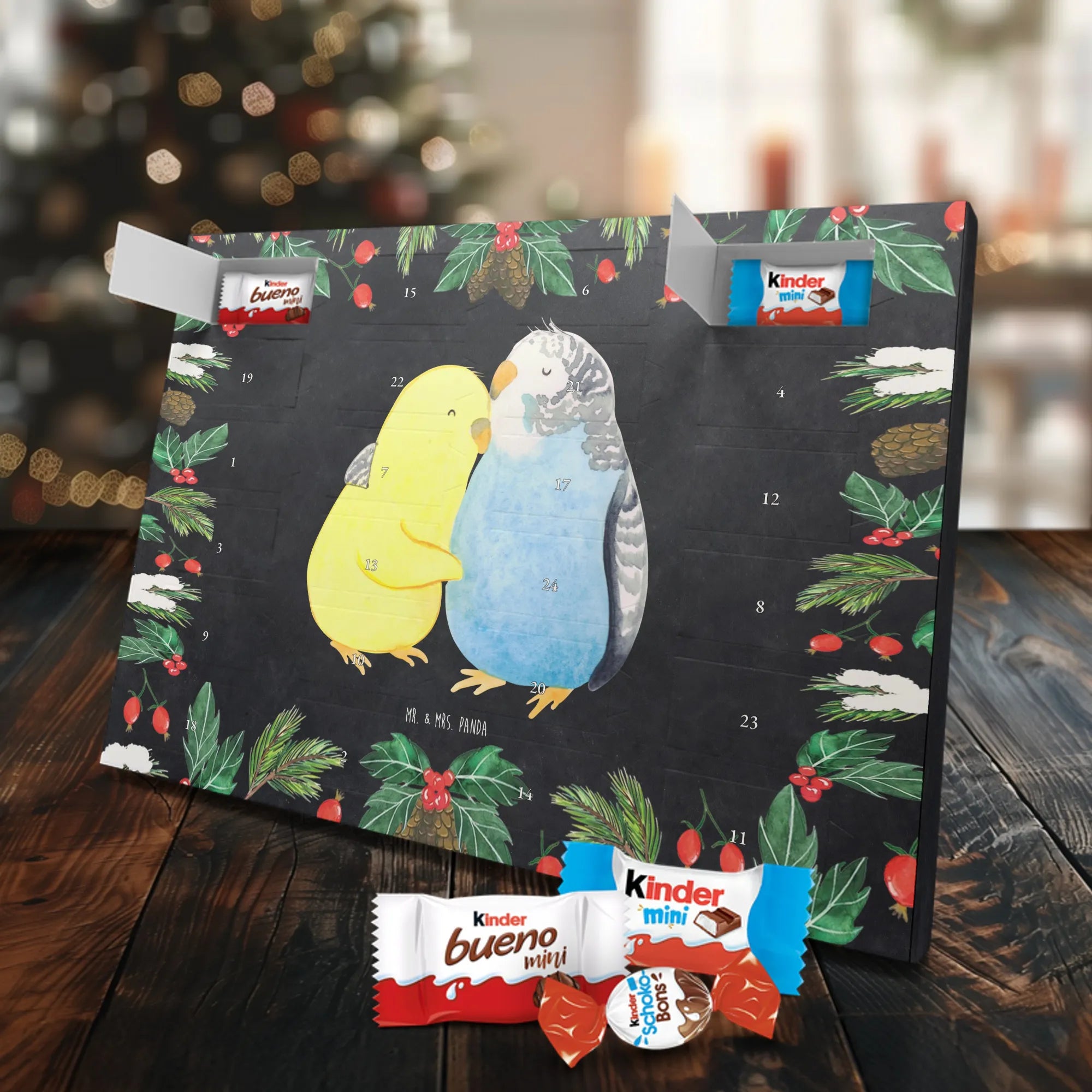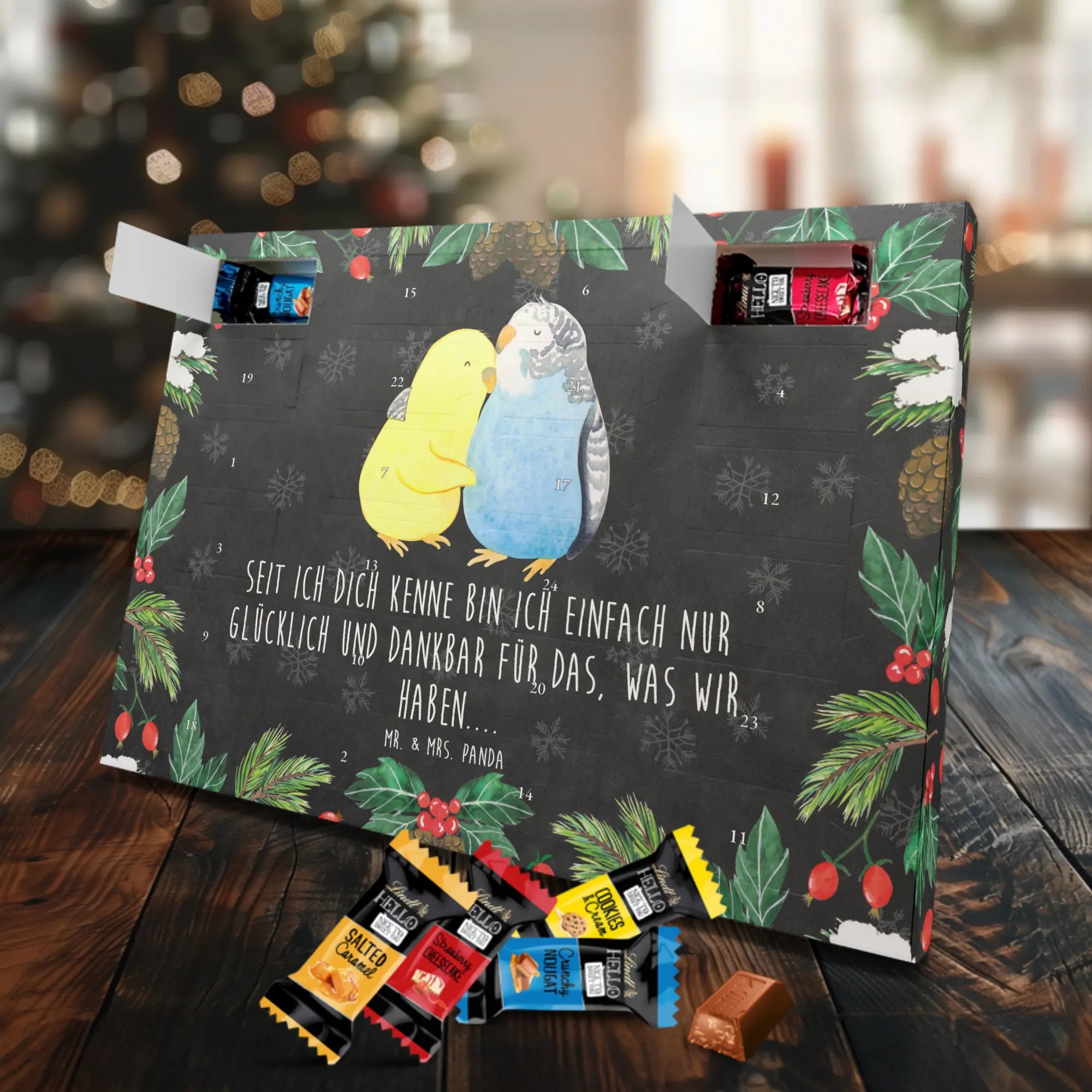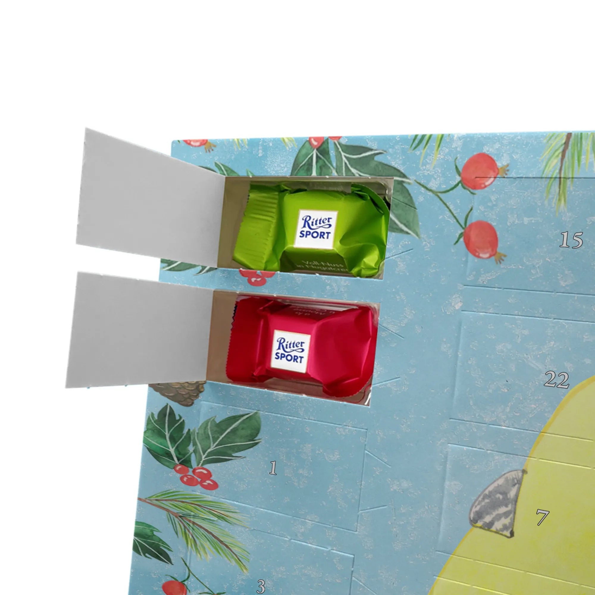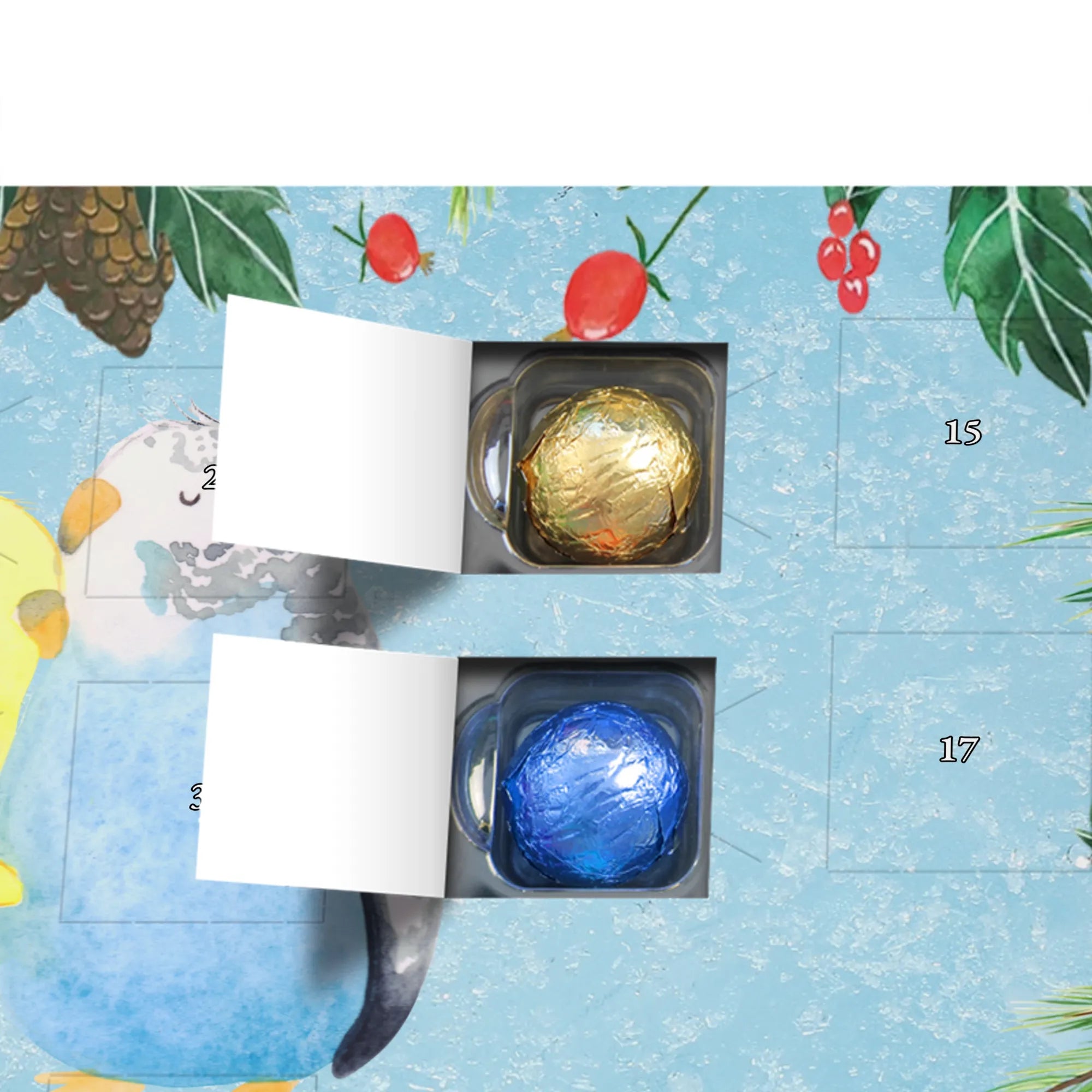 Chocolate advent calendar Parakeets in love - Classic - with saying - Ice Blue