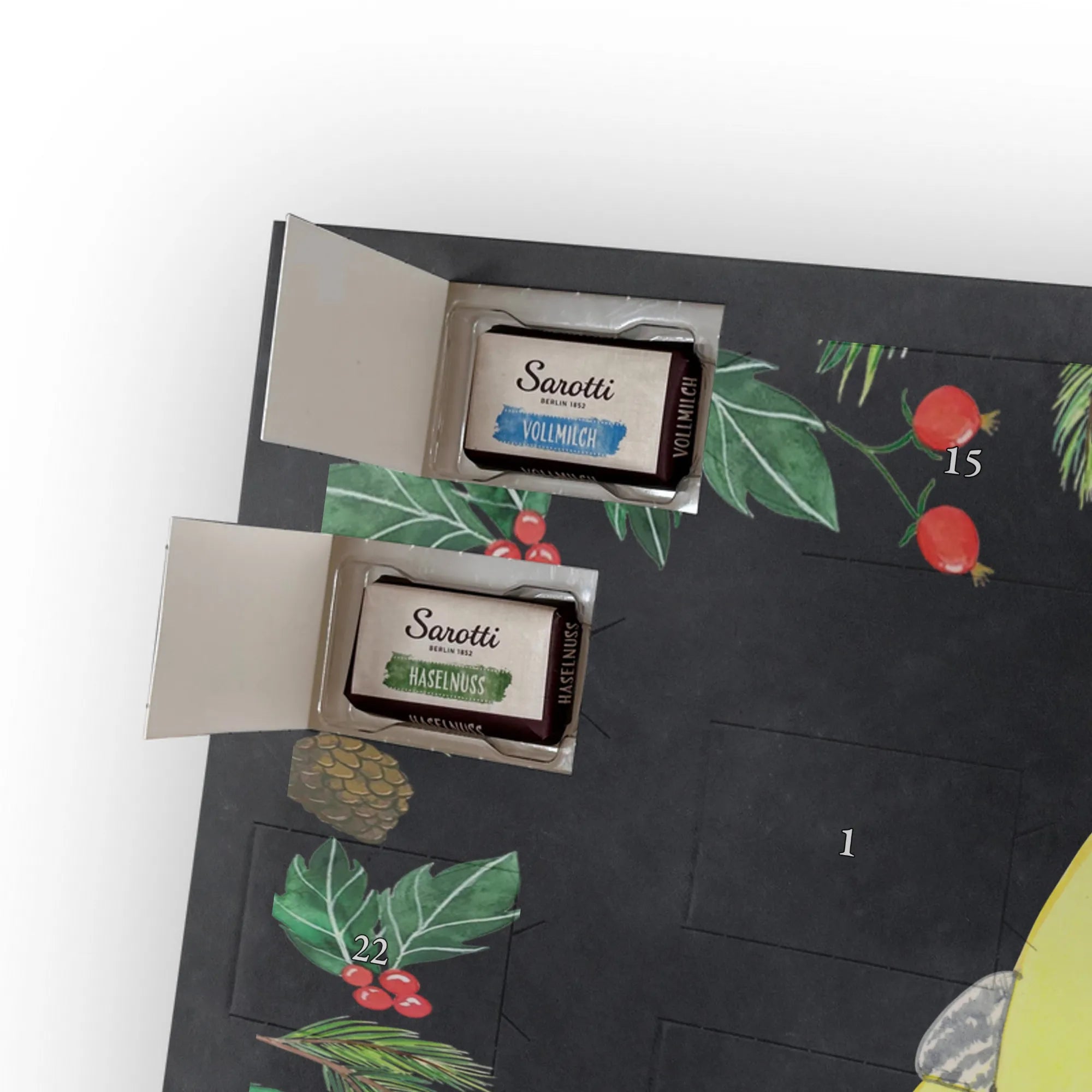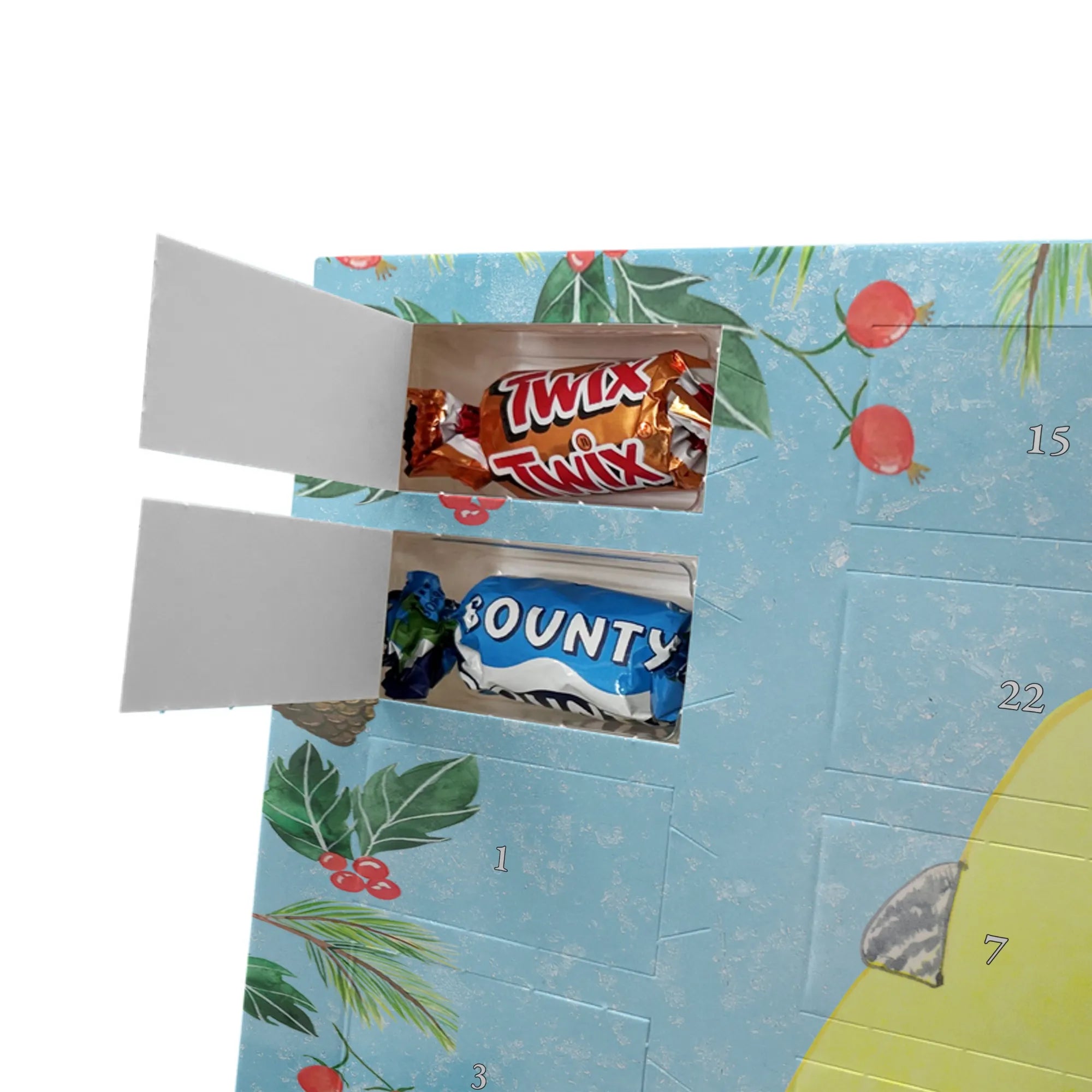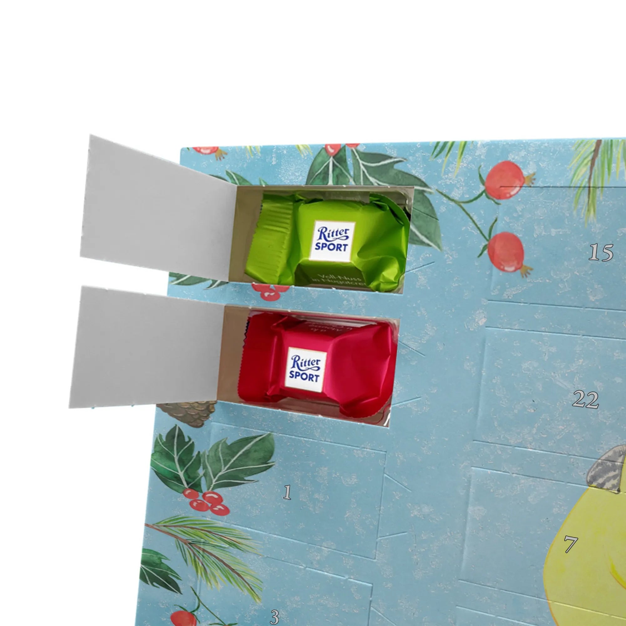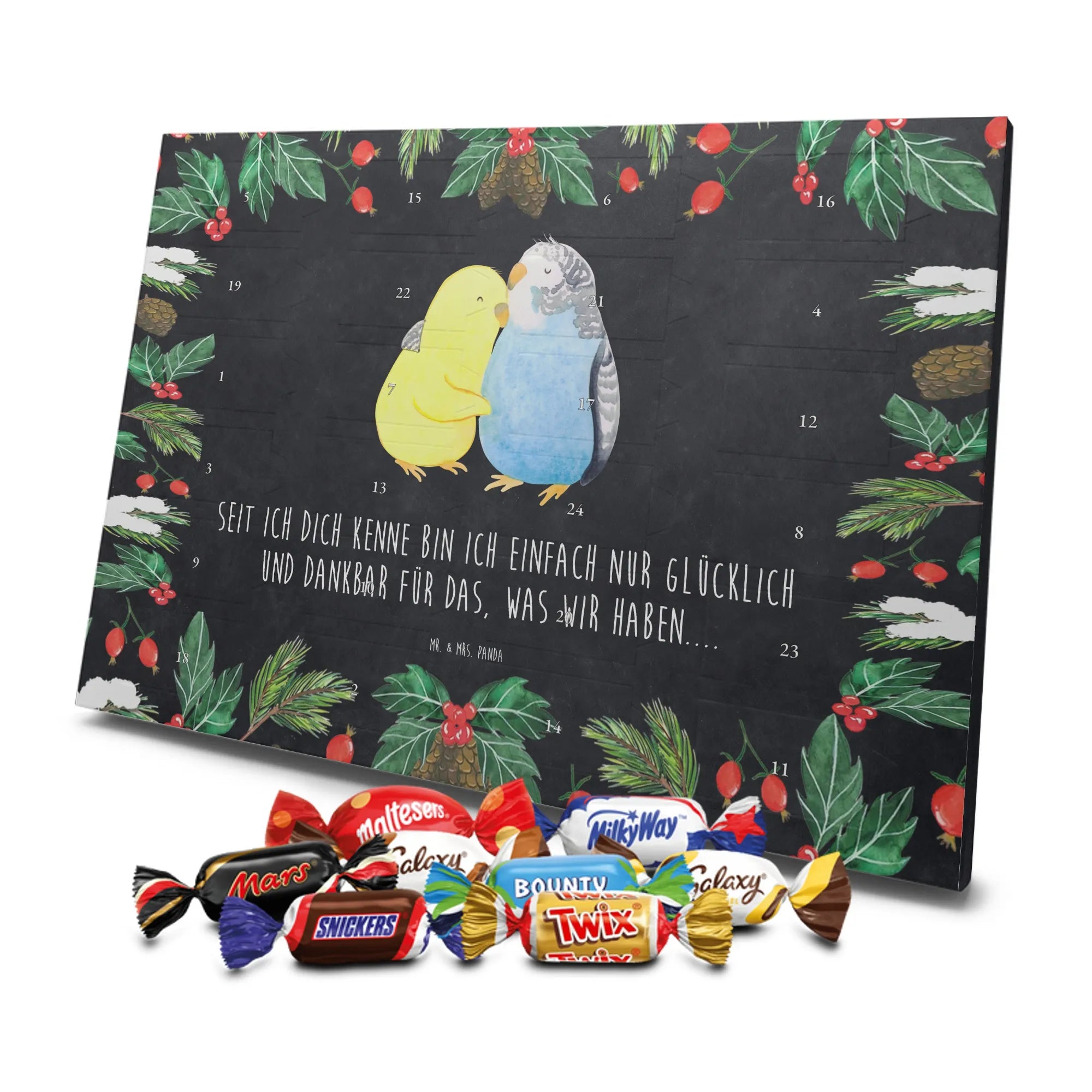Chocolate advent calendar Parakeets in love - Classic - with saying - Ice Blue