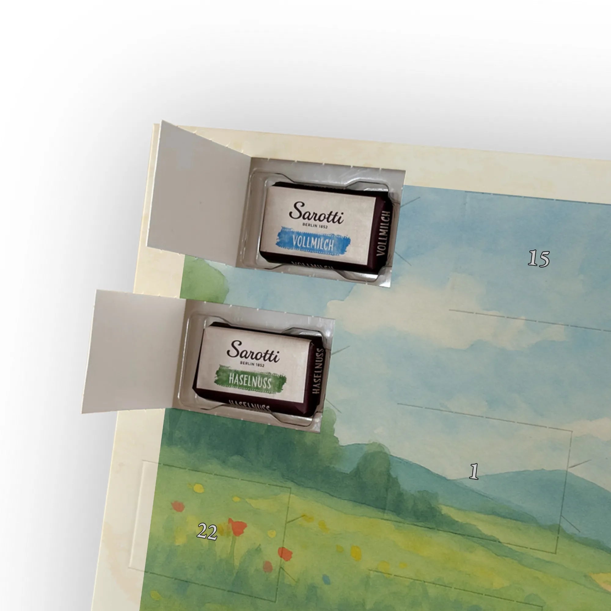 Chocolate advent calendar Penguin Flower Design - Classic - with saying