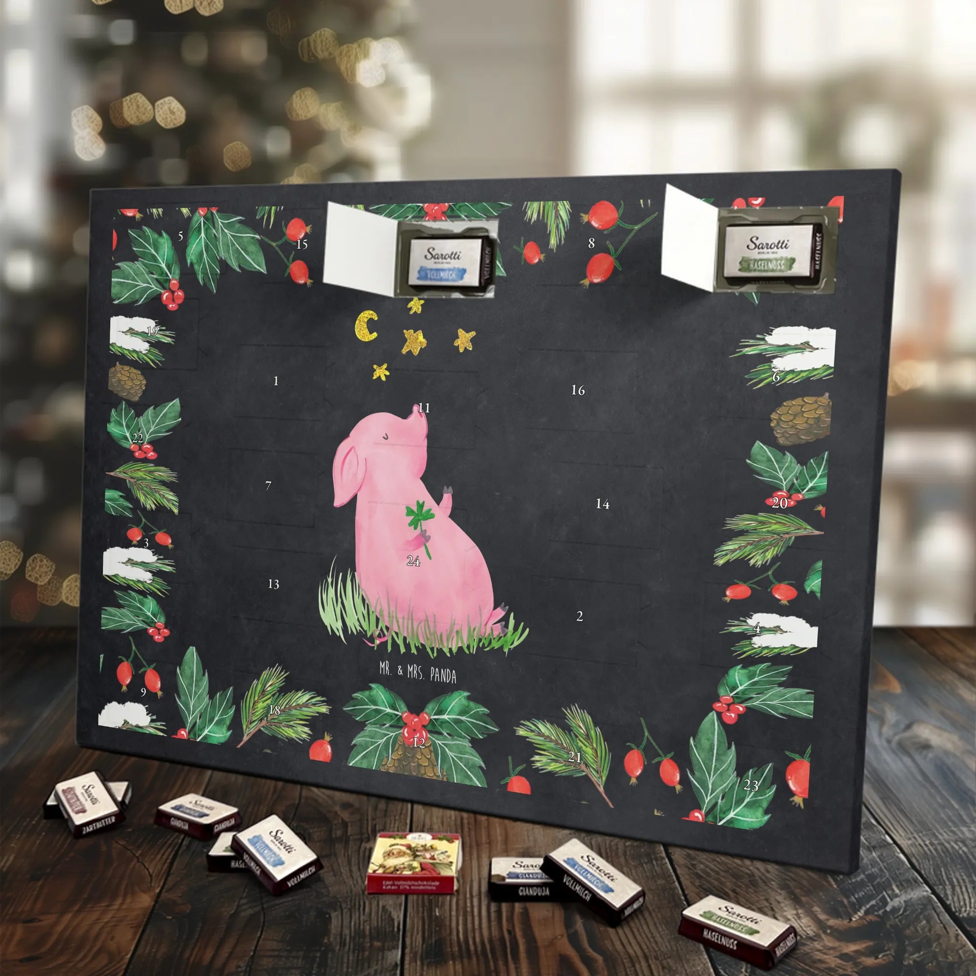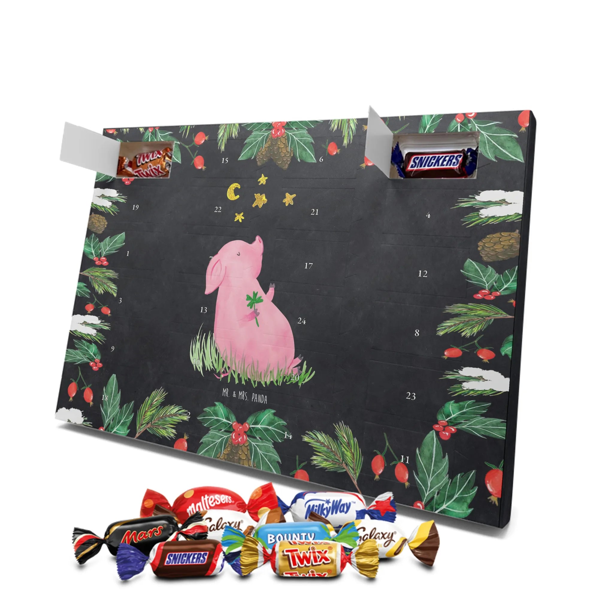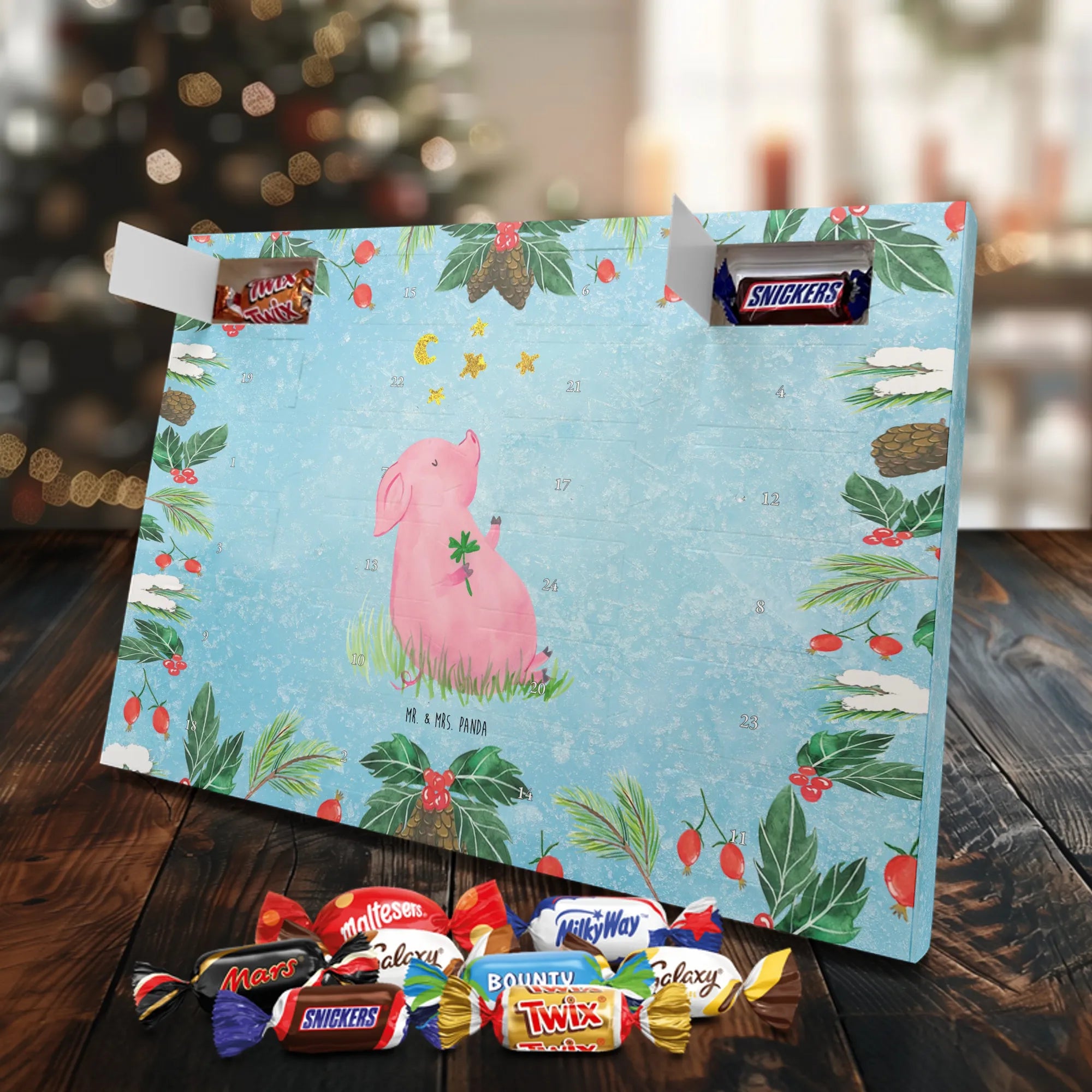 Chocolate advent calendar Pig Luck - Classic - with saying - Ice Blue
