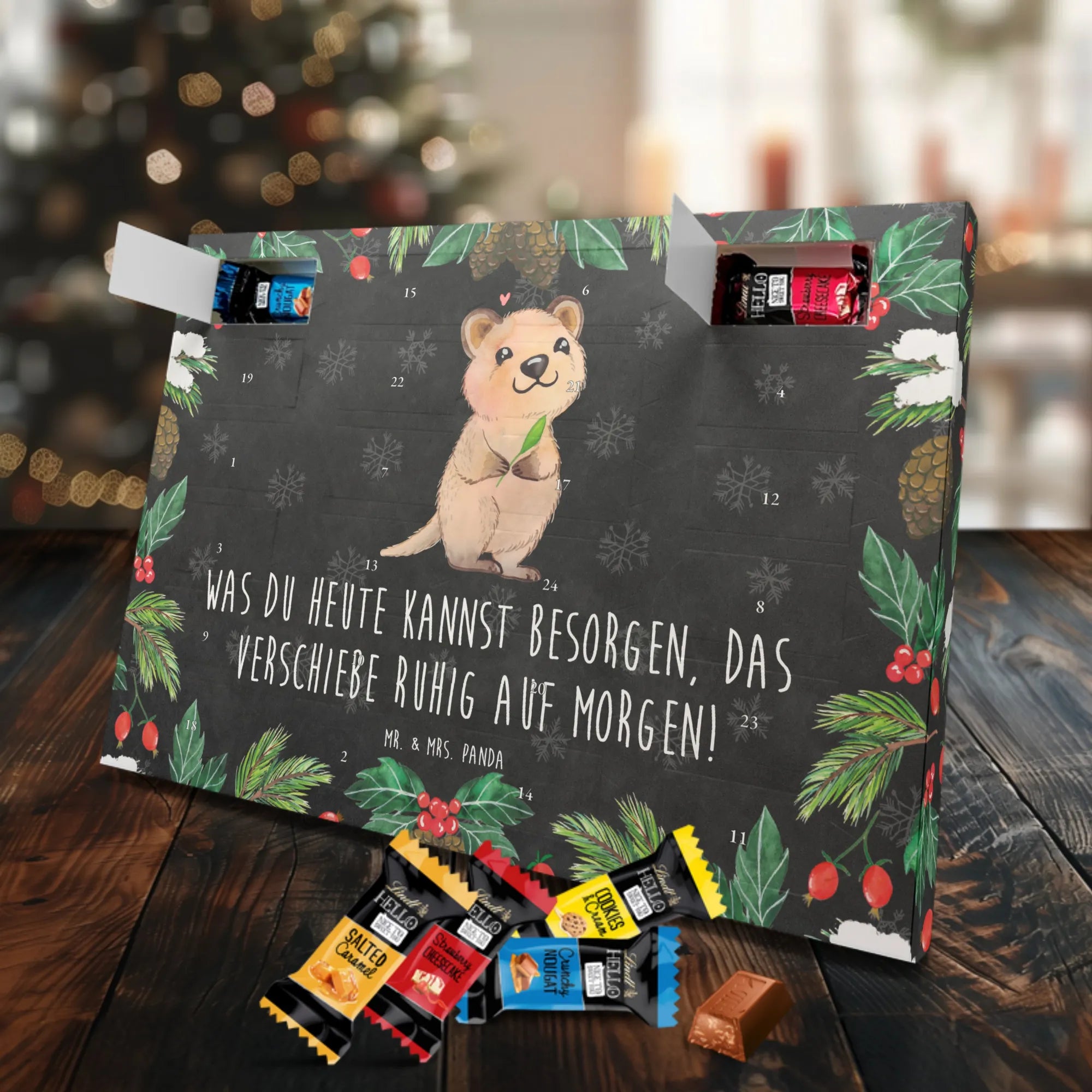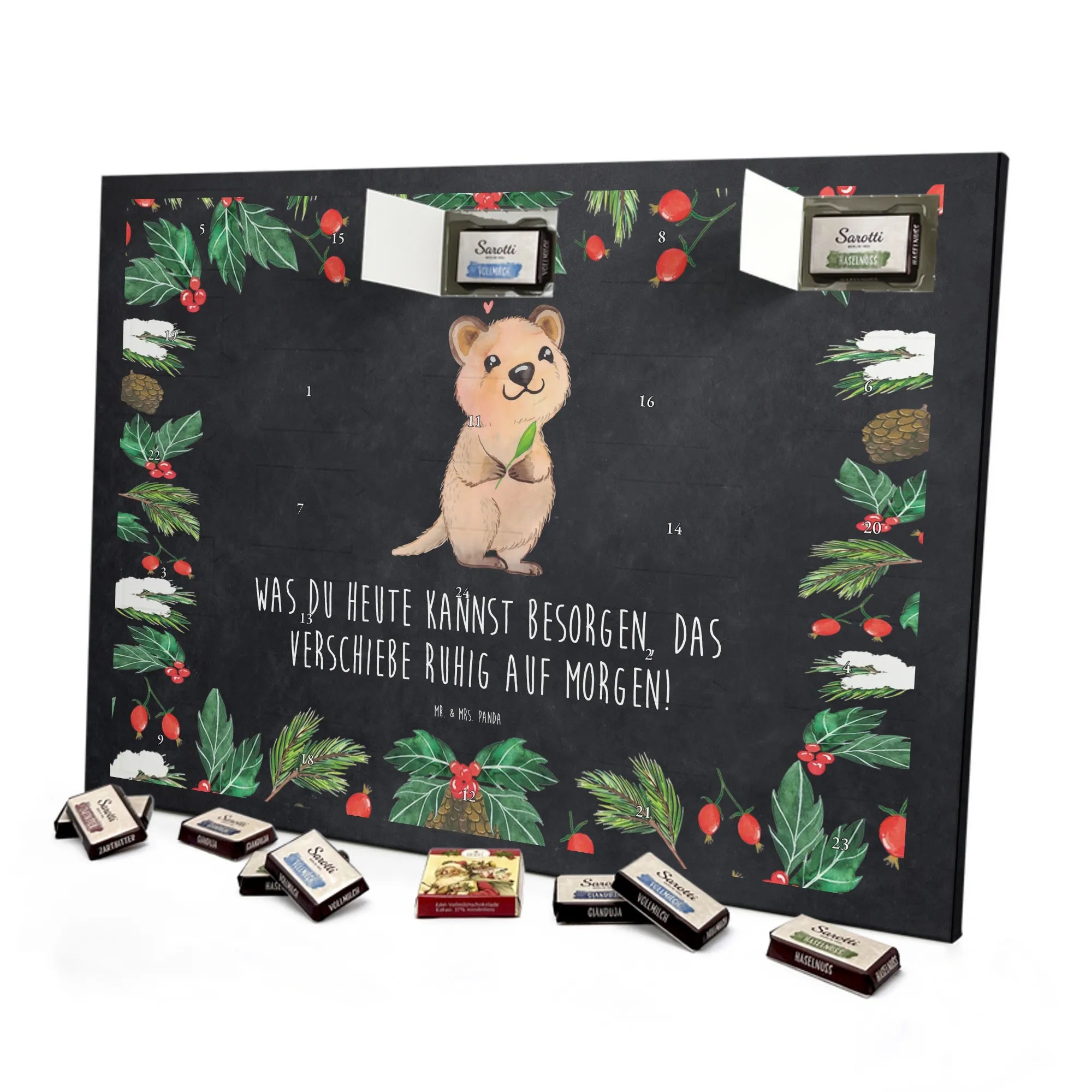 Chocolate advent calendar Quokka Happy - Classic - with saying - Ice Blue