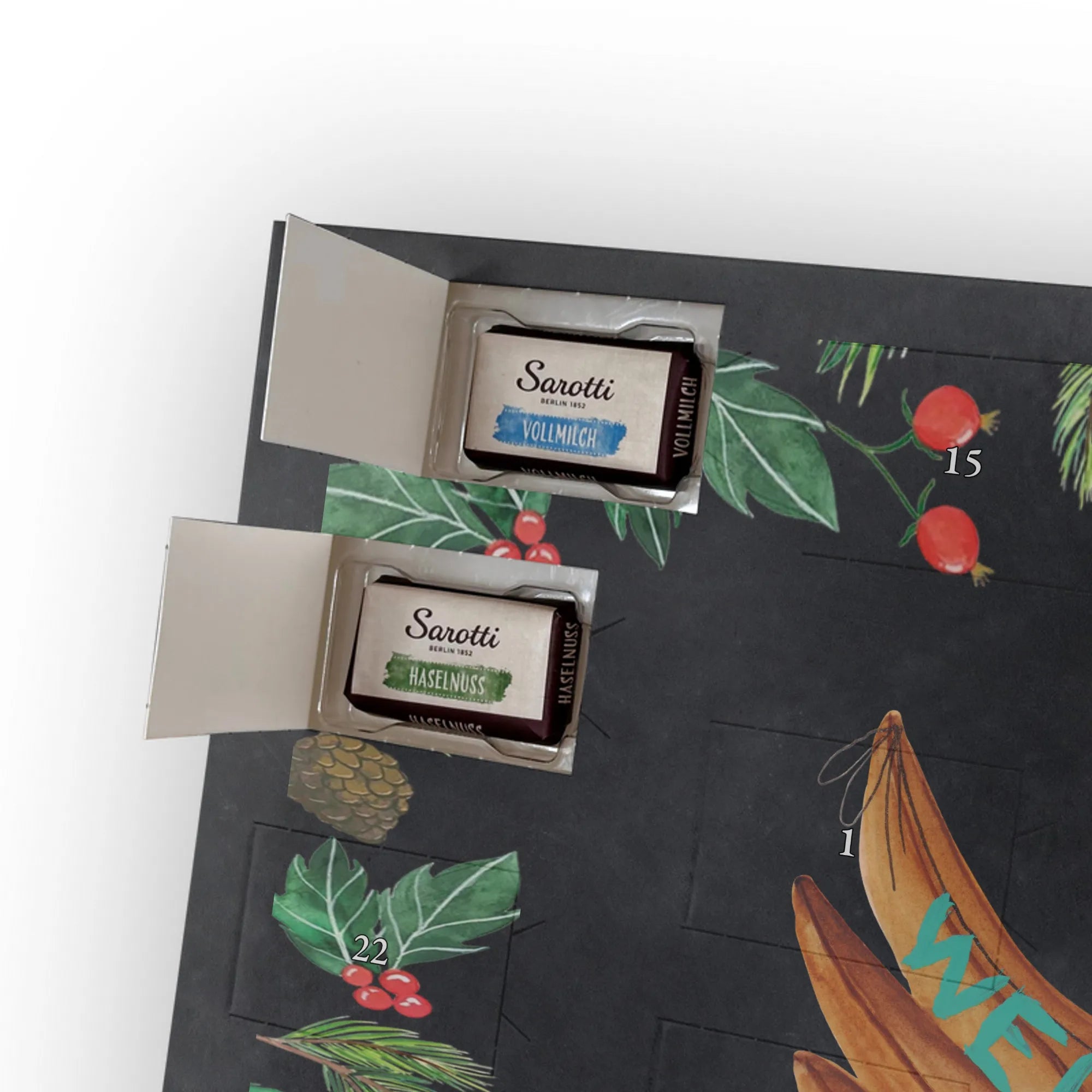 Chocolate advent calendar robin Christmas - Classic - with saying - Ice Blue