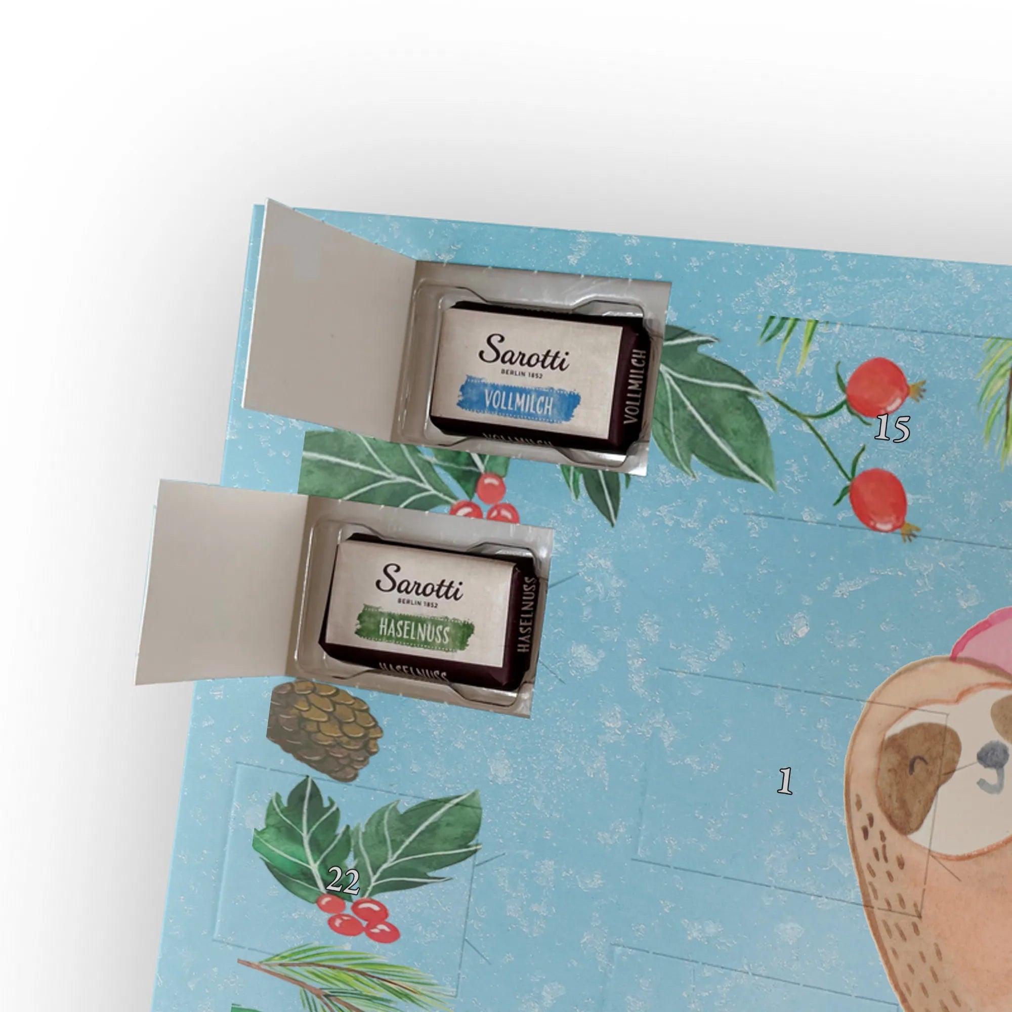Chocolate advent calendar sloths Heart - Classic - with saying - Ice Blue