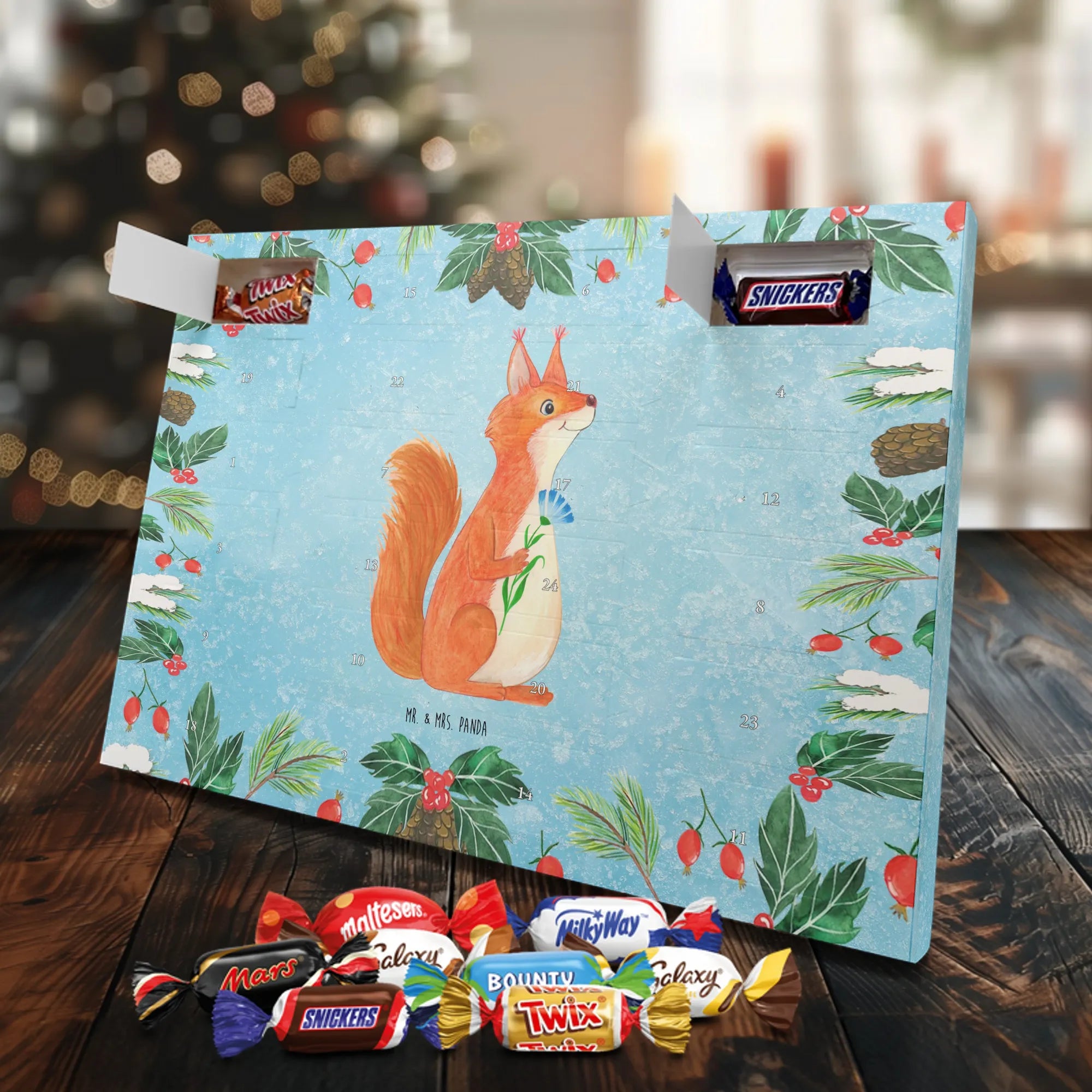 Chocolate advent calendar Squirrel flower - Classic - with saying - Ice Blue
