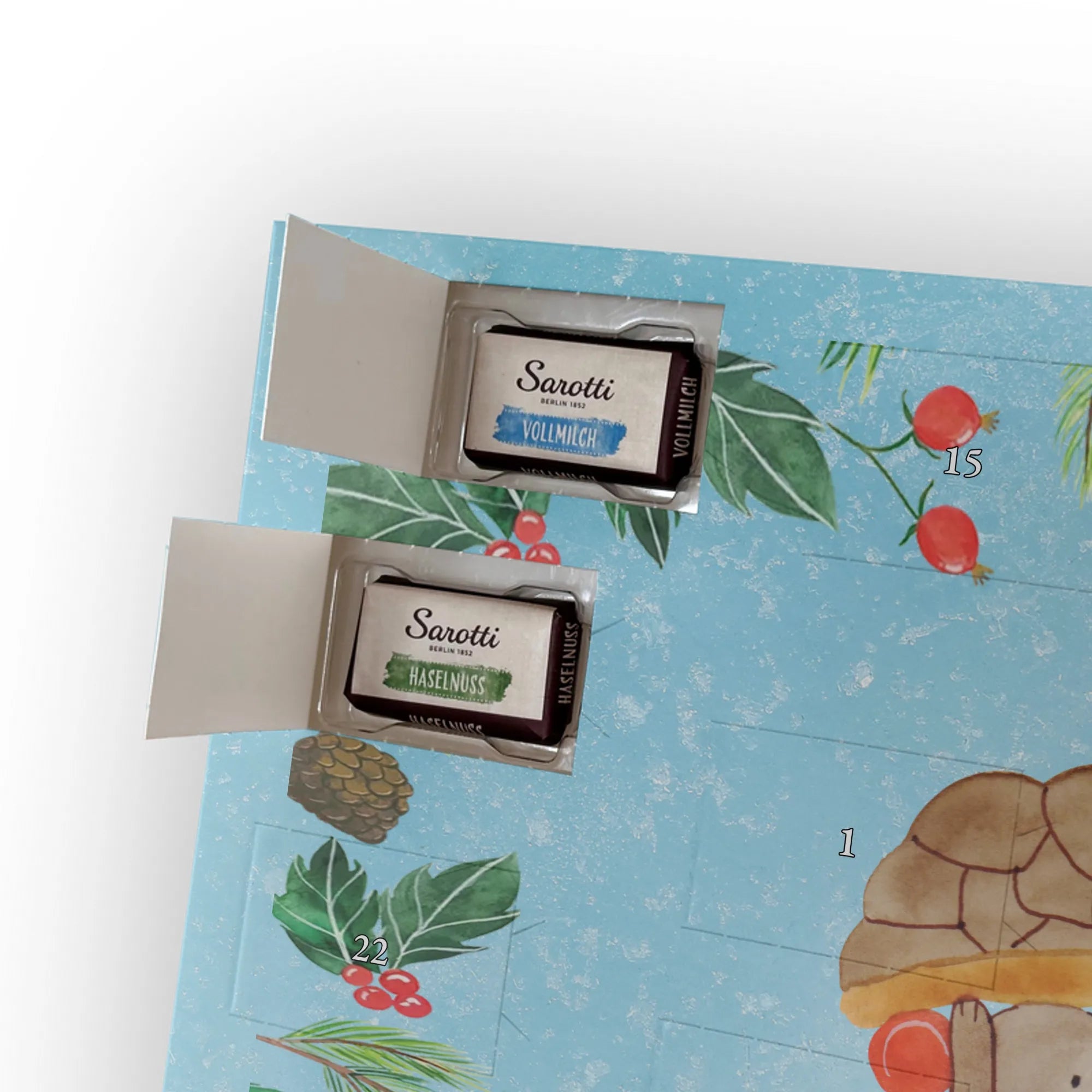 Chocolate advent calendar tortoise Mouse - Classic - with saying - Ice Blue
