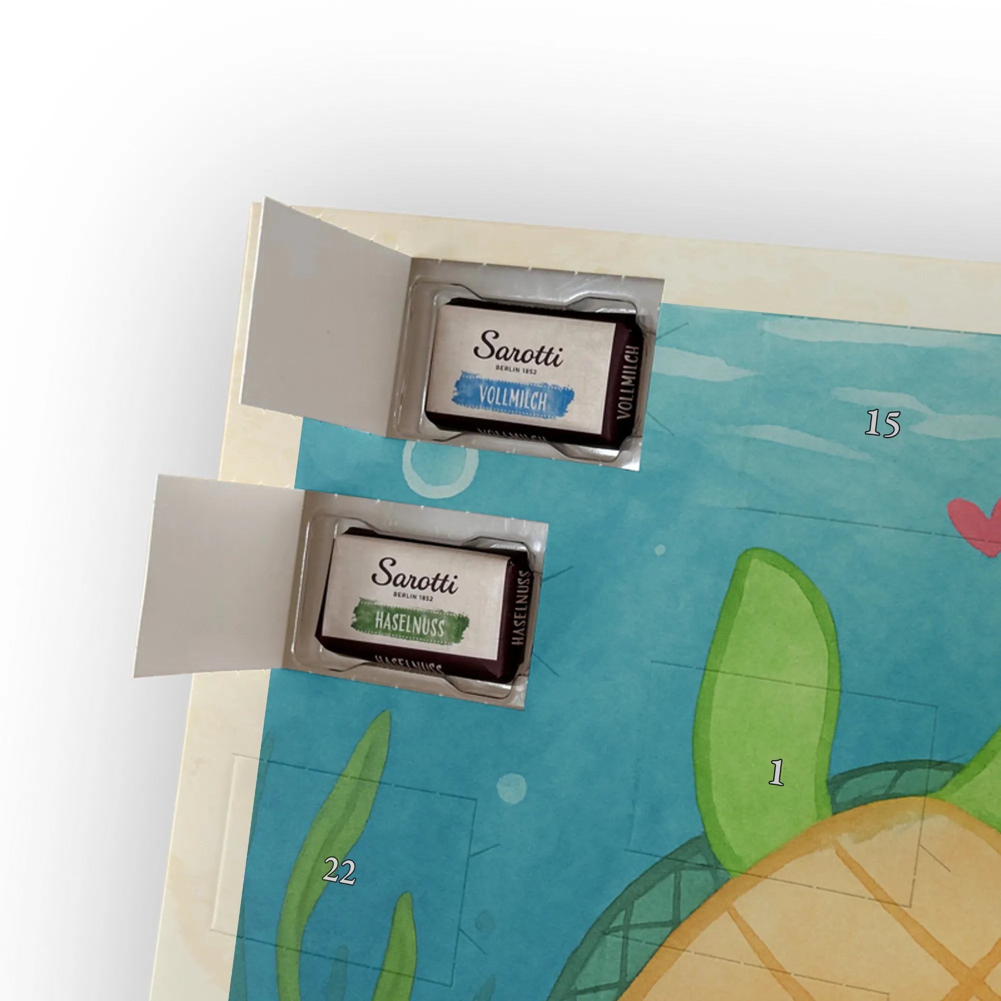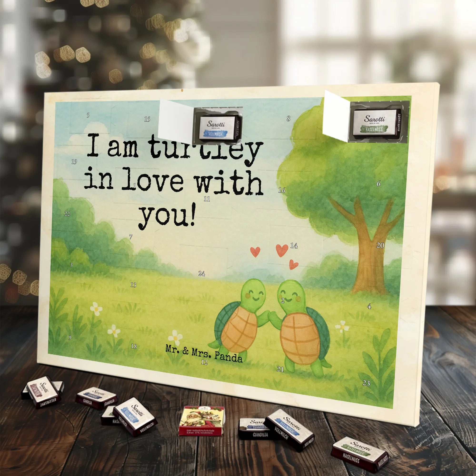 Chocolate advent calendar turtles Pair Design - Lindt HELLO - with saying