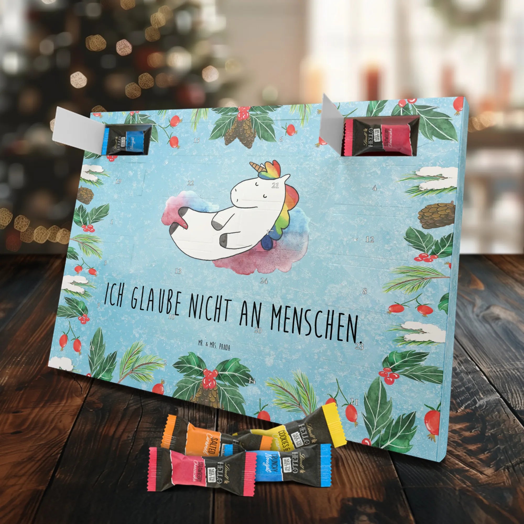 Chocolate advent calendar unicorn cloud 7 - Classic - with saying - Ice Blue