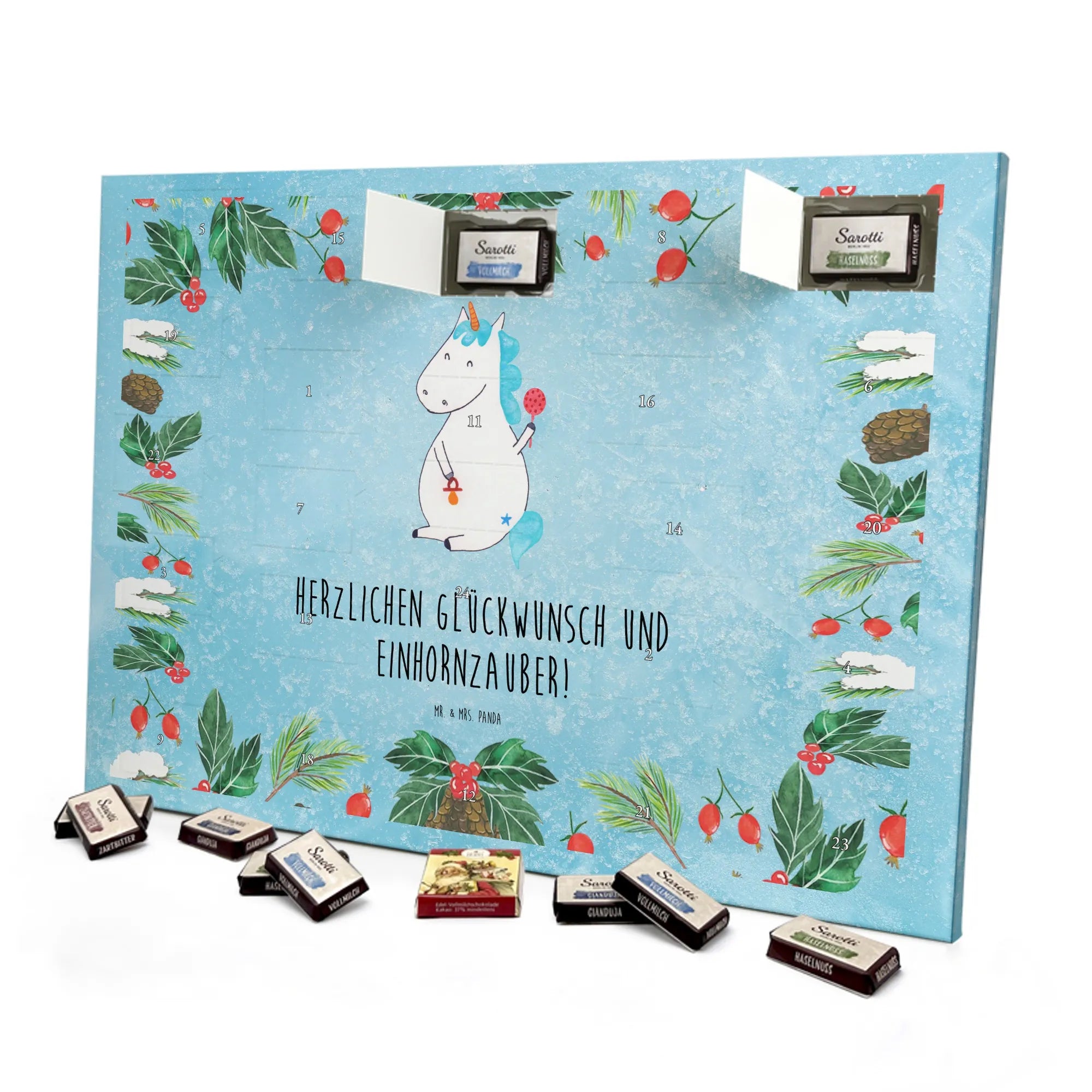 Chocolate advent calendar unicorn infant - Classic - with saying - Ice Blue