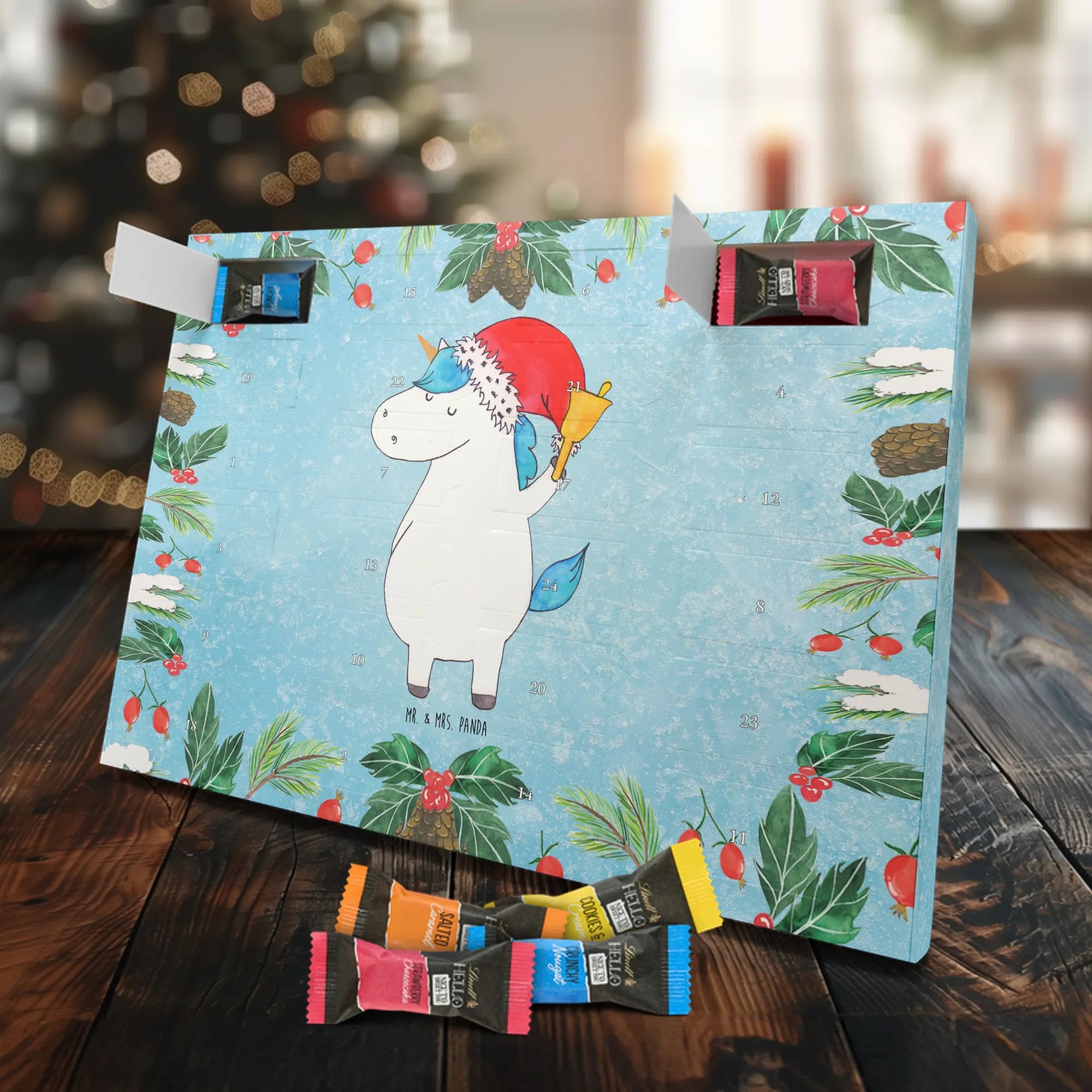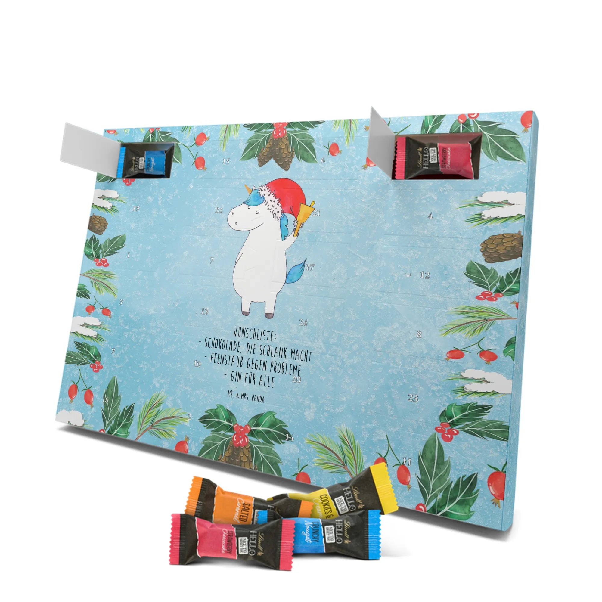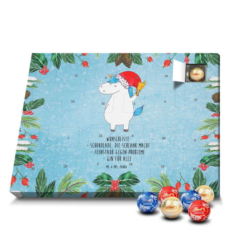 Chocolate advent calendar unicorn Santa Claus - Lindt LINDOR - with saying - Ice Blue
