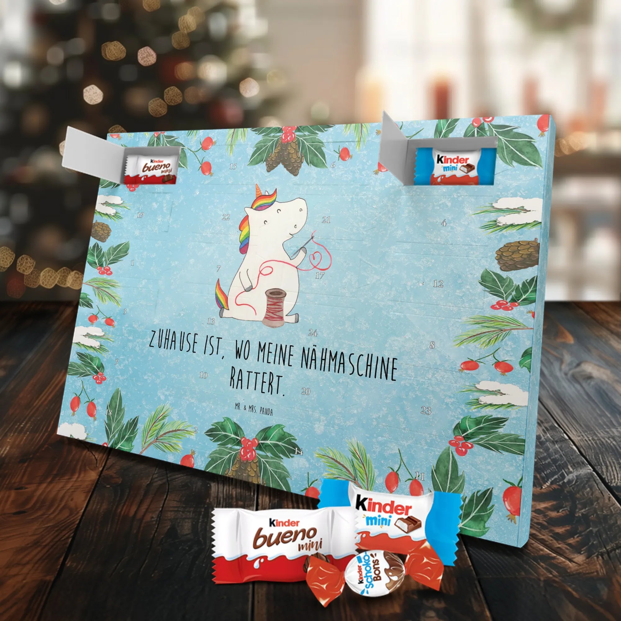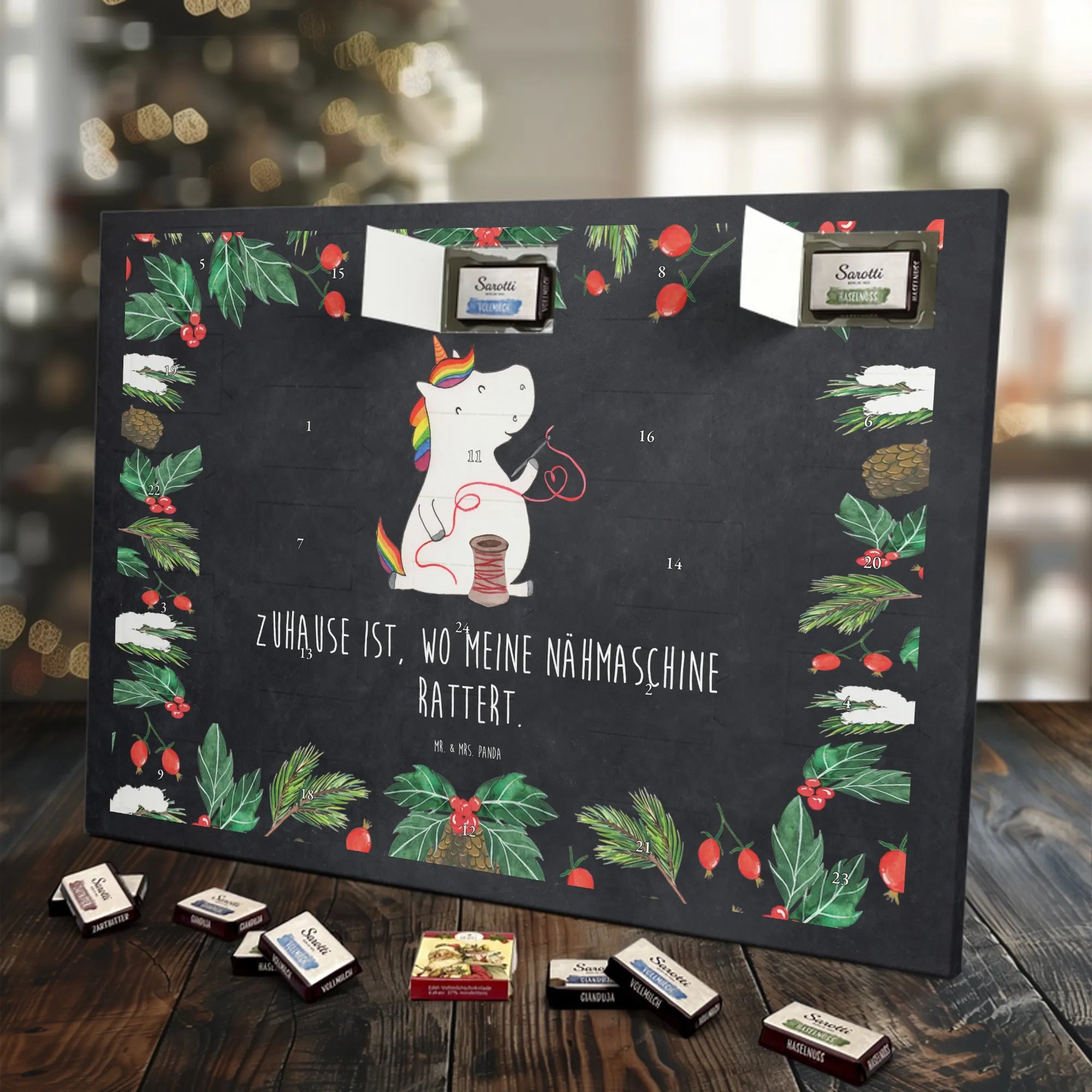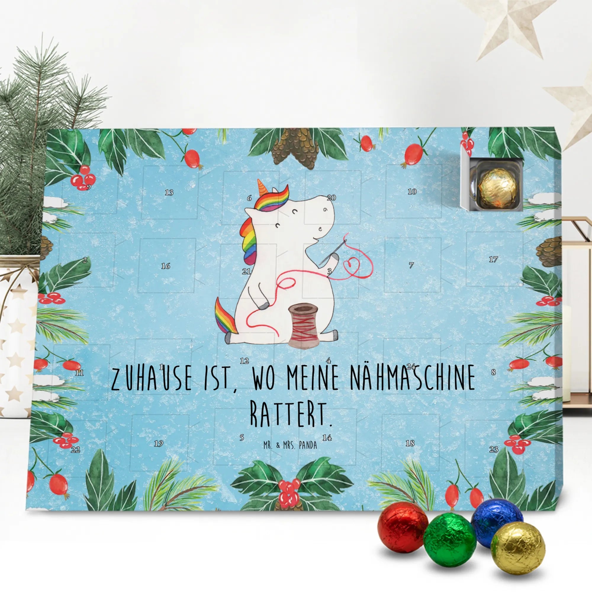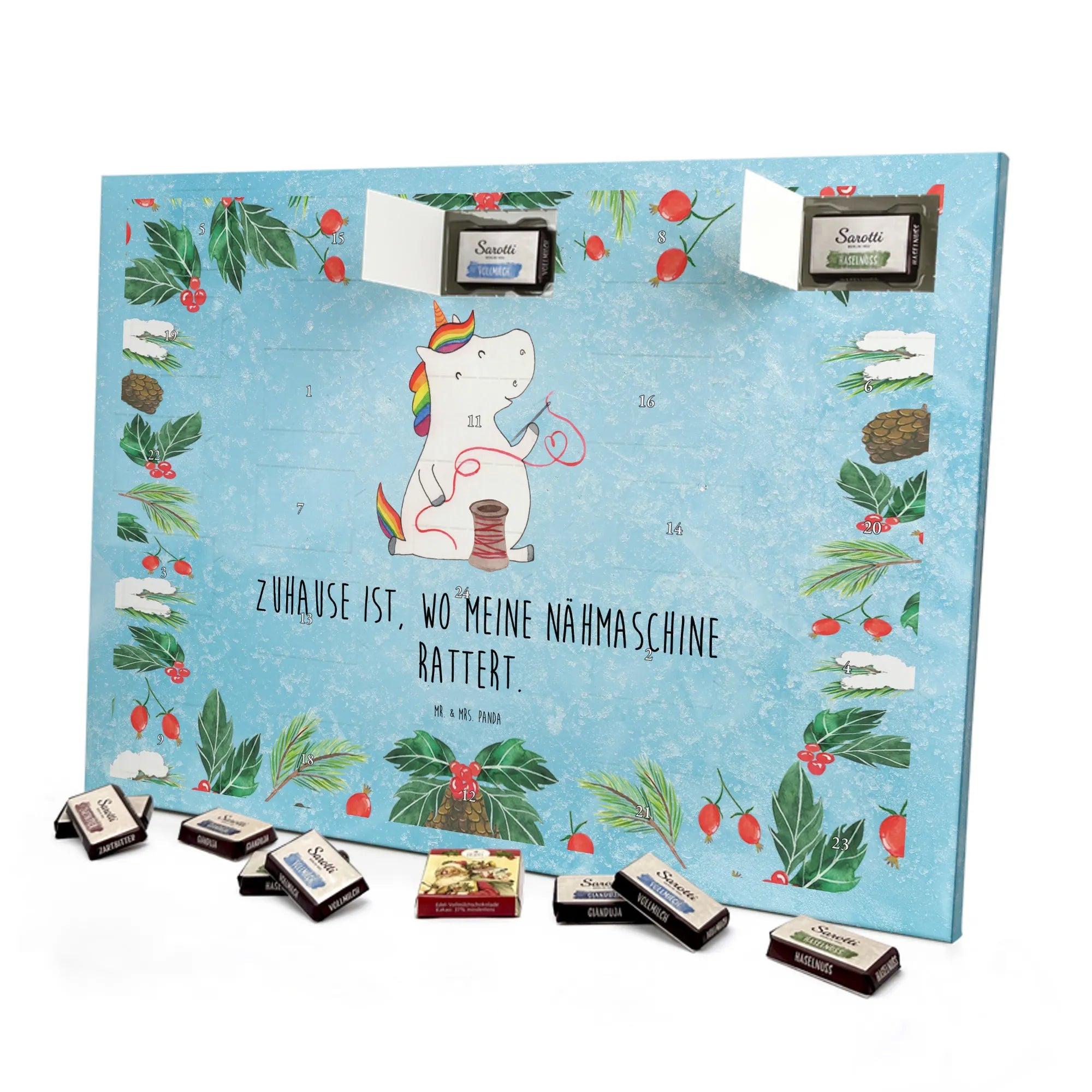 Chocolate advent calendar unicorn seamstress - Classic - with saying - Ice Blue