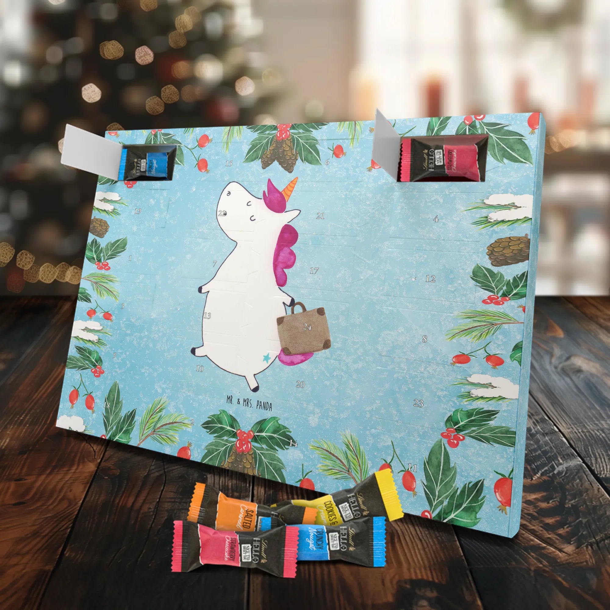 Chocolate advent calendar unicorn Suitcase - Classic - with saying - Ice Blue