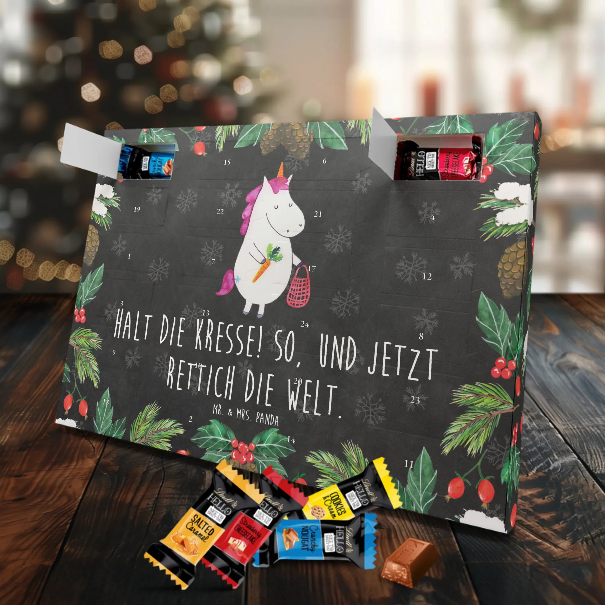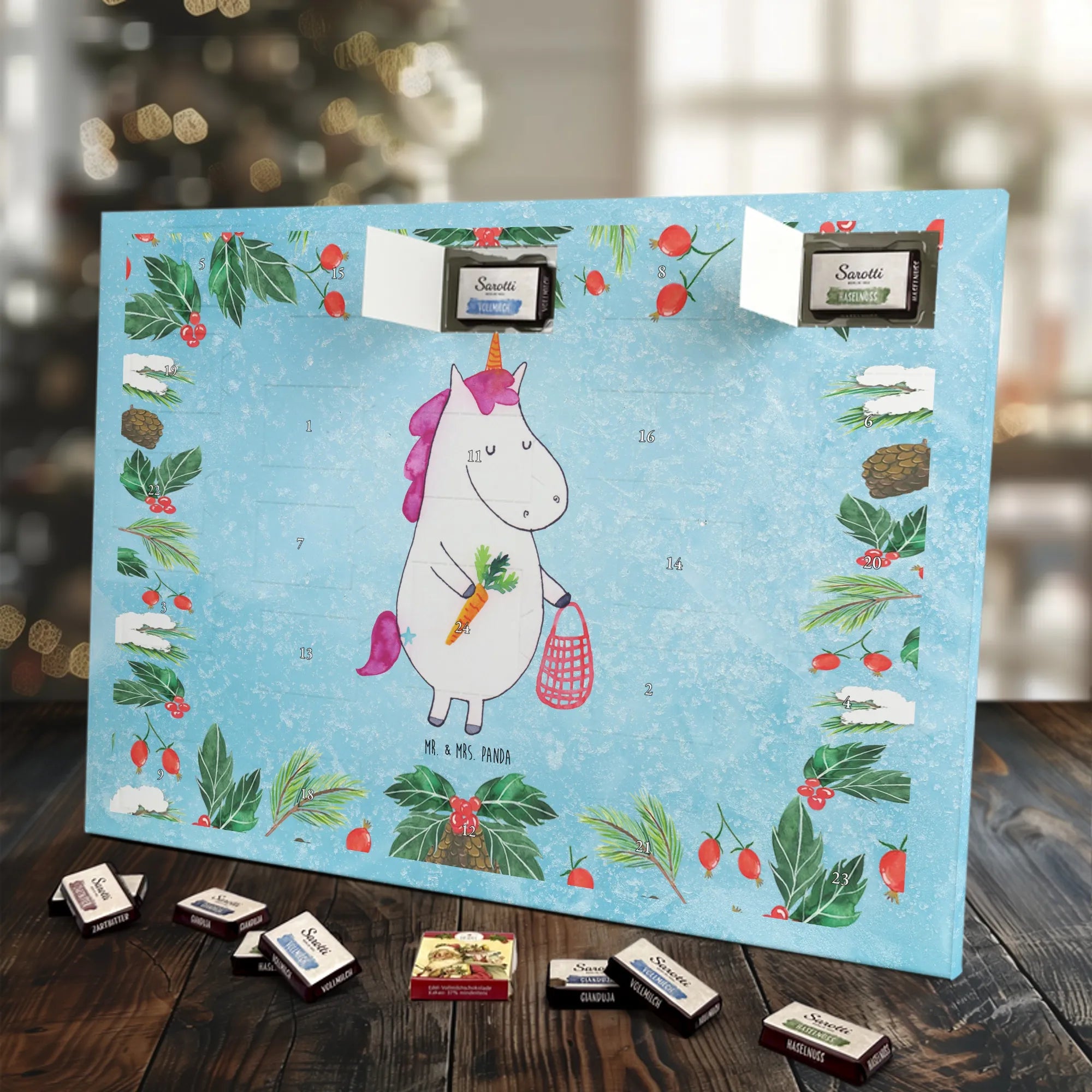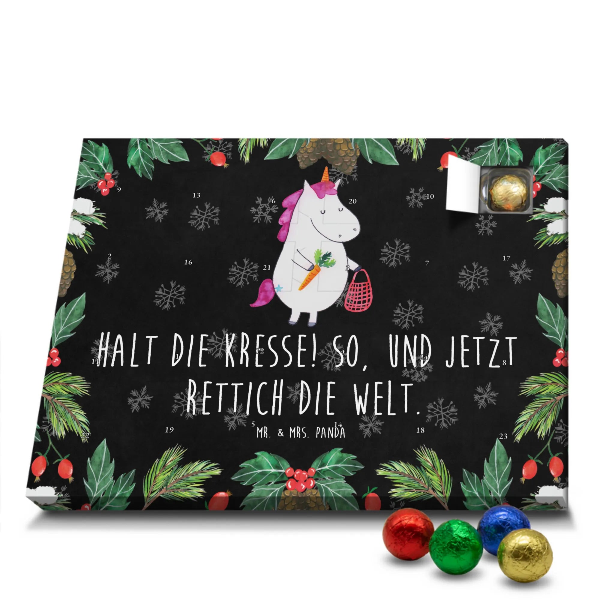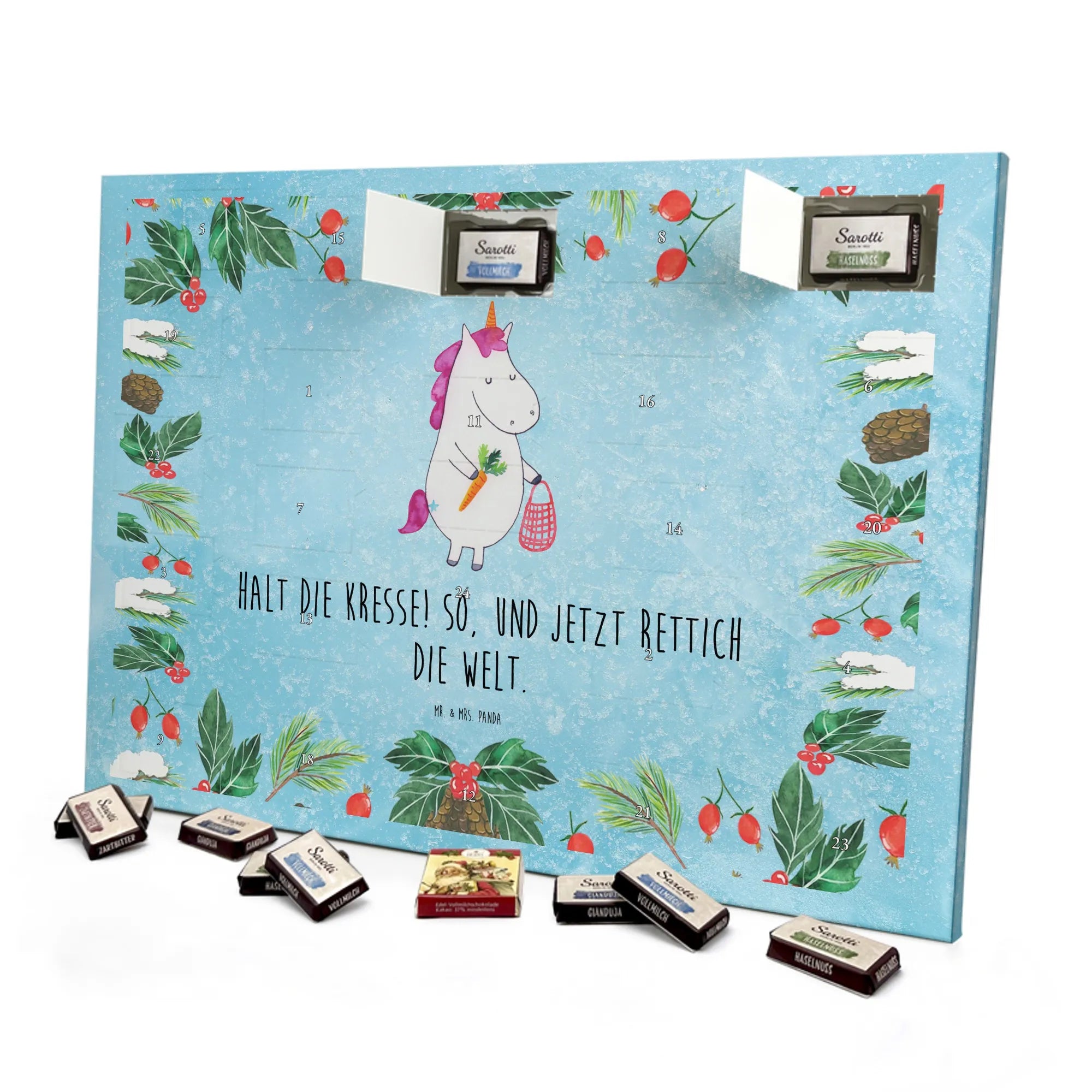Chocolate advent calendar unicorn Vegetables - Classic - with saying - Ice Blue