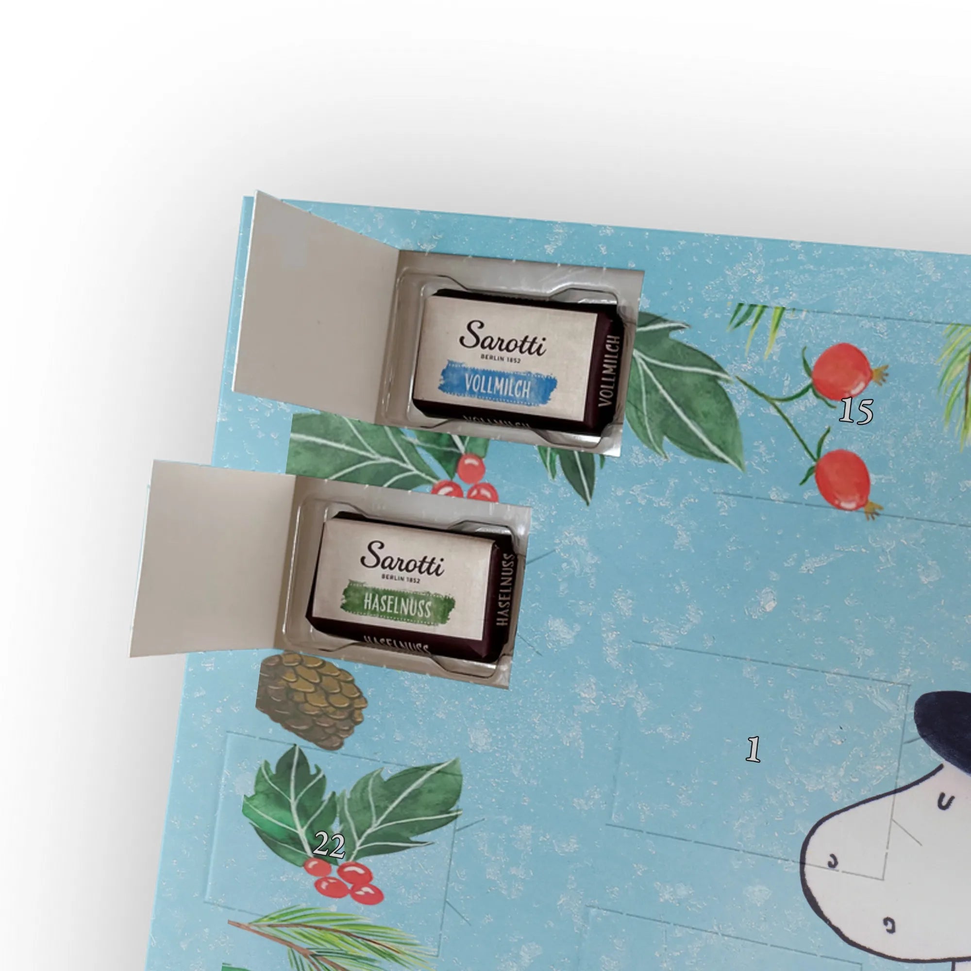 Chocolate advent calendar unicorn Witch - Classic - with saying - Ice Blue