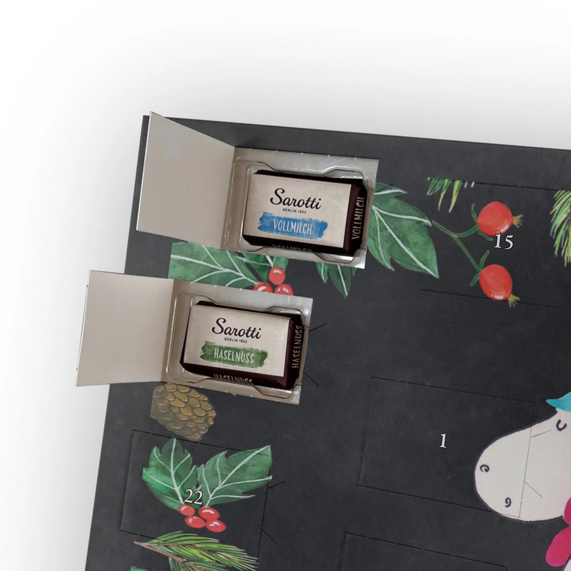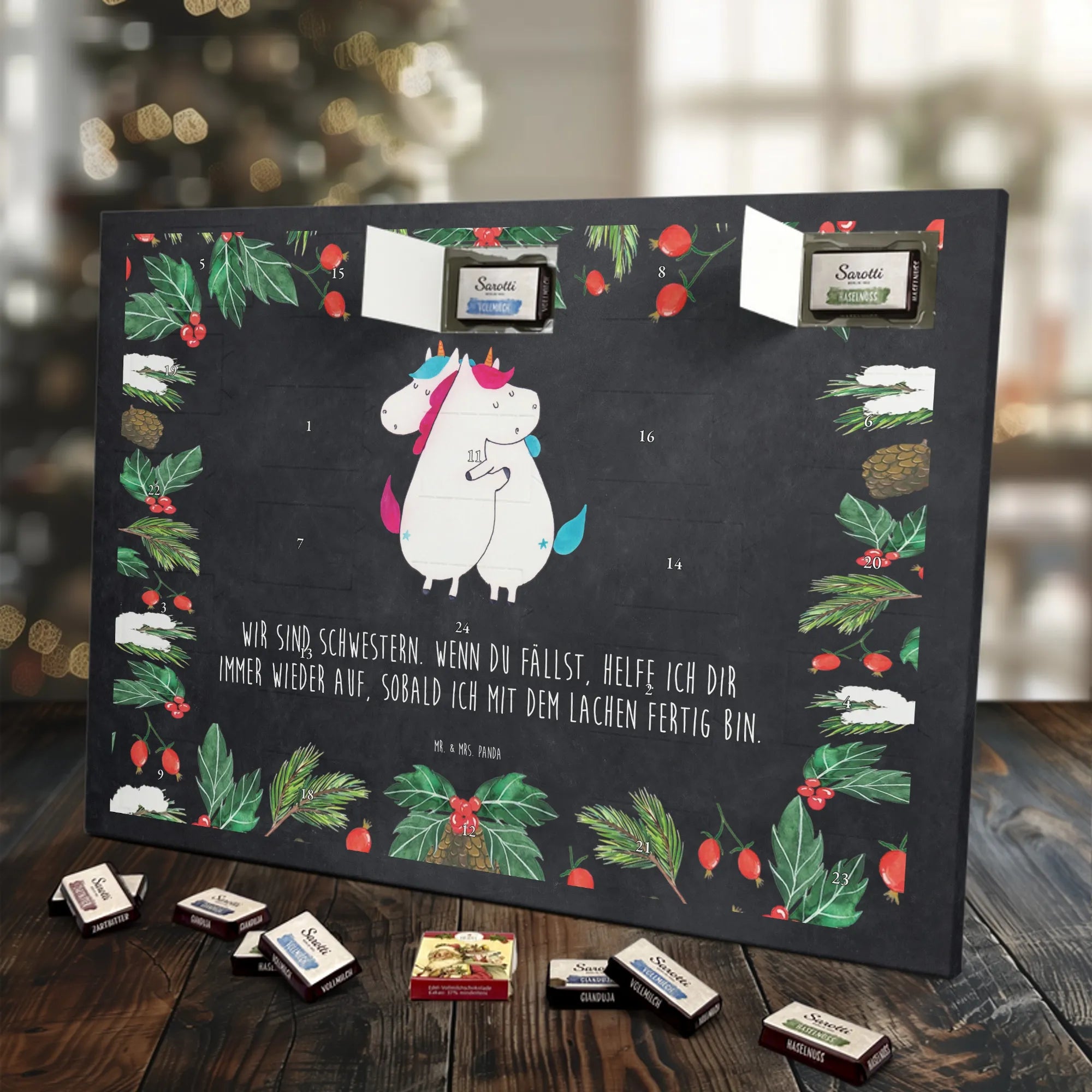 Chocolate advent calendar unicorns Embrace - Classic - with saying - Ice Blue