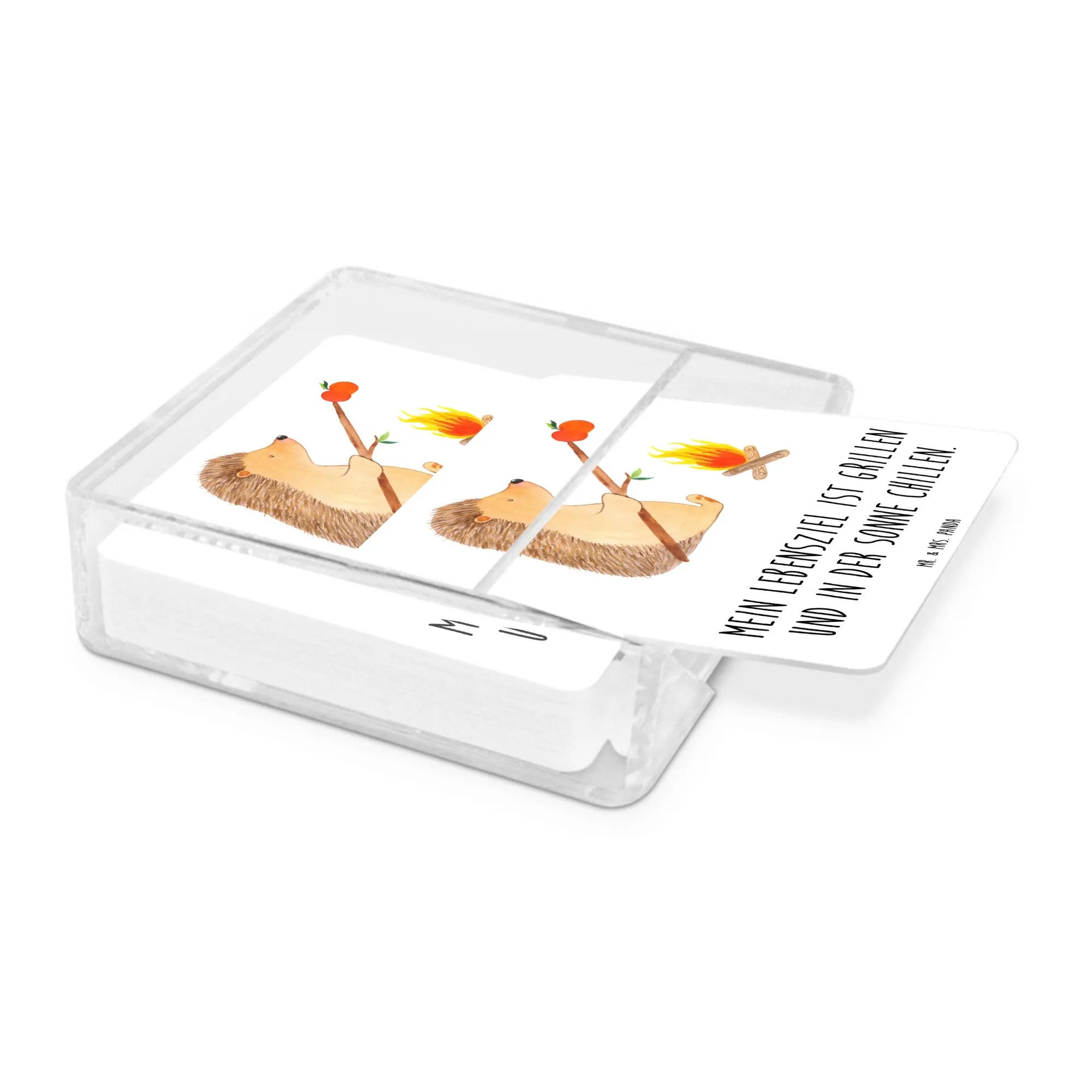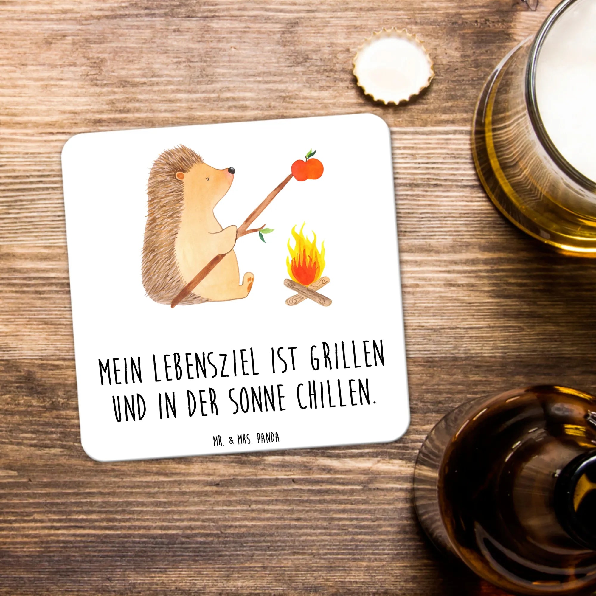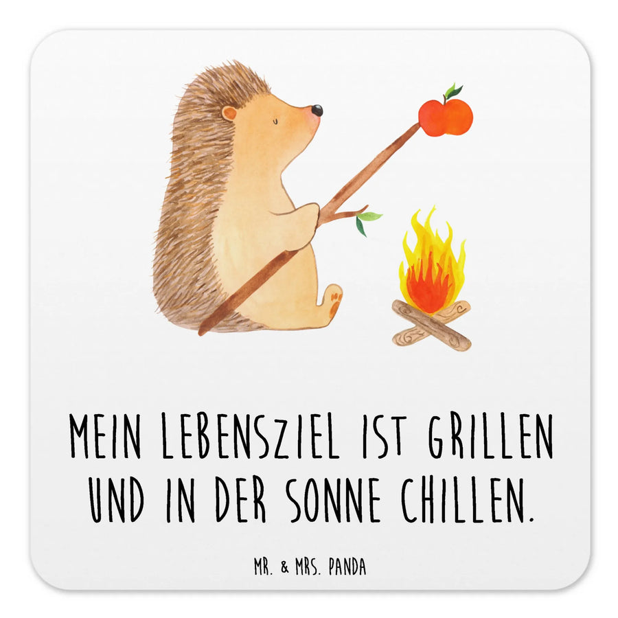 Warmes Design trifft praktische Funktion: Unser Untersetzer Set „Igel grillt" aus der Small World Kollektion von Mr. & Mrs. Panda ist mehr als ein schlichter Tischschutz. Das niedliche Motiv zeigt einen zufriedenen Igel am Lagerfeuer, der genüsslich einen Apfel grillt, begleitet vom sympathischen Spruch „Mein Lebensziel ist grillen und in der Sonne chillen."