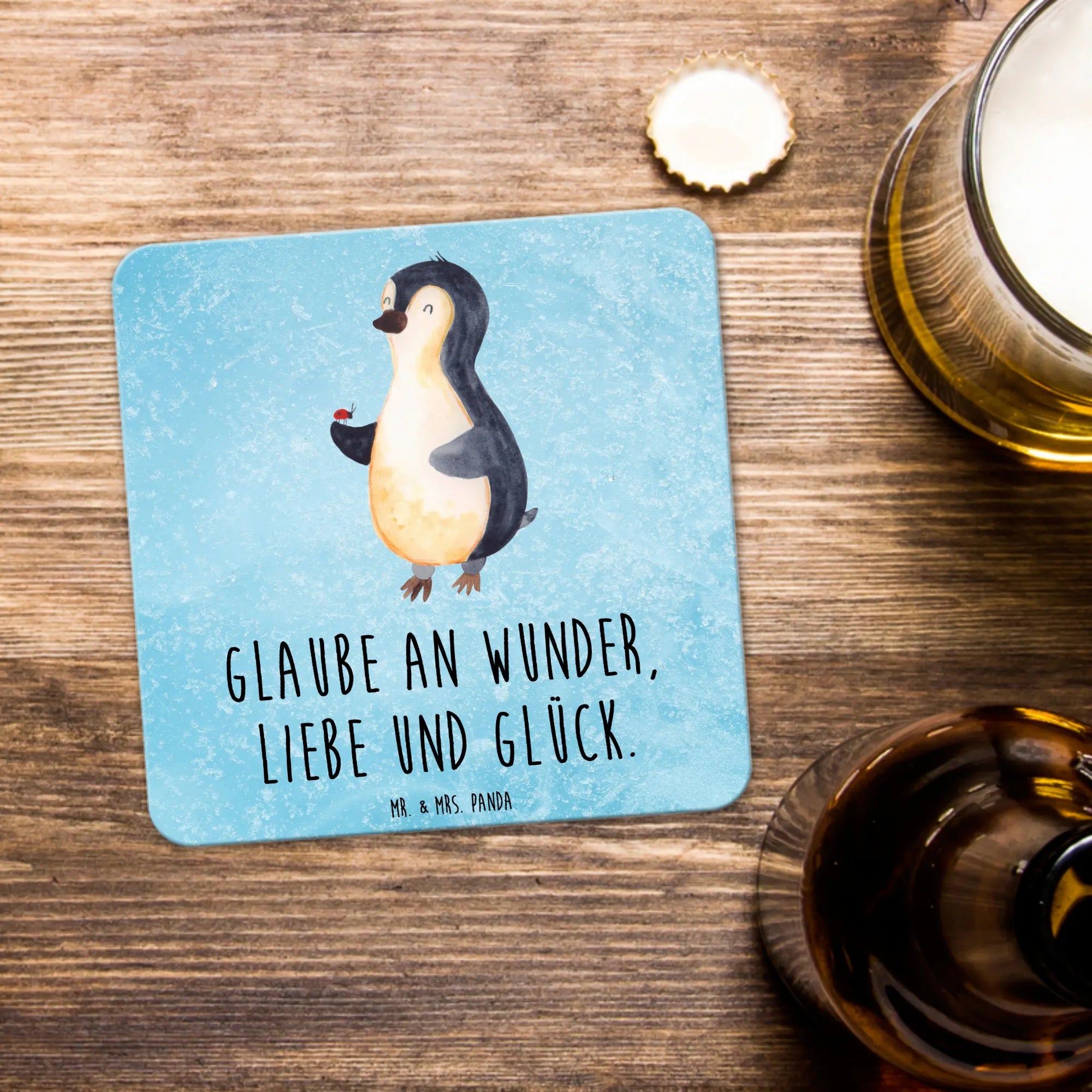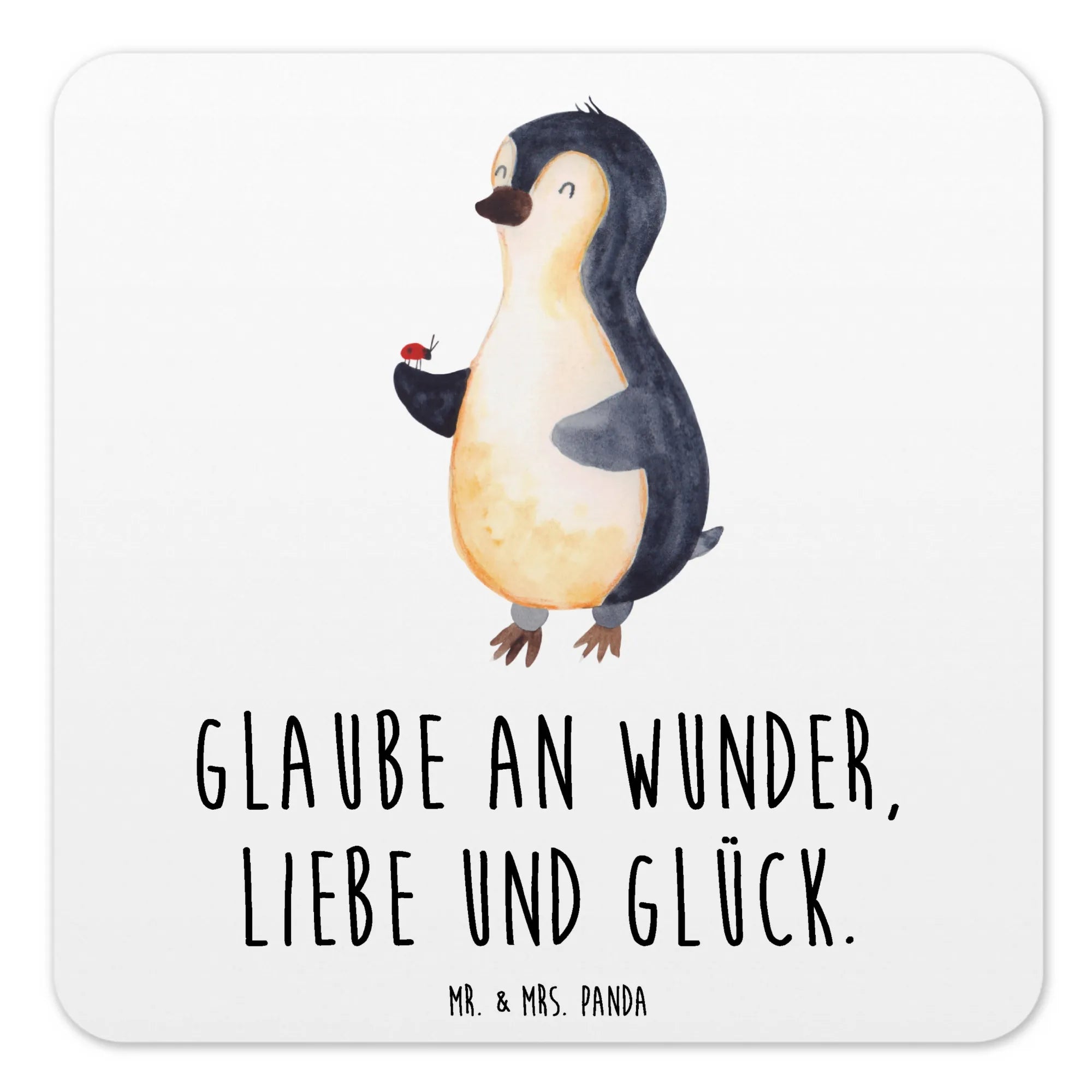 Coaster Set Penguin ladybug - 15-piece set - with a saying - White