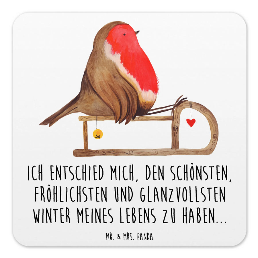 Zaubere Weihnachtsstimmung auf deinen Tisch mit unserem niedlichen Untersetzer Set aus der Winter Kollektion. Das liebevoll von Mrs. Panda handgezeichnete Rotkehlchen auf einem Holzschlitten ist ein zartes Wintermotiv, das perfekt als Glasuntersetzer, Tassenuntersetzer oder Tischuntersetzer funktioniert. Ideal als Weihnachtsdeko oder Geschenk zu Nikolaus und Heiligabend.