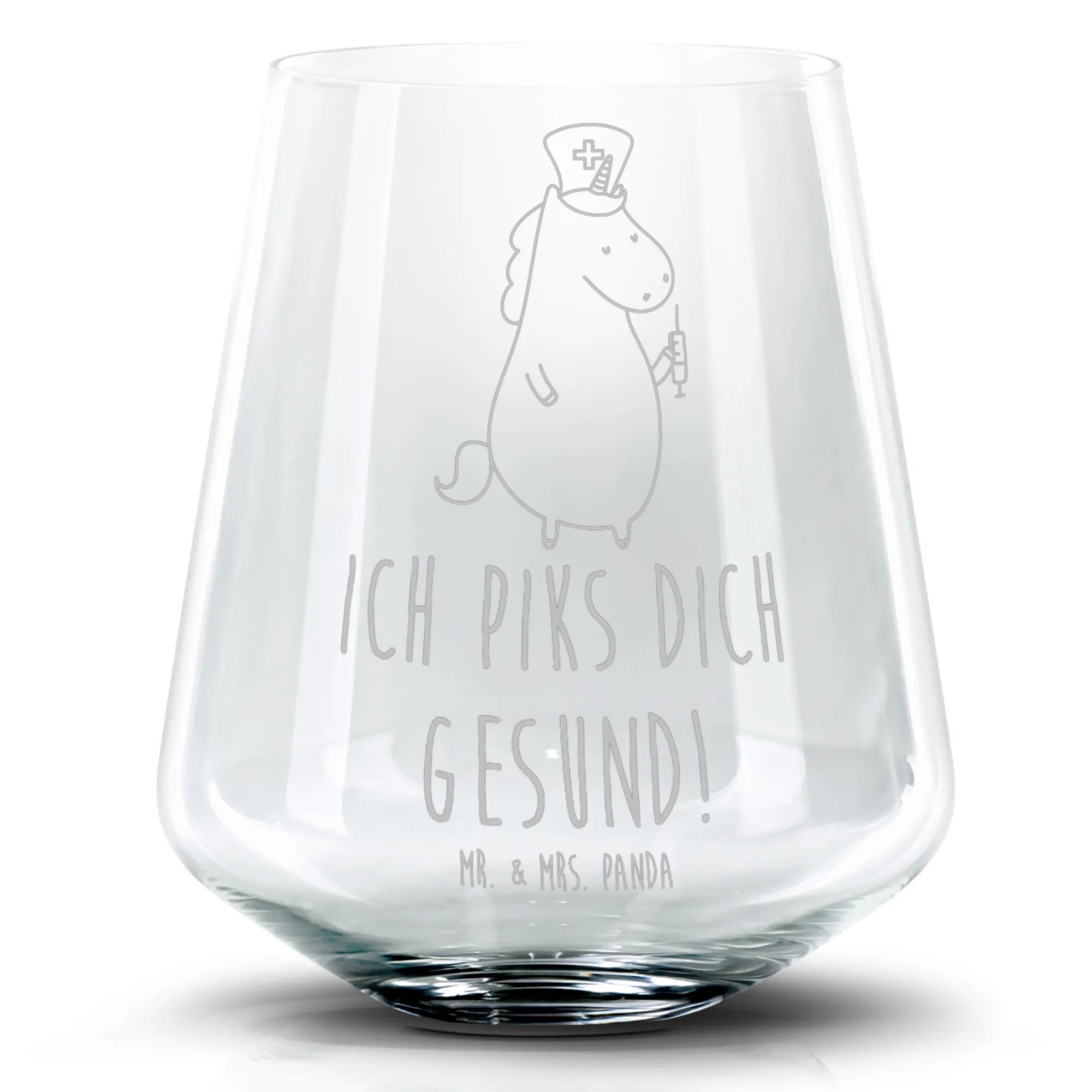 This charming cocktail glass is not just a pretty face; it's designed for those who bring warmth and healing into our lives. With its stunning laser engraving, featuring the cute unicorn nurse motif, it becomes a piece of art that your friends will adore. The playful slogan "Ich piks dich gesund!"—which translates to "I prick you healthy!"—infuses this item with a touch of humor and love, making it a perfect thank-you gesture for dedicated healthcare workers or a cheerful addition to a nurse's home bar.