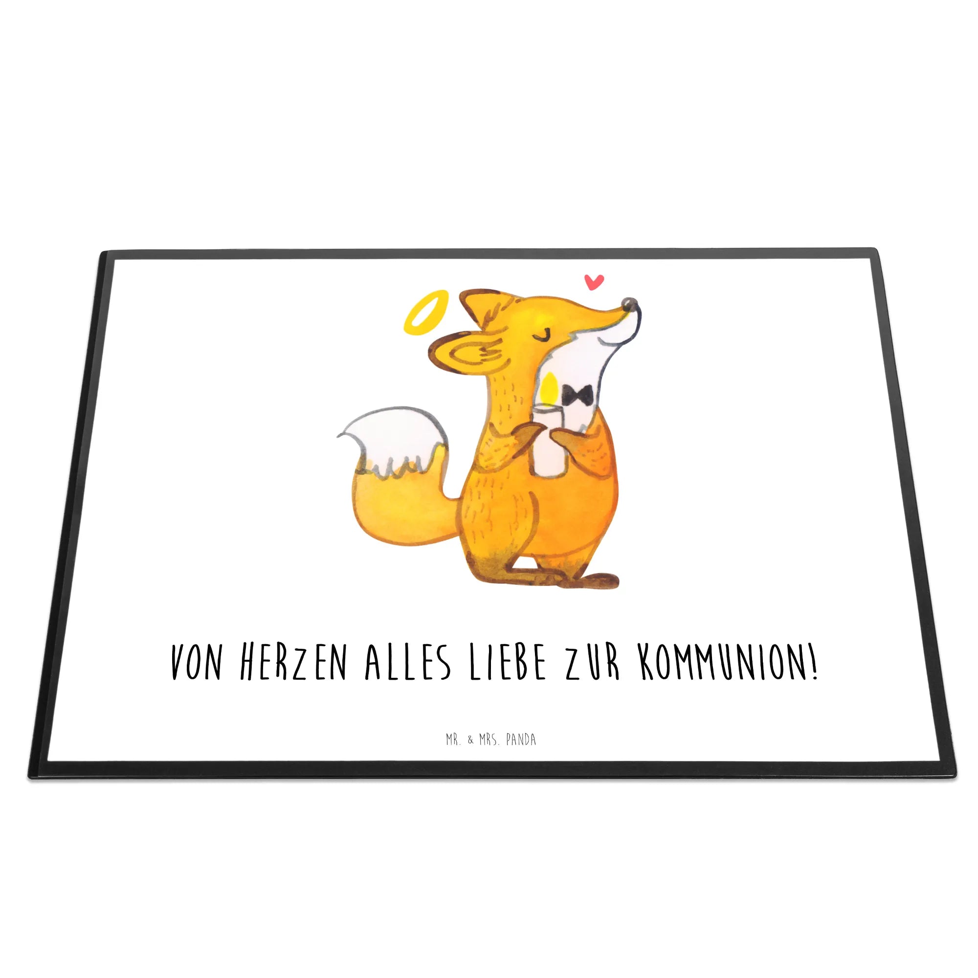 Introducing our charming little fox, exuding joy with a flickering candle and a radiant halo. This delightful motif celebrates Communion, where faith, love, and community come together in perfect harmony. Our fox serves as a reminder of the beauty of belief and the cherished moments spent in unity. With the heartfelt slogan 'Von Herzen alles Liebe zur Kommunion!', this design perfectly captures the essence of the day, whether you’re saying thank you, or giving a gift from the heart. Embrace the warmth and positivity our fox radiates and let it serve as a beautiful memento of love and light on this special occasion.