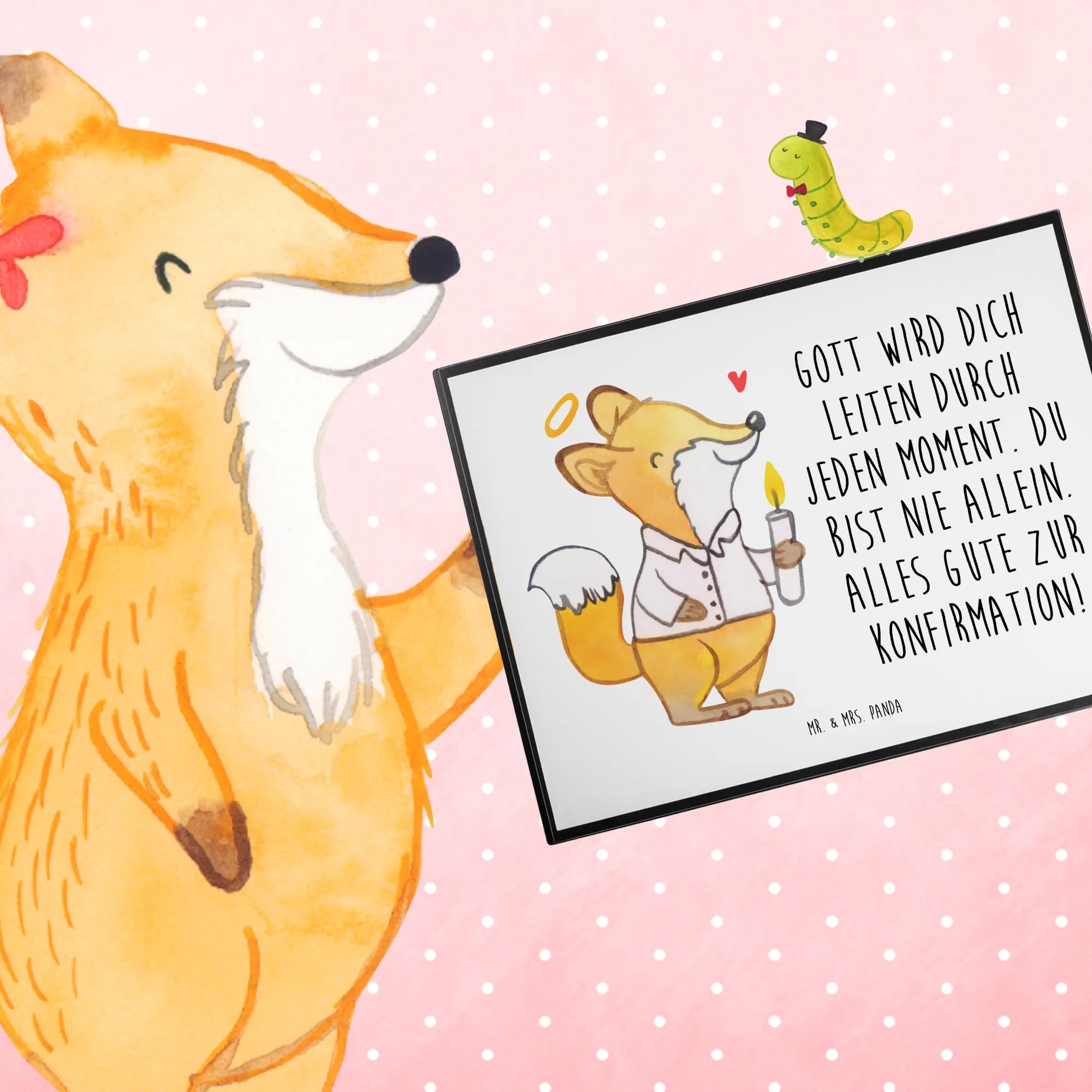 Say hello to our delightful little fox, sporting a smart white shirt and holding a flickering candle. This motif perfectly expresses the beauty of confirmation with its heartfelt saying: 'God will lead you through every moment. You are never alone. Happy Confirmation!'. Whether for a beloved birthday or a significant moment in the realm of faith, this charming fox serves as a gentle reminder of God’s unwavering guidance. Amidst celebrations, let this design deliver warmth and joy, making it an ideal confirmation gift for cherished individuals in your life, celebrating love, belief, and divine companionship.