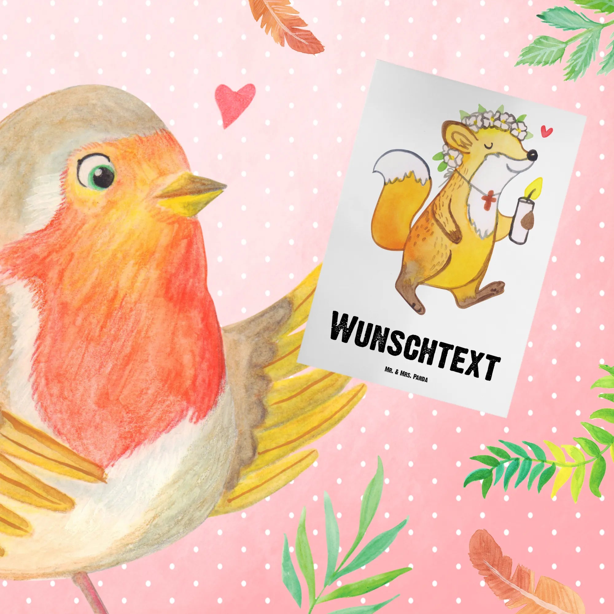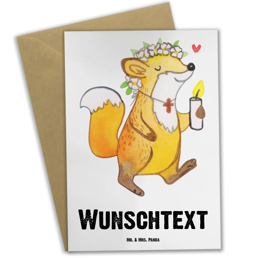 Personalised greetings card Fox communion girl
