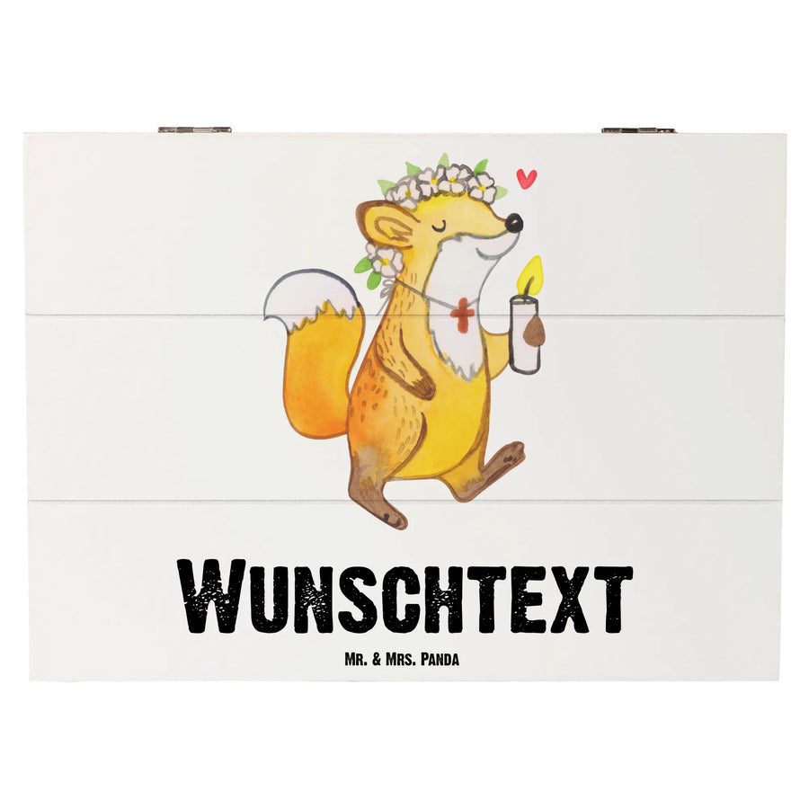 Personalised wooden chest Fox communion girl - 25 x 18 cm - White